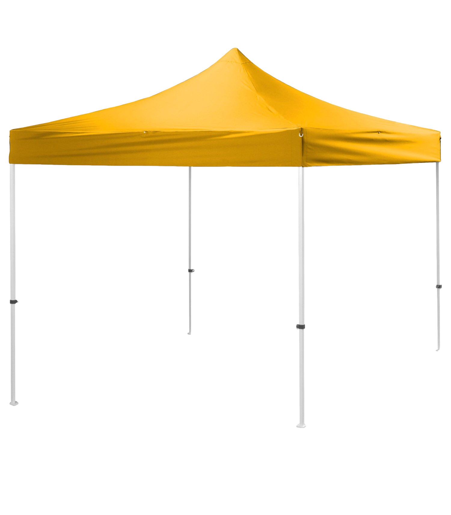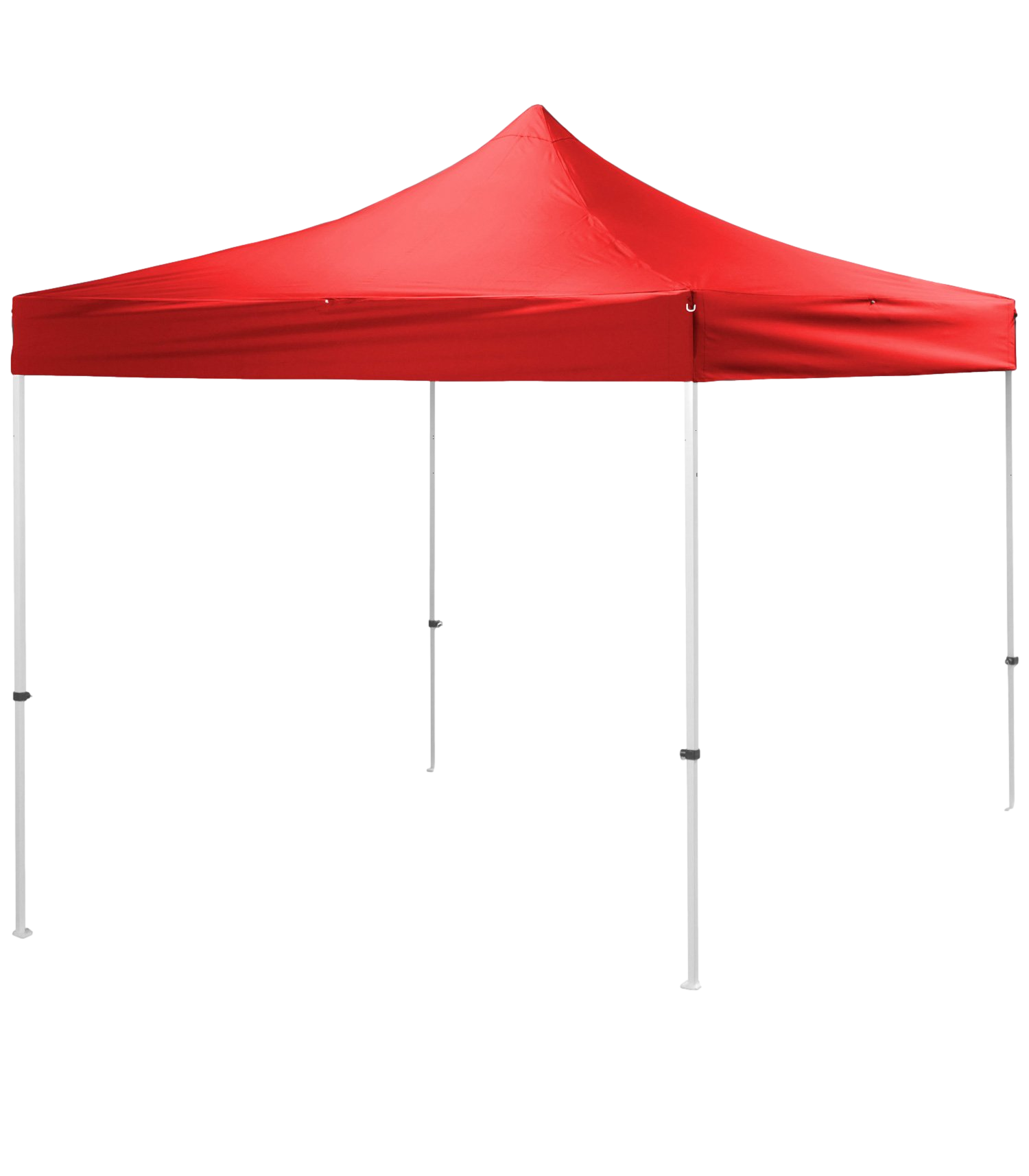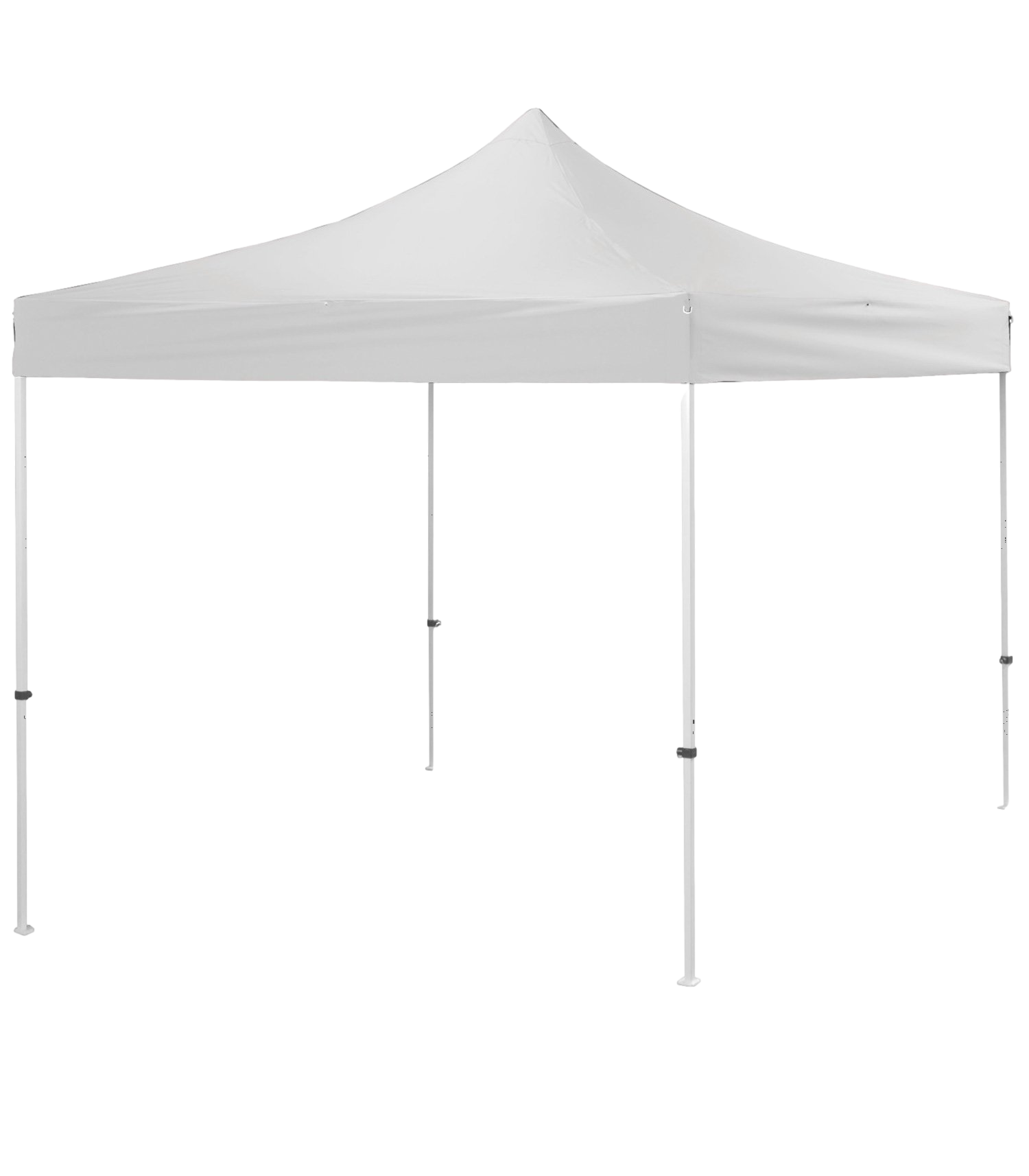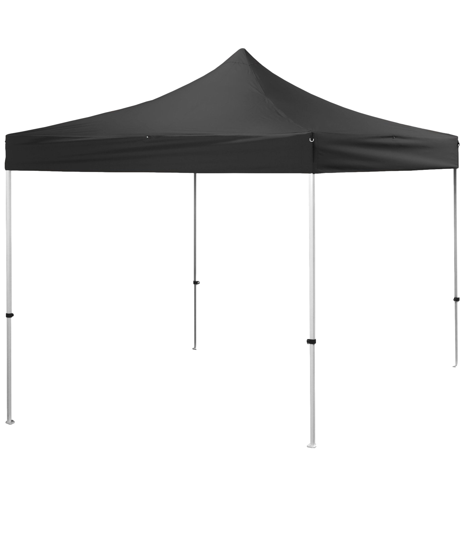 Create an instant oasis from the hot summer sun, or a promotional showplace at an indoor or outdoor event with this easy to set up gazebo! This 10' x 10' structure has a sturdy steel frame and a durable fire-retardant polyester construction that also provides SPF 50+ UV protection. It's all in one piece, so you never have to worry about forgetting a crucial part. Sets up in just minutes. Includes stakes and ropes for added stability and a wheeled black carry case for maximum portability. It's a perfect match for grand openings, product launches, marketing events or home parties.