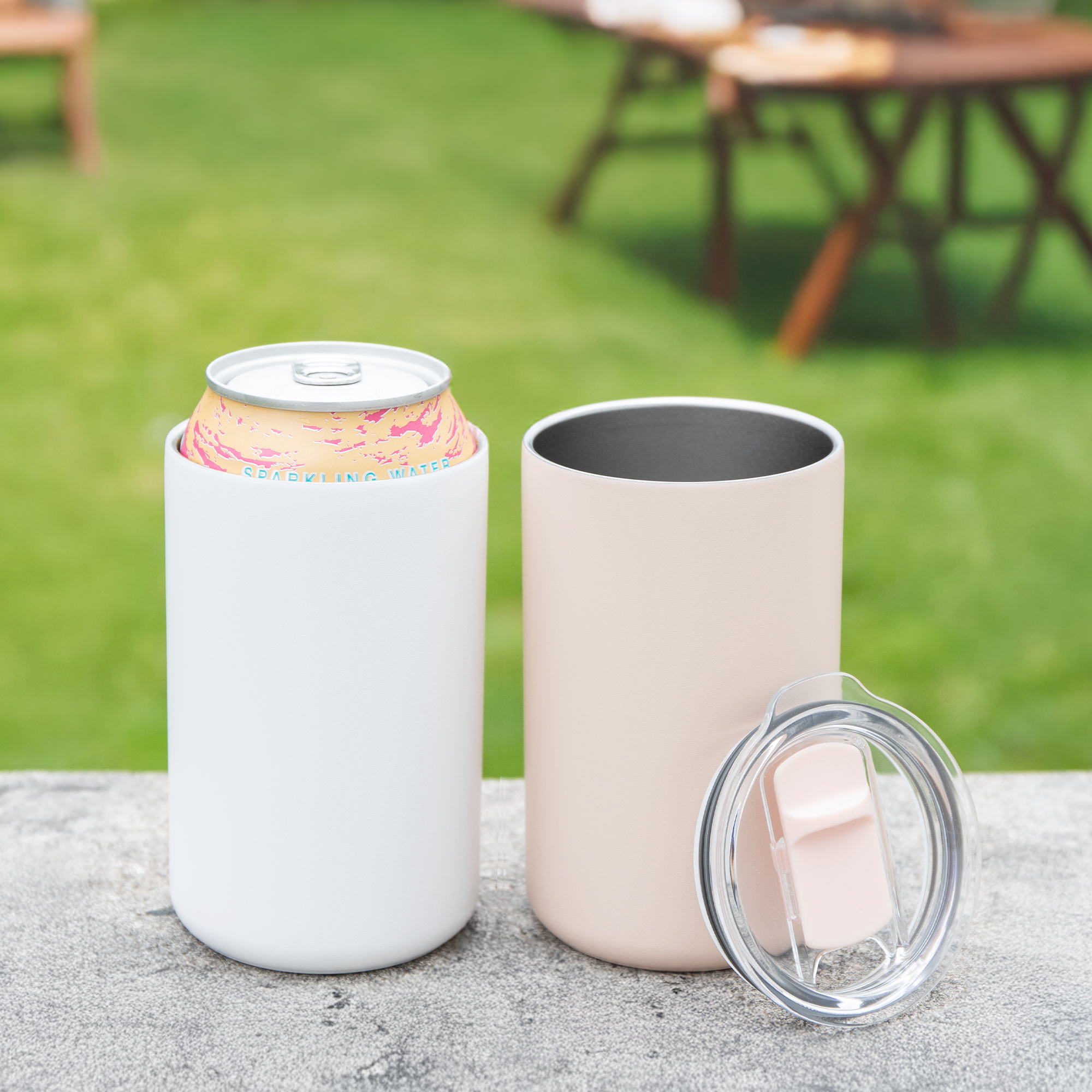 Designed primarily as a high-performance can cooler, the Artemis holds standard 12 oz cans with a snug fit—eliminating empty space between the can and inner wall for optimal chill retention. Its double wall stainless steel construction with vacuum insulation keeps beverages cold for hours, making it the perfect companion for tailgates, barbecues, and outdoor events. When not used as a can cooler, Artemis doubles as a sleek tumbler with a clear push-on lid and sliding closure. Finished with a durable powder coated exterior. Do not microwave. Hand wash recommended.