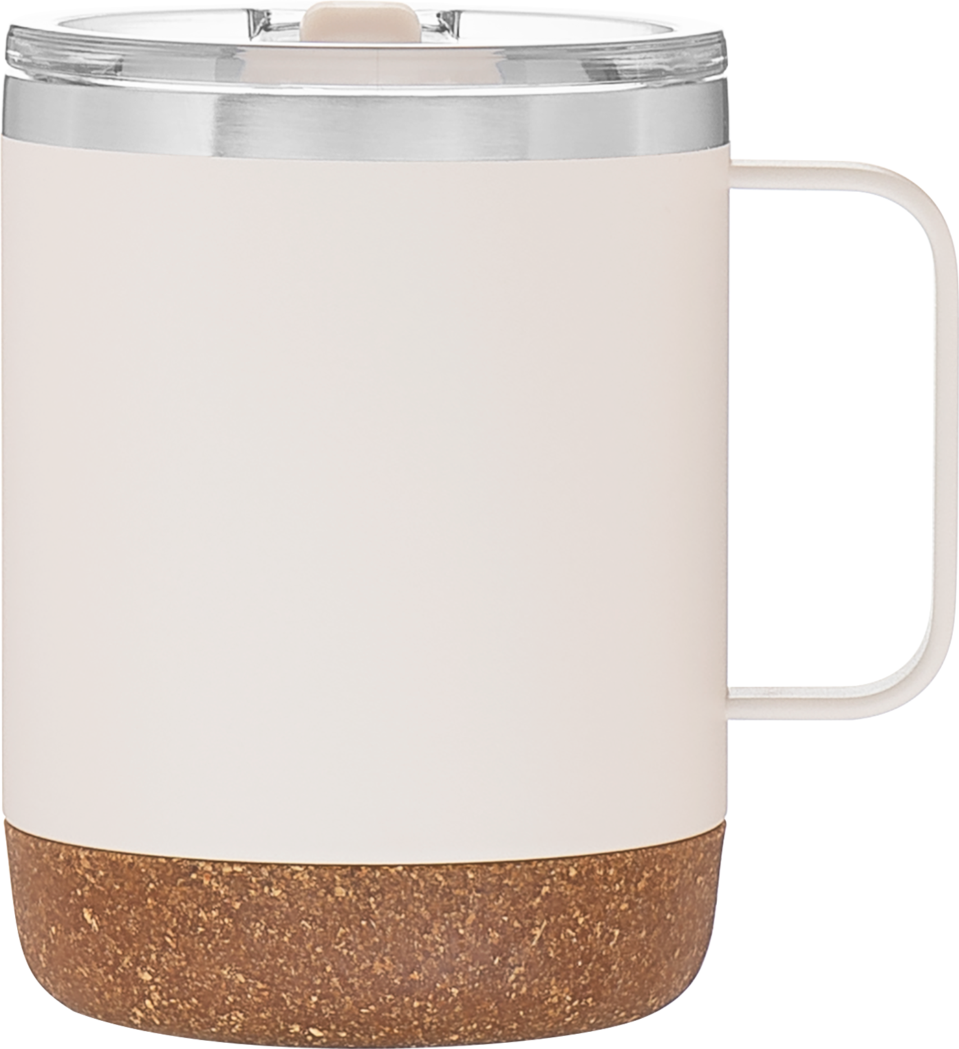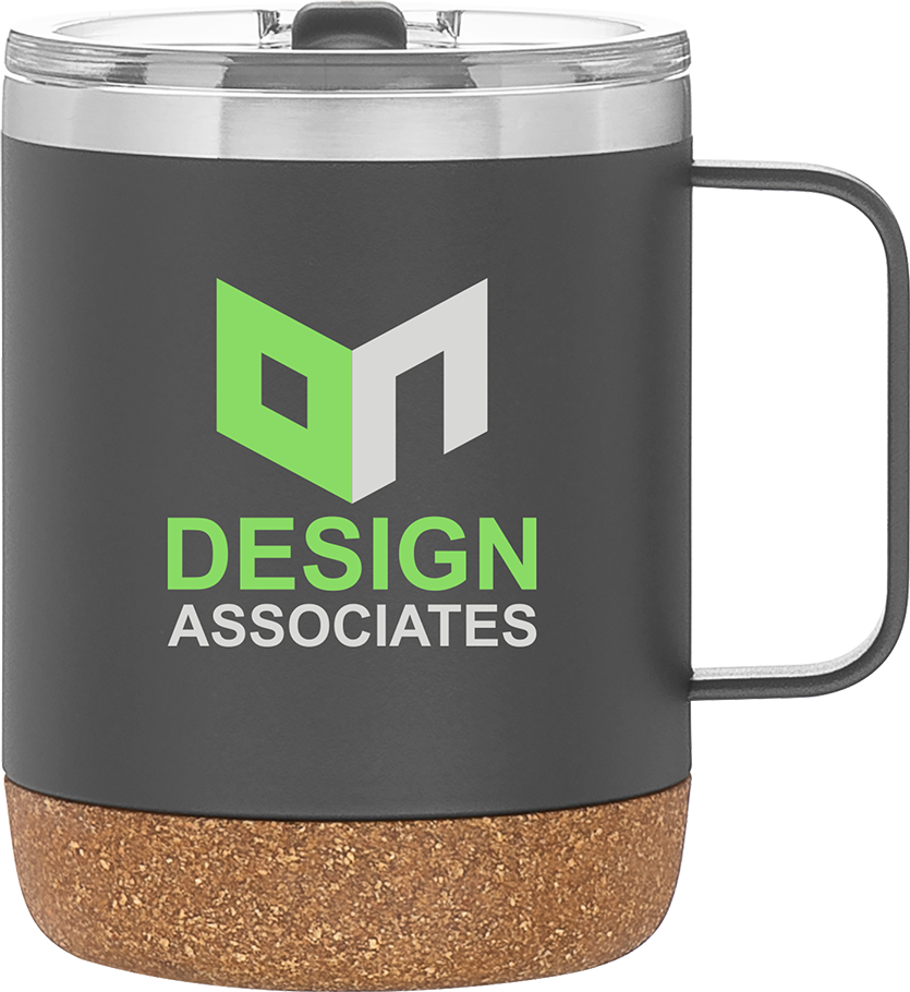 The Explorer 12 oz thermal mug combines durability with elevated design—perfect for camping, outdoor adventures, or daily coffee breaks. Made from double wall 18/8 stainless steel with copper vacuum insulation, it keeps drinks hot or cold for hours. It features a clear push-on lid with a matching swivel closure, a stainless steel rim for a clean sip, and a synthetic cork base that adds both surface protection and a rugged, natural feel. Finished with a powder coated exterior for extra grip and outdoor-ready style.