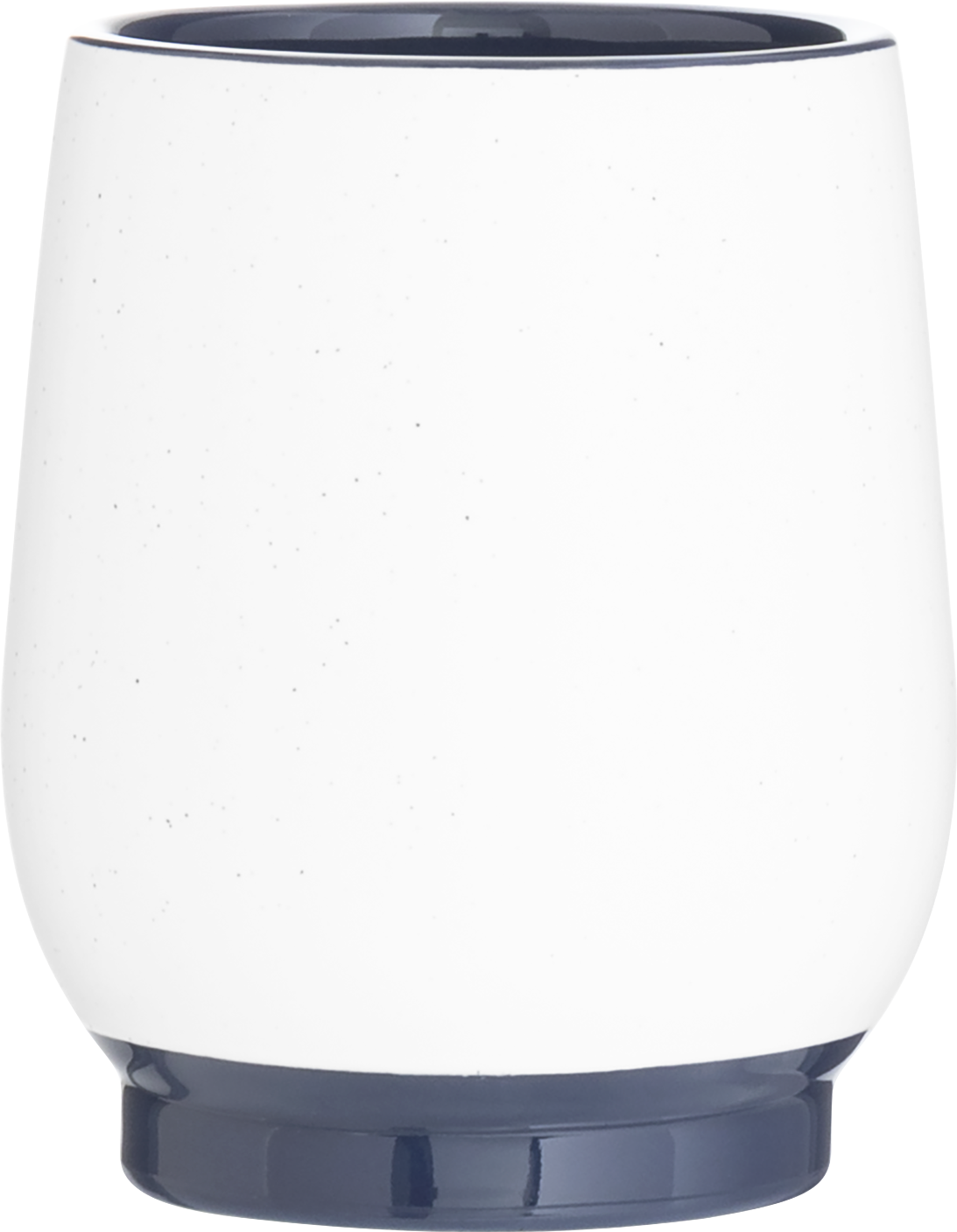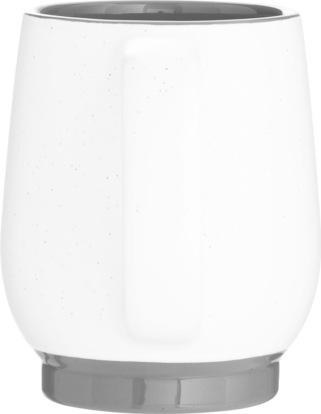 · matte white exterior with speckles