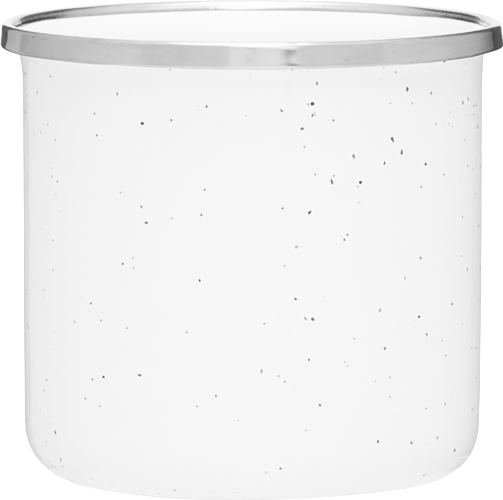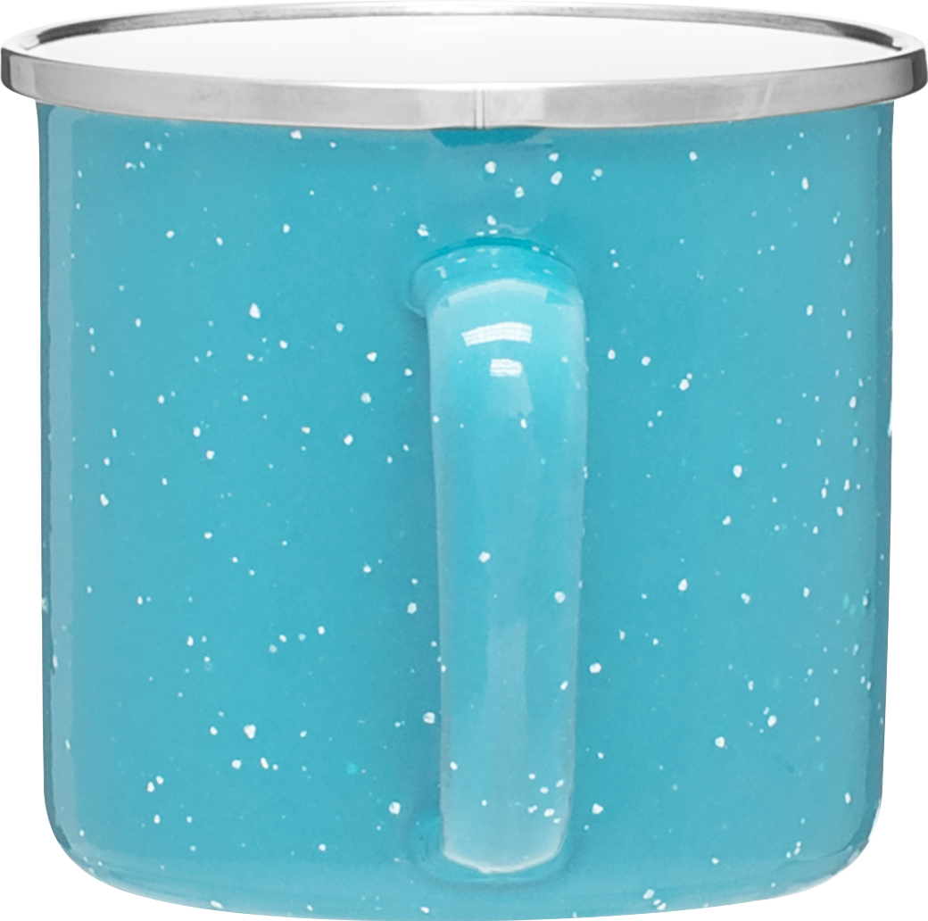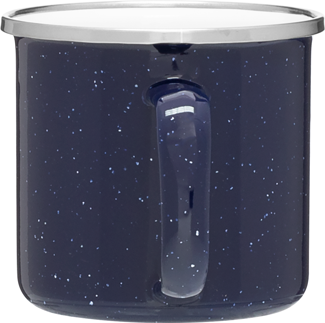 The Whitney 13 oz enamel mug combines vintage style with everyday durability. It features a glossy colored exterior with speckles, a glossy white interior, and an 18/8 stainless steel rim for a polished touch. Lightweight and sturdy, it’s perfect for coffee, tea, or hot cocoa whether you're at home, in the office, or around the campfire.