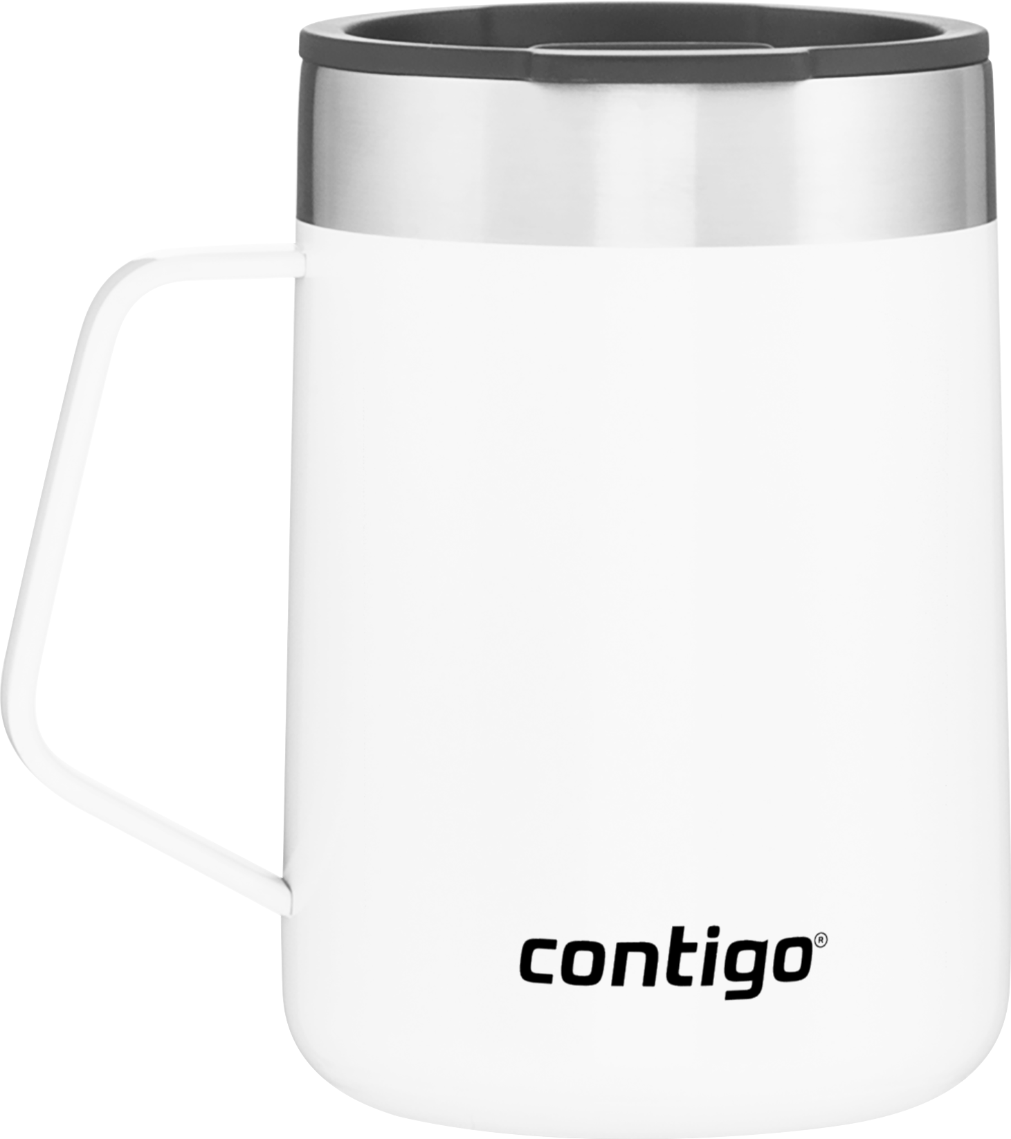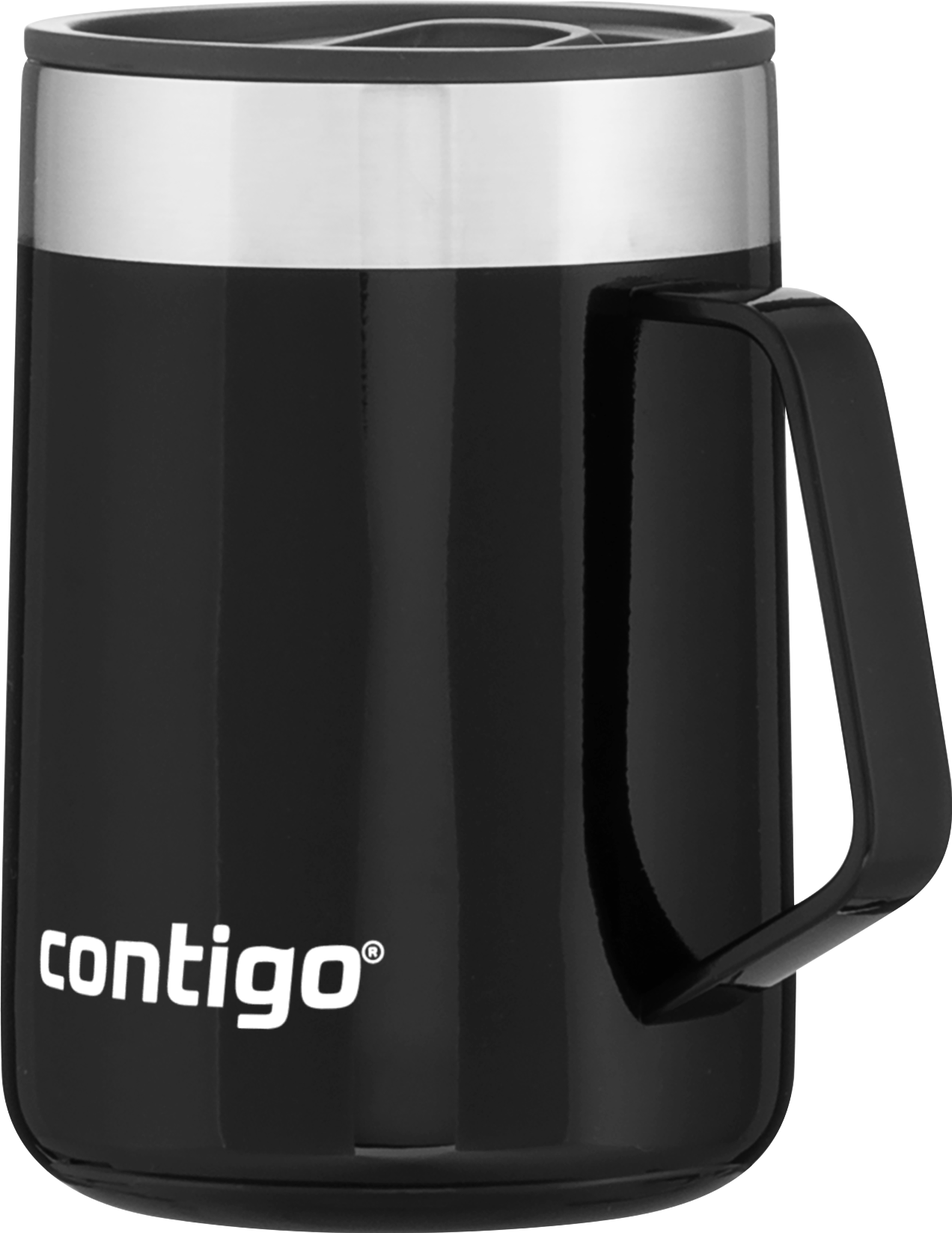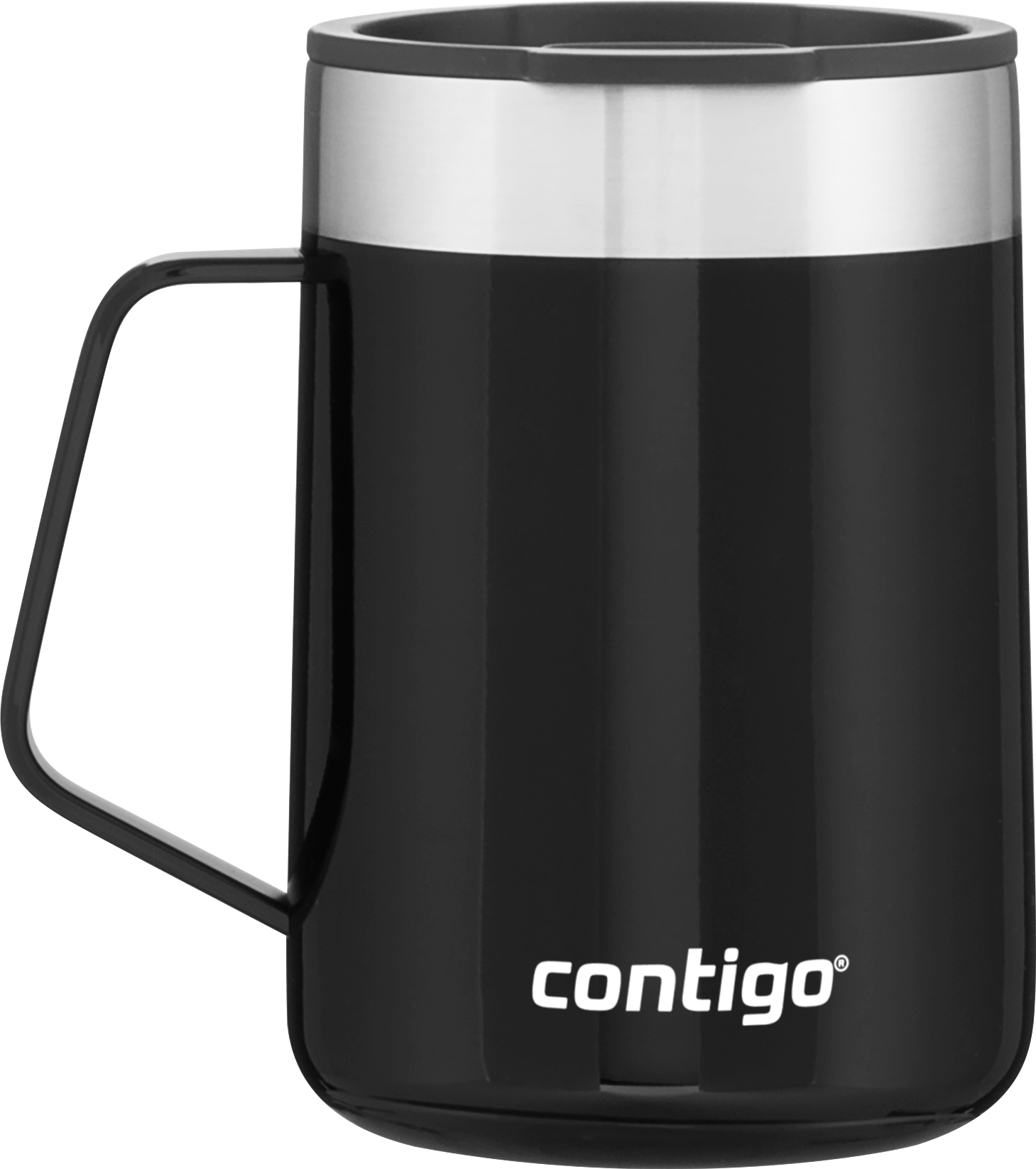 The Contigo® Streeterville 14 oz thermal mug combines modern styling with on-the-go performance. Made from double wall stainless steel with vacuum insulation, it keeps drinks hot or cold for hours. It features a black push-on lid with a sliding closure for easy sipping, a stainless steel rim for a polished look, and a non-slip base for added stability. Finished with a glossy exterior, this mug is ideal for commuting, work, or relaxing at home.