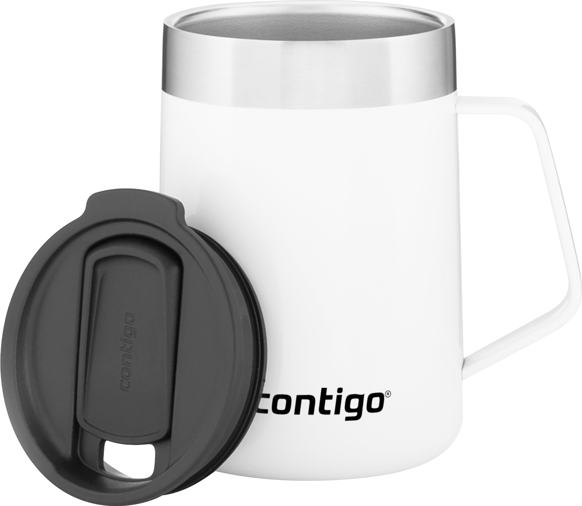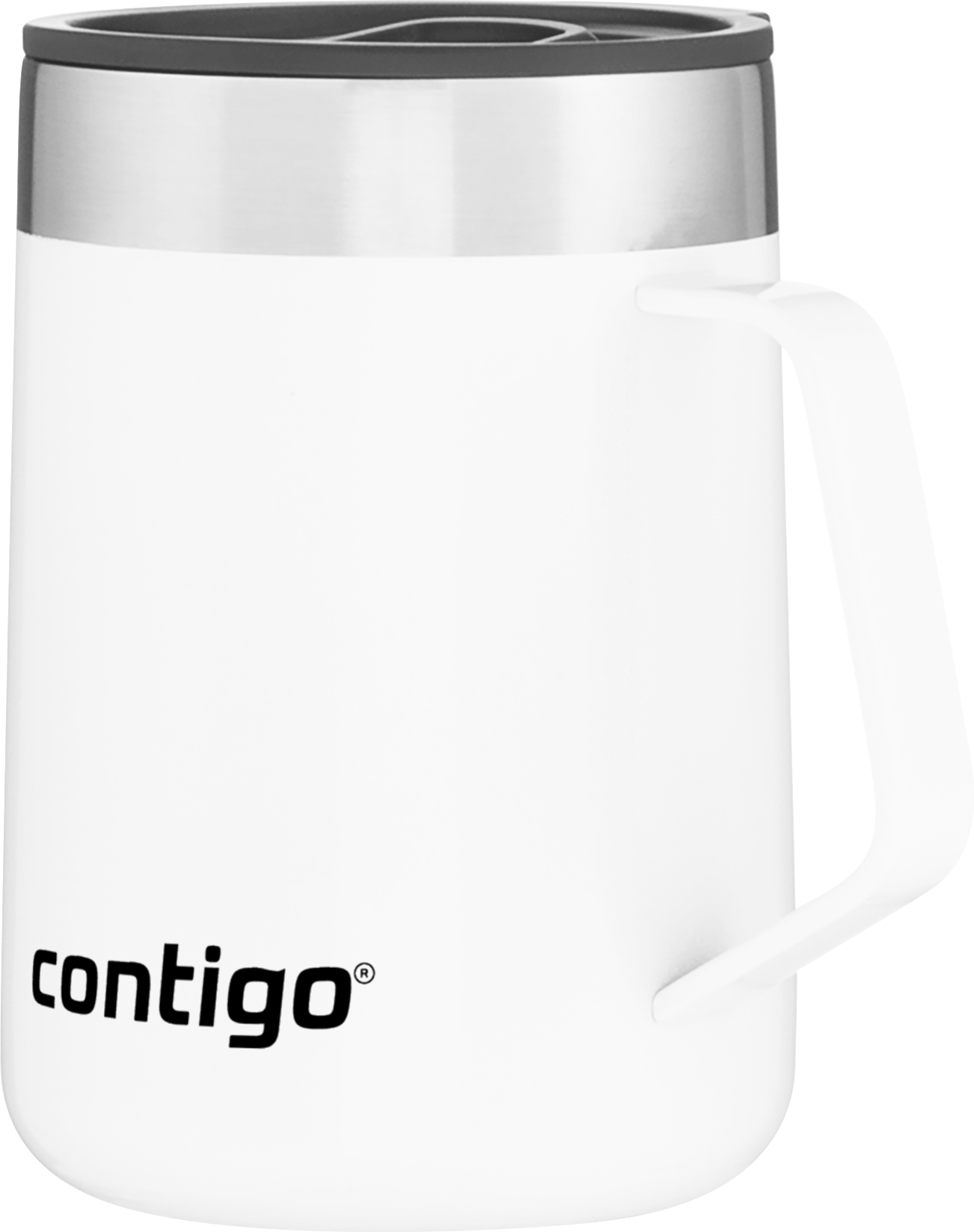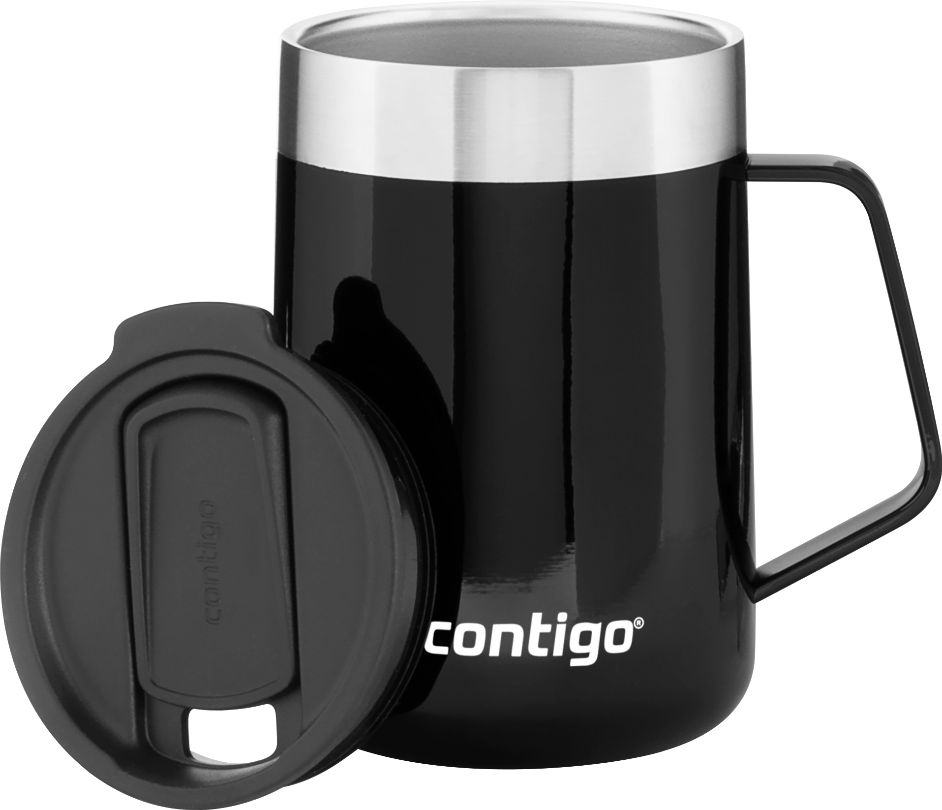 The Contigo® Streeterville 14 oz thermal mug combines modern styling with on-the-go performance. Made from double wall stainless steel with vacuum insulation, it keeps drinks hot or cold for hours. It features a black push-on lid with a sliding closure for easy sipping, a stainless steel rim for a polished look, and a non-slip base for added stability. Finished with a glossy exterior, this mug is ideal for commuting, work, or relaxing at home.