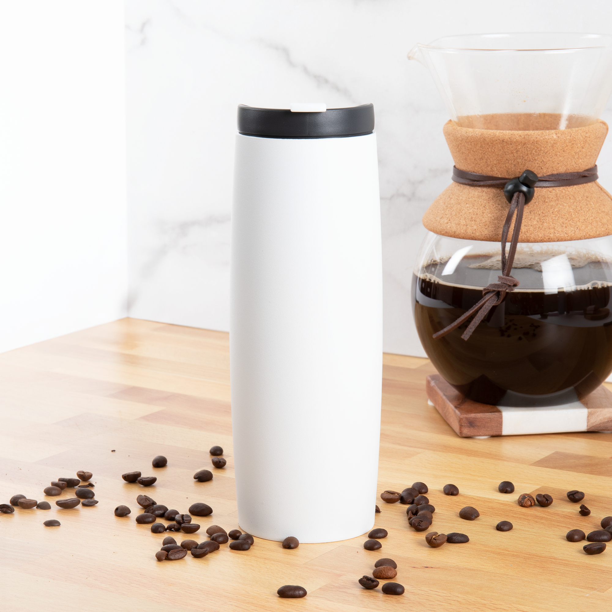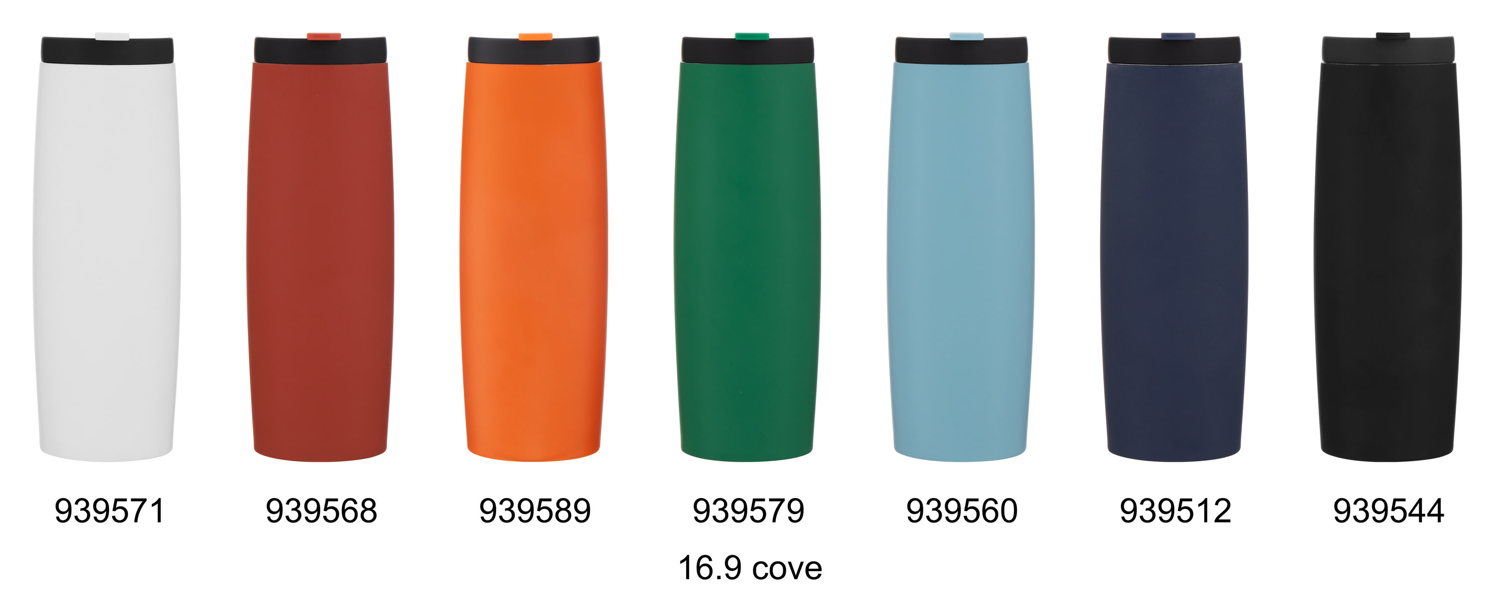 The Cove 16.9 oz tumbler keeps your coffee hot and your iced tea cold with double-wall stainless steel and vacuum insulation. It features a wide opening, snap-close threaded lid, and a durable powder-coated finish—perfect for sipping on the go.