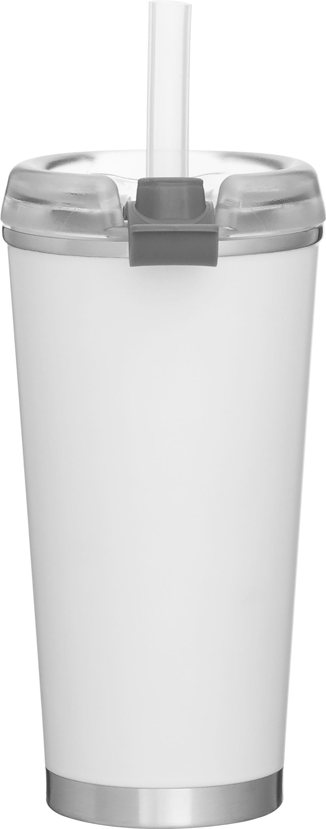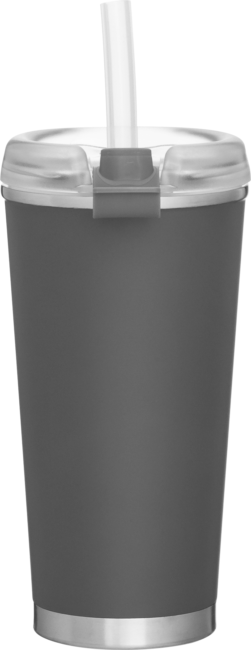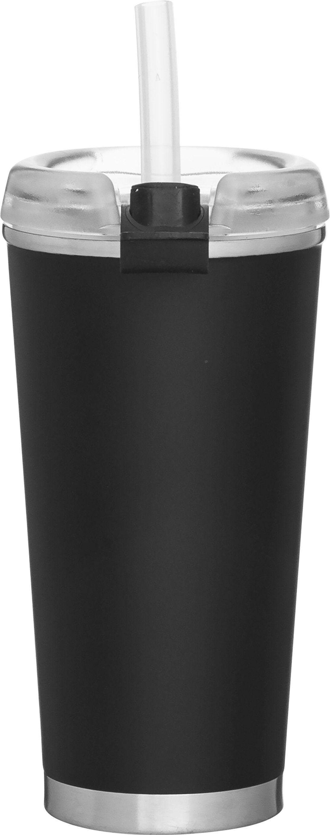 The Brooklyn 16.9 oz thermal tumbler combines sleek design with everyday performance. Made from double wall 18/8 stainless steel with copper vacuum insulation, it keeps beverages hot or cold for hours. It features a threaded Eastman Tritan™ lid with a snap closure and a sip/straw opening, plus a flexible wide silicone straw for versatile drinking options. The stainless steel rim and base add durability and a polished finish, while the matte coating provides a comfortable, modern grip.