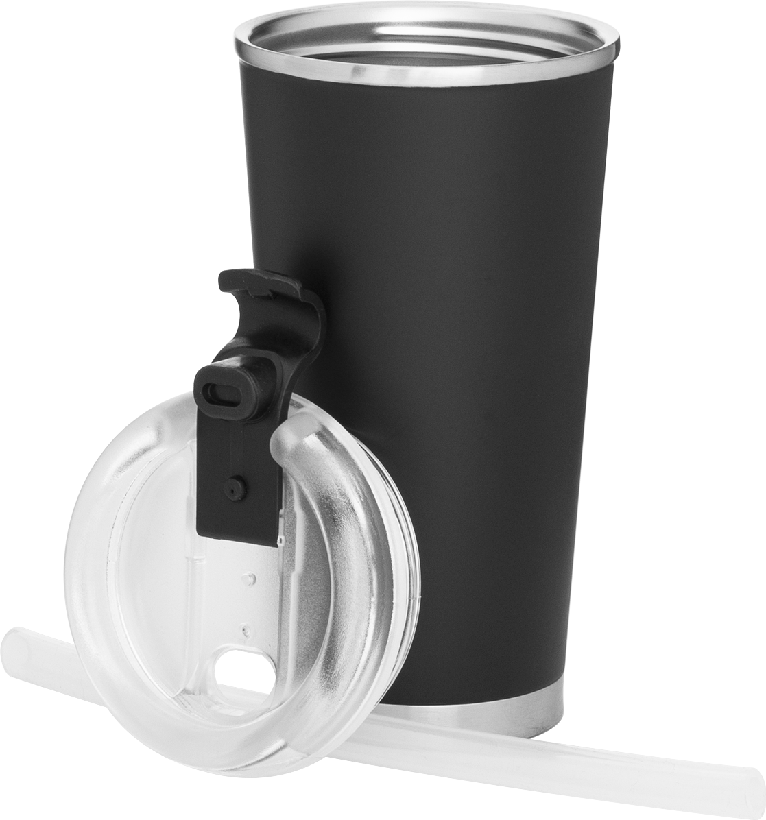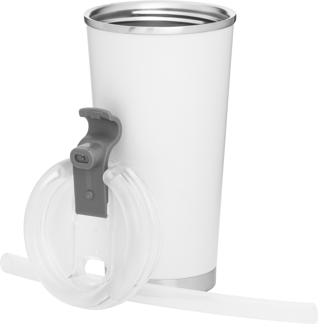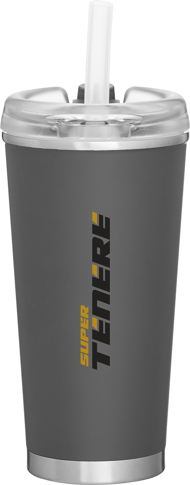 The Brooklyn 16.9 oz thermal tumbler combines sleek design with everyday performance. Made from double wall 18/8 stainless steel with copper vacuum insulation, it keeps beverages hot or cold for hours. It features a threaded Eastman Tritan™ lid with a snap closure and a sip/straw opening, plus a flexible wide silicone straw for versatile drinking options. The stainless steel rim and base add durability and a polished finish, while the matte coating provides a comfortable, modern grip.