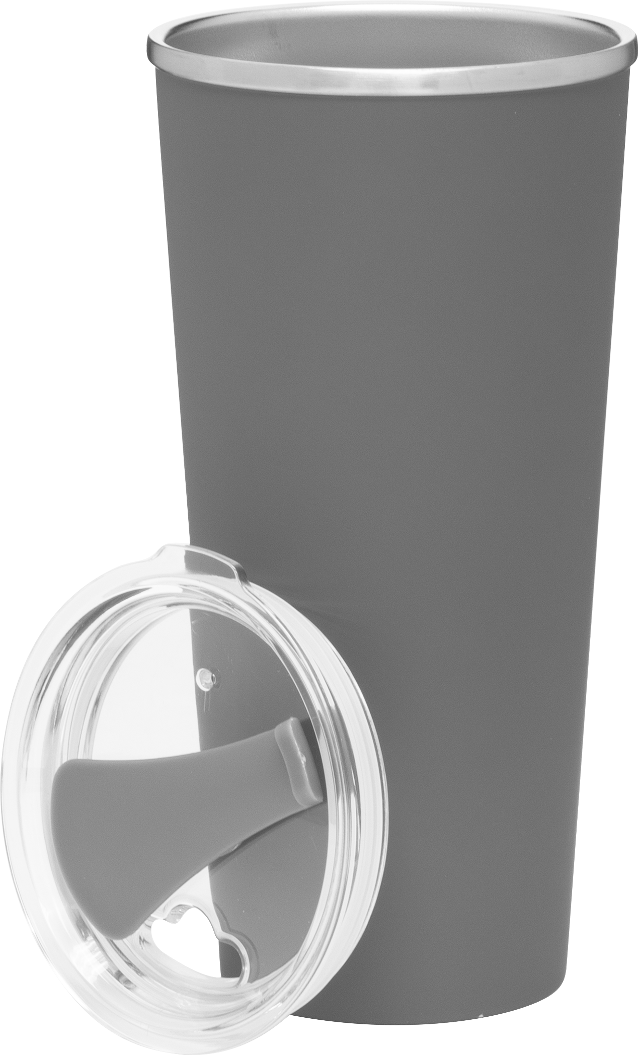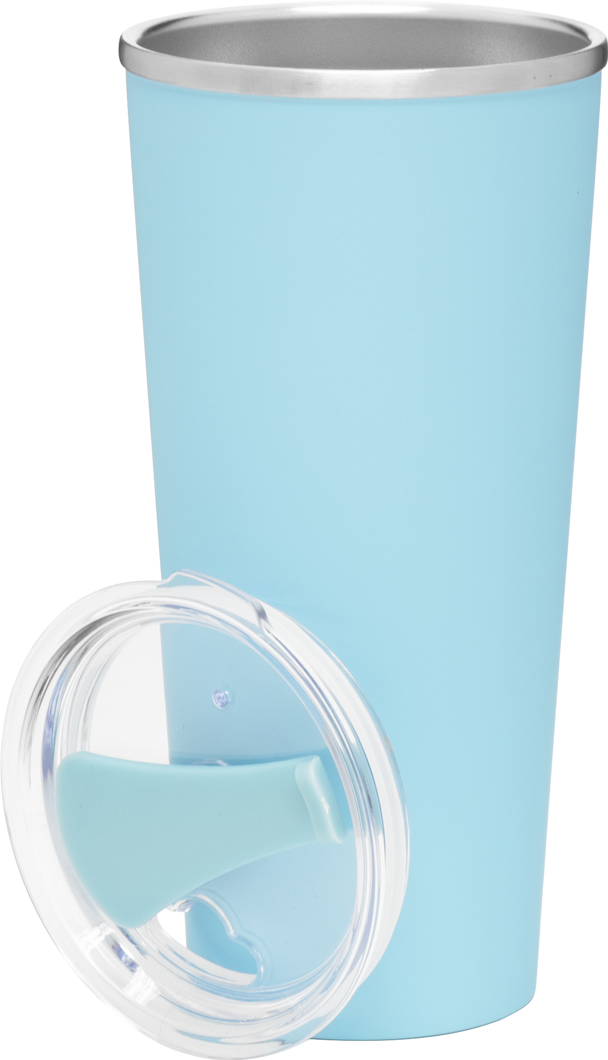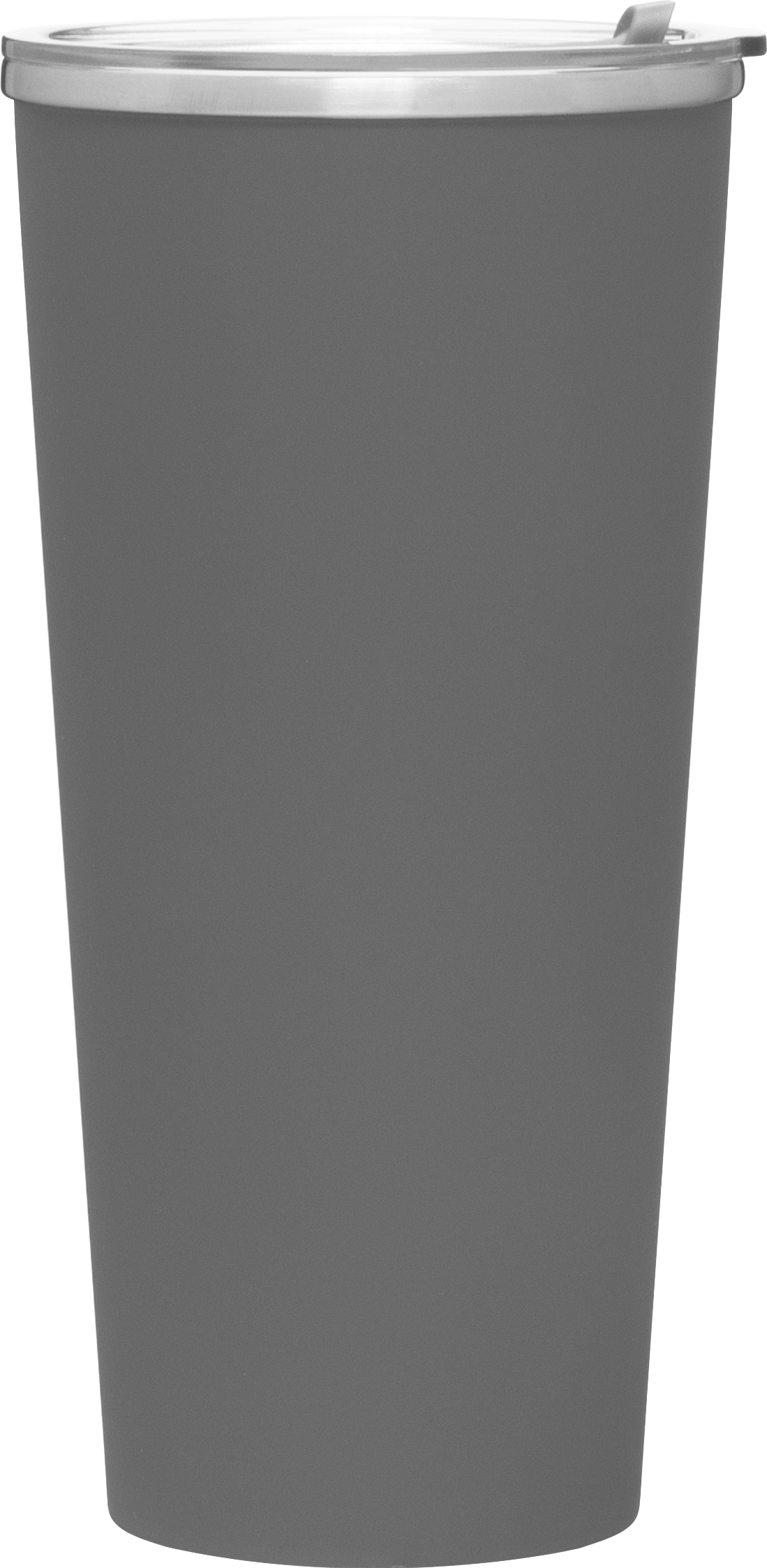 The Cooper 16.9 oz thermal tumbler offers sleek design and dependable temperature control. Made from double wall 18/8 stainless steel with copper vacuum insulation, it keeps beverages hot or cold for hours. It features an ultra-thin clear push-on lid with a matching swivel closure for smooth sipping, a polished stainless steel rim, and a soft-touch rubberized finish for a comfortable, modern grip.