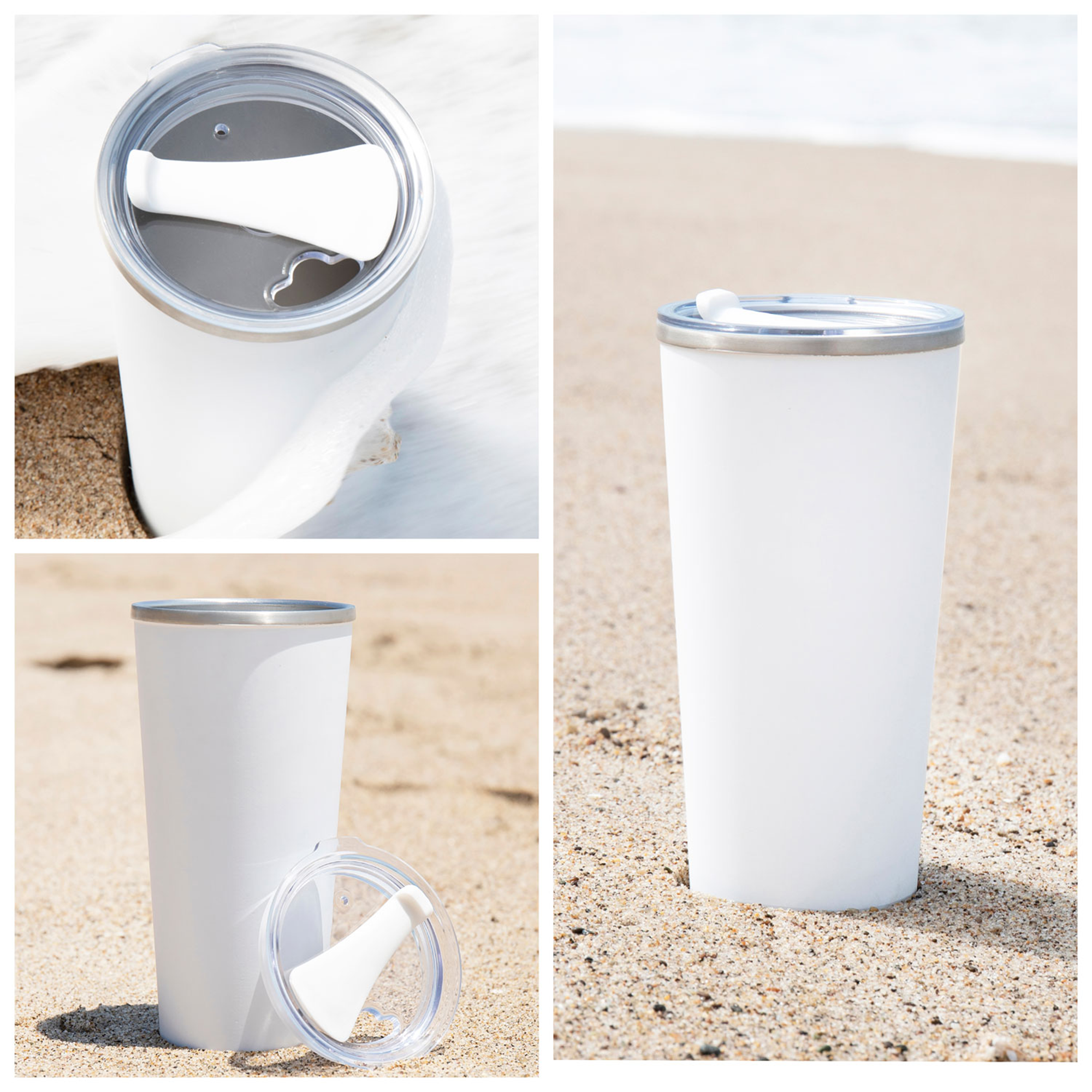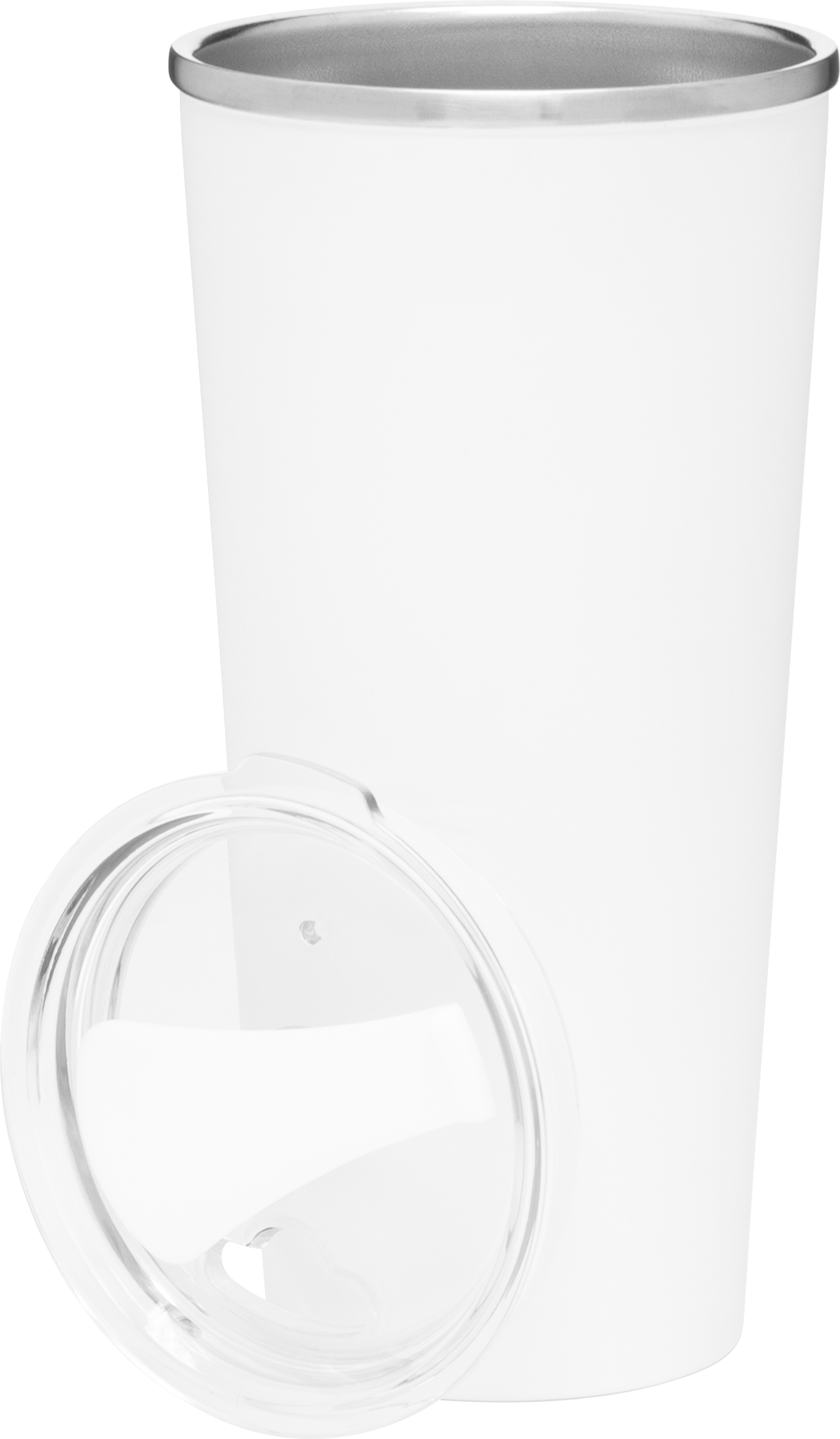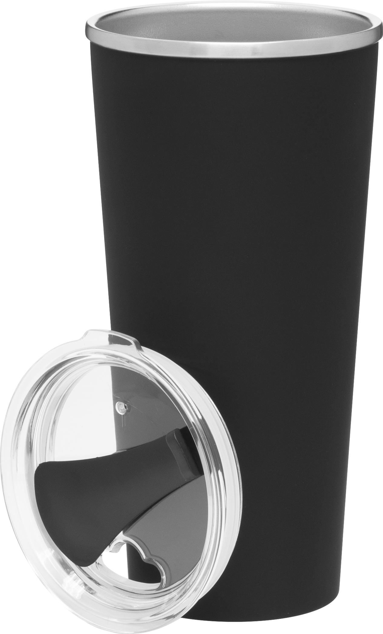 The Cooper 16.9 oz thermal tumbler offers sleek design and dependable temperature control. Made from double wall 18/8 stainless steel with copper vacuum insulation, it keeps beverages hot or cold for hours. It features an ultra-thin clear push-on lid with a matching swivel closure for smooth sipping, a polished stainless steel rim, and a soft-touch rubberized finish for a comfortable, modern grip.