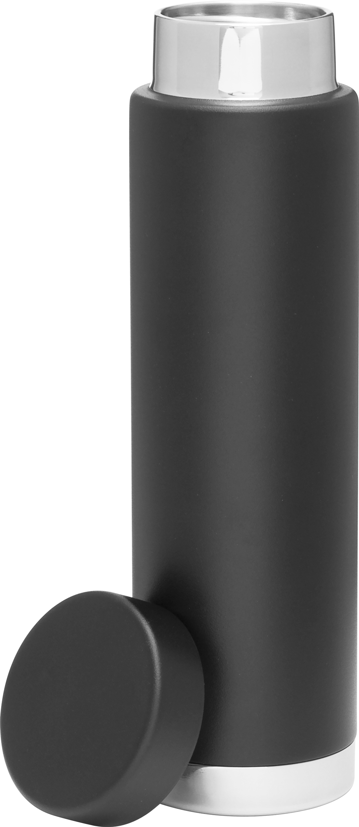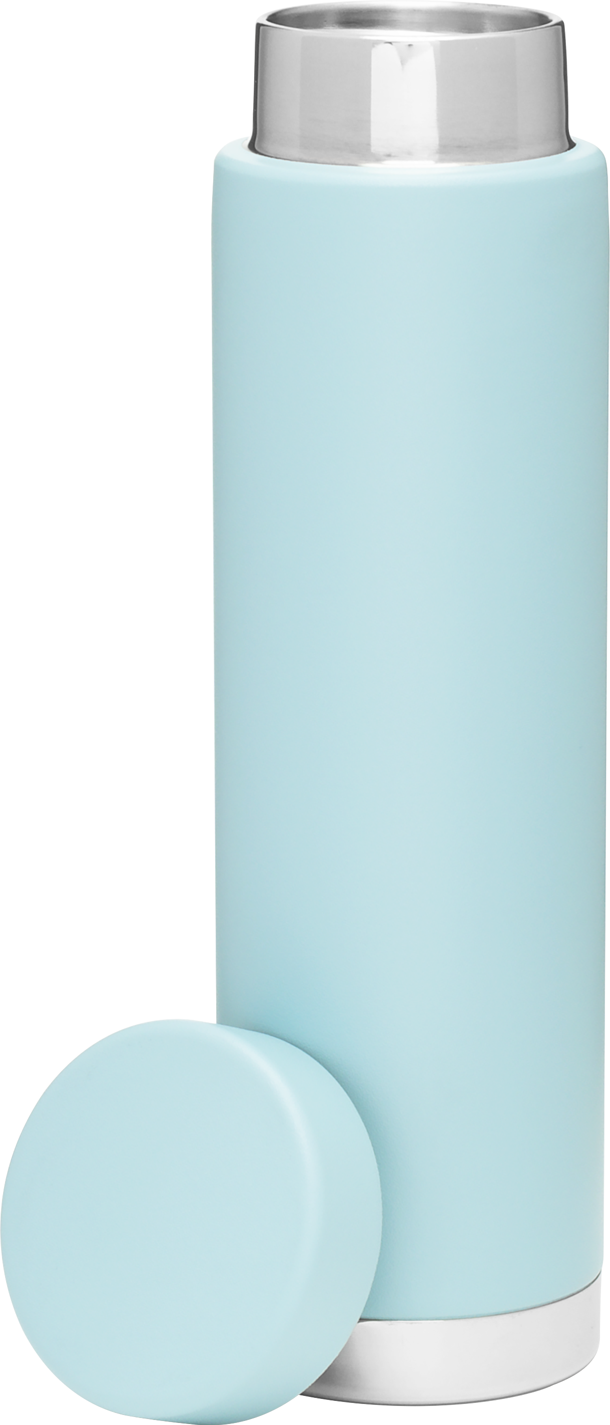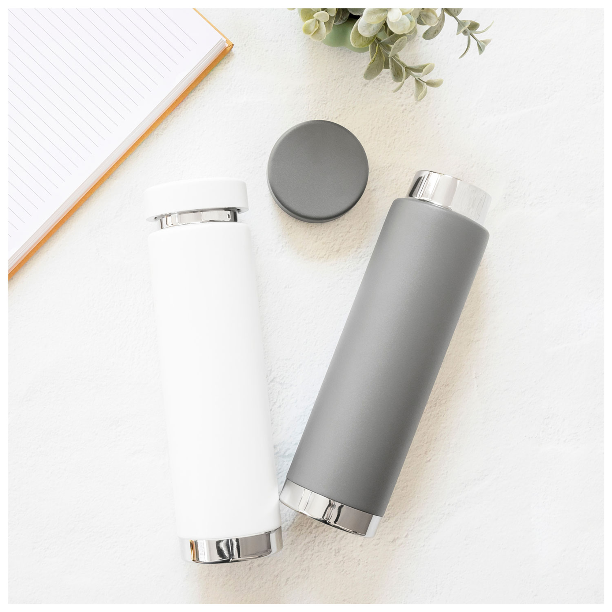 The h2go Colt 16.9 oz thermal bottle delivers clean, modern design with premium insulation. Made from double wall 18/8 stainless steel and copper vacuum insulation, it keeps beverages hot or cold for hours. The threaded insulated lid features plastic-free threading for a seamless metal-on-metal seal, while the high polish rim and base add a refined touch. Finished with a durable powder coated exterior for grip and style.