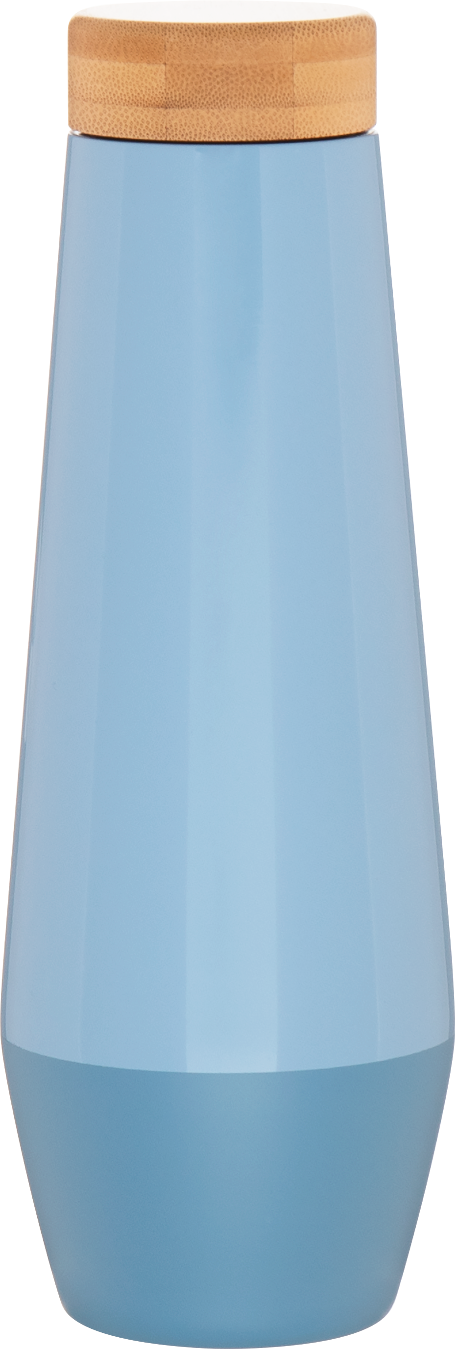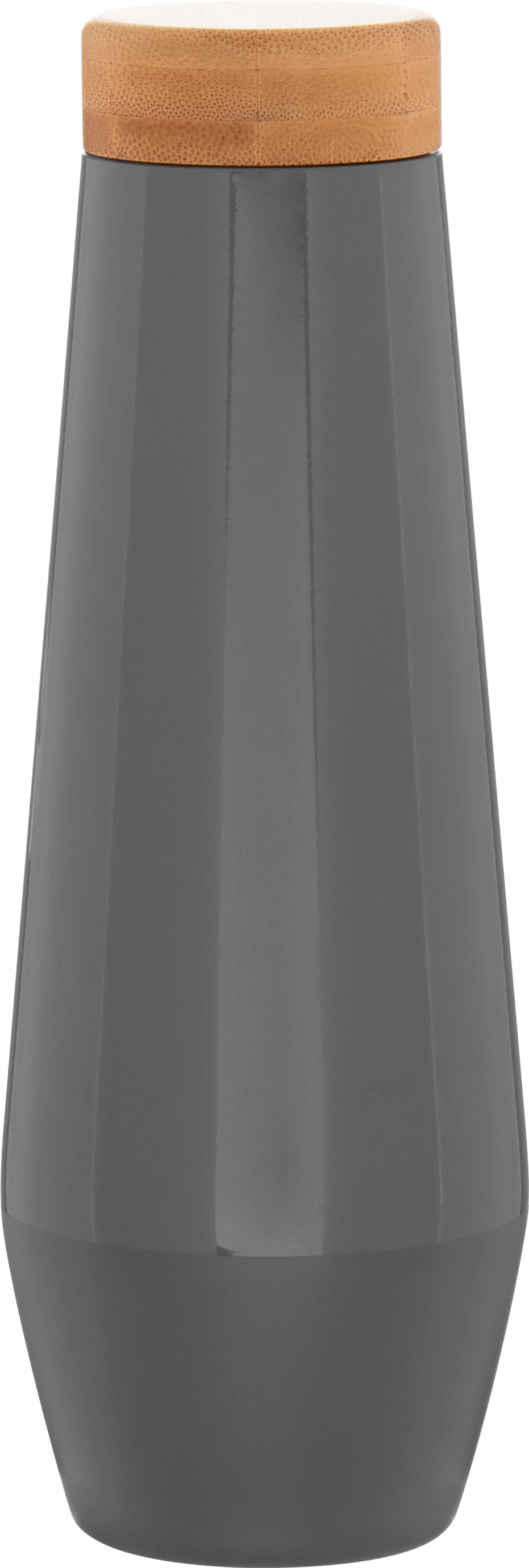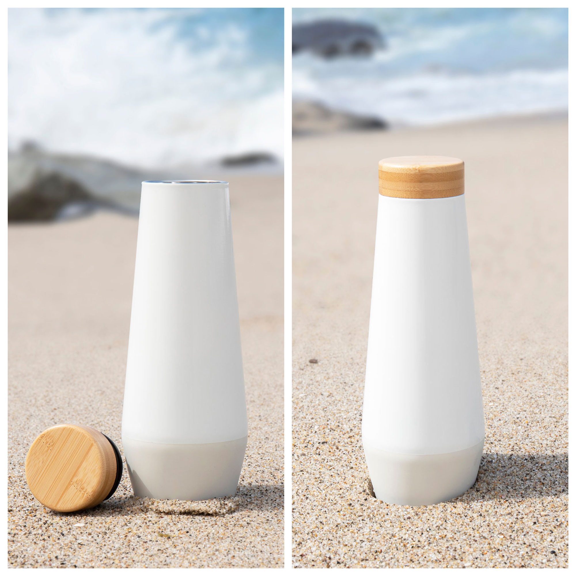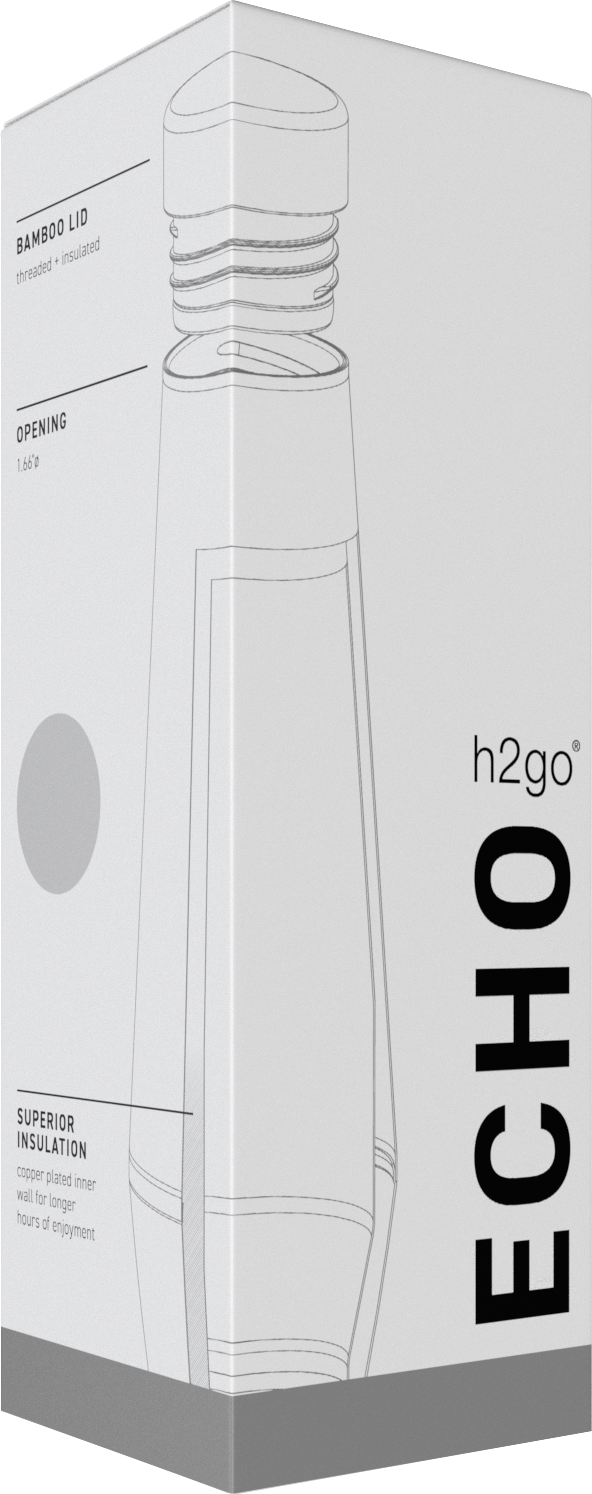 The h2go Echo 16.9 oz thermal bottle combines natural details with modern performance. Made from double wall 18/8 stainless steel with copper vacuum insulation, it keeps beverages hot or cold for hours. The threaded insulated bamboo lid adds an eco-inspired touch, while the silicone base pad provides stability and surface protection. A glossy and matte dual-tone finish completes the look with bold contrast and style.