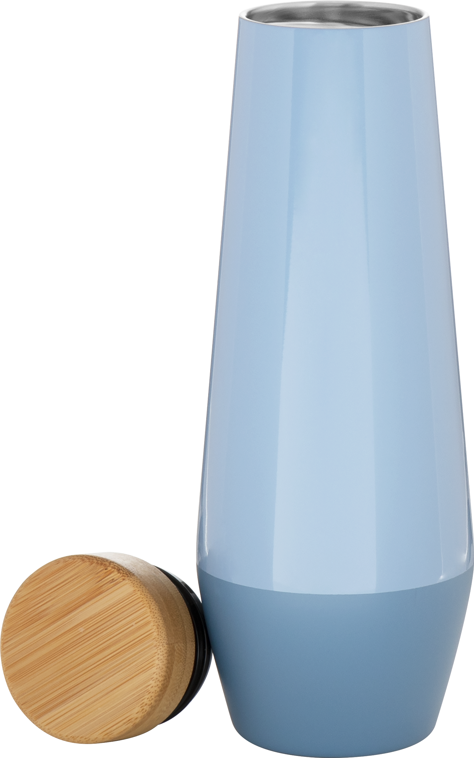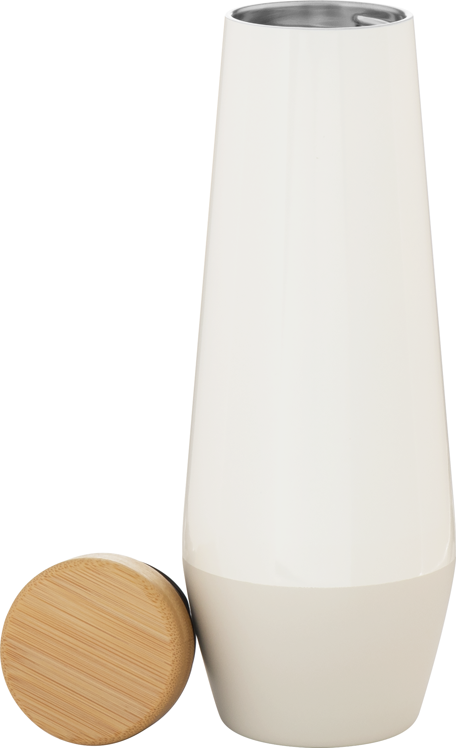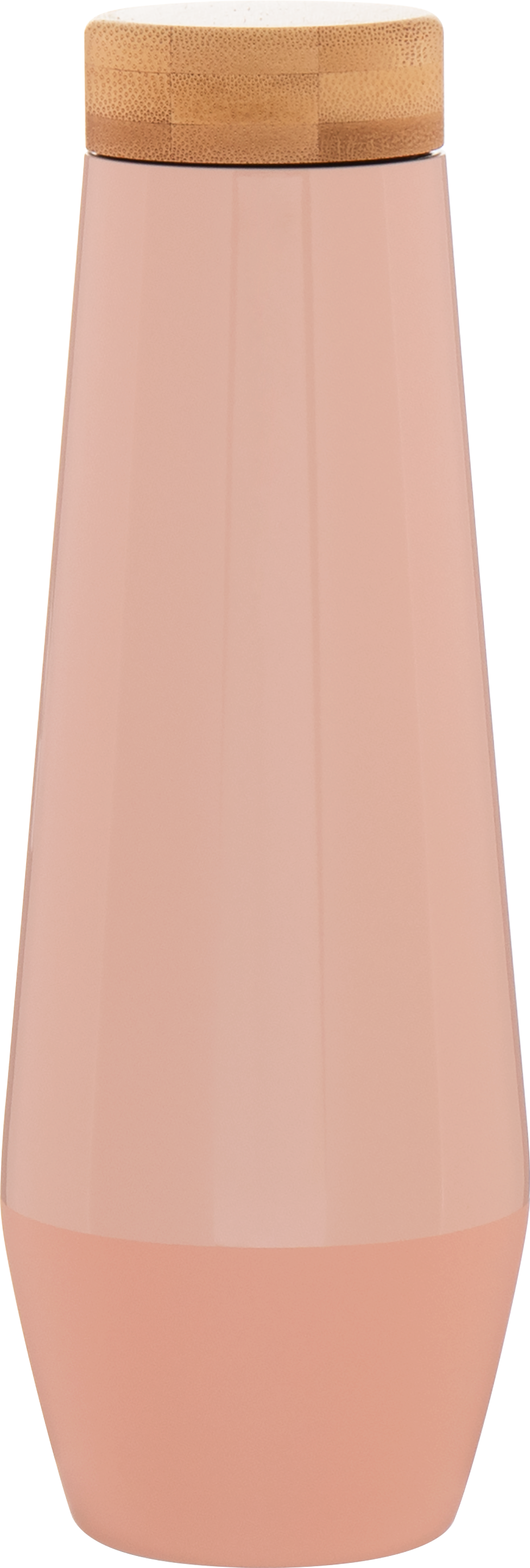 The h2go Echo 16.9 oz thermal bottle combines natural details with modern performance. Made from double wall 18/8 stainless steel with copper vacuum insulation, it keeps beverages hot or cold for hours. The threaded insulated bamboo lid adds an eco-inspired touch, while the silicone base pad provides stability and surface protection. A glossy and matte dual-tone finish completes the look with bold contrast and style.