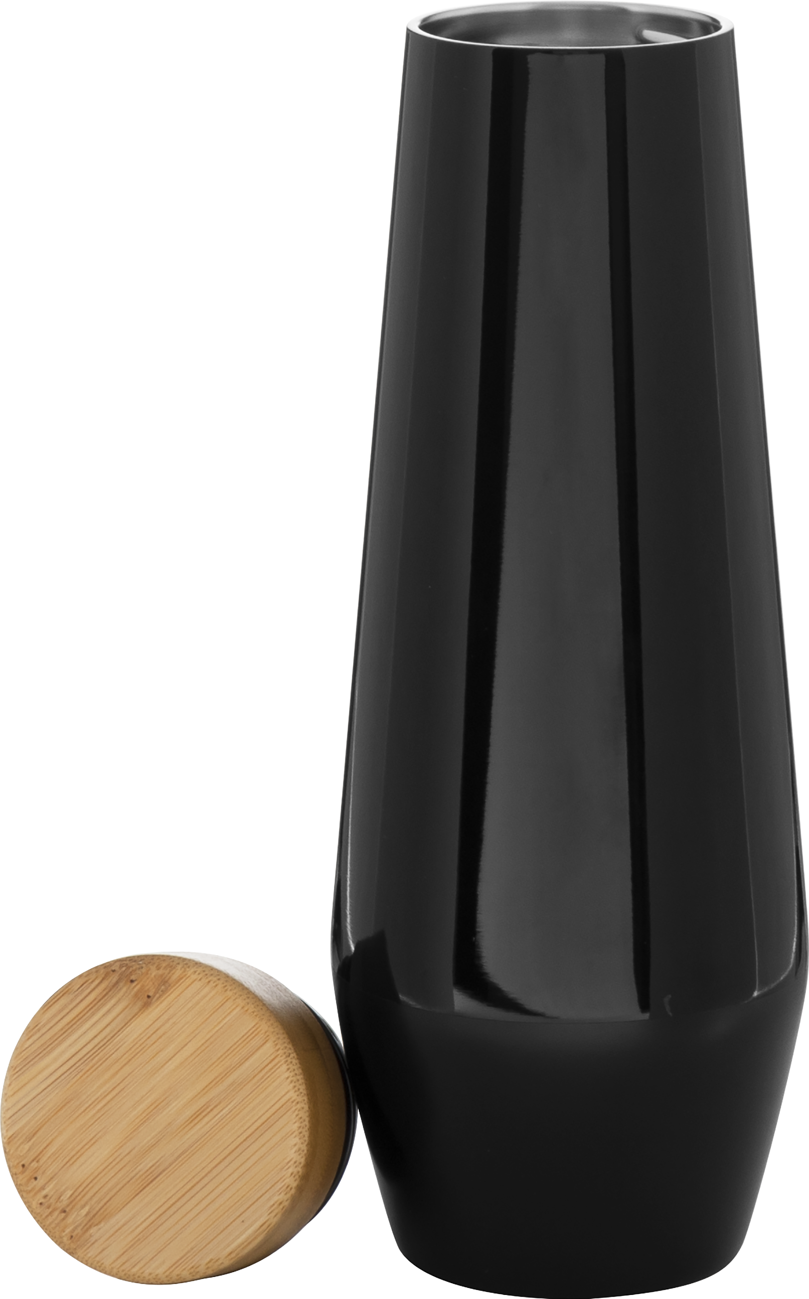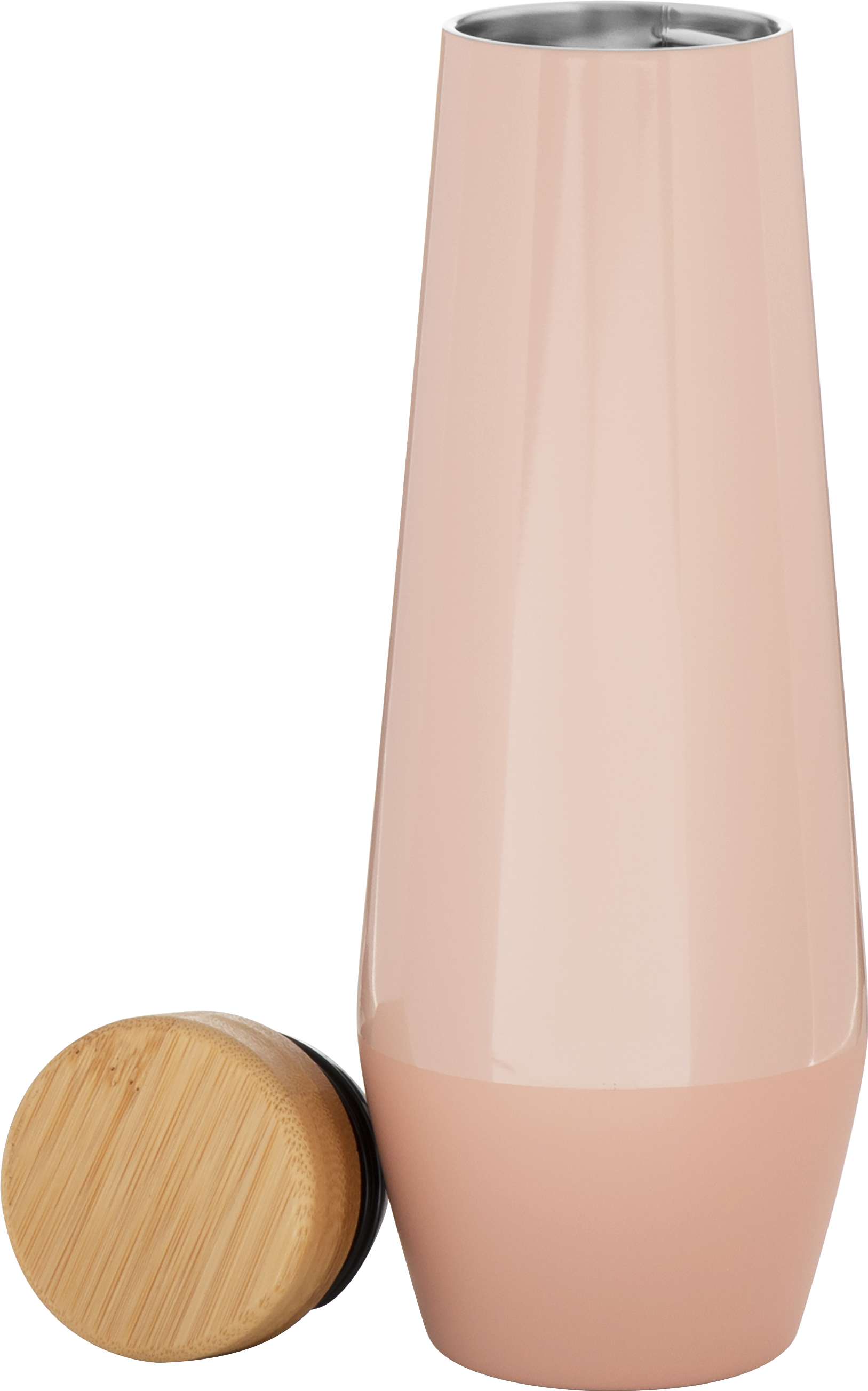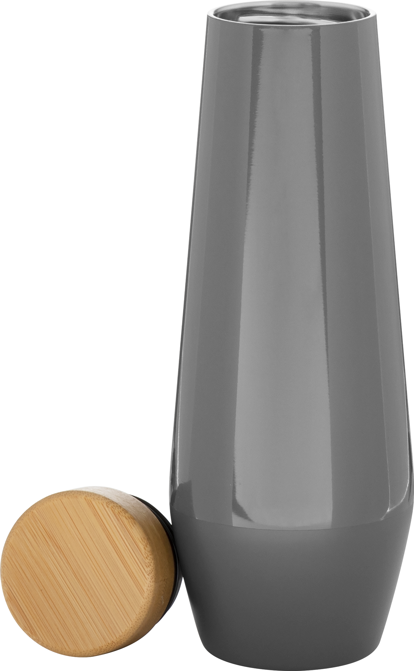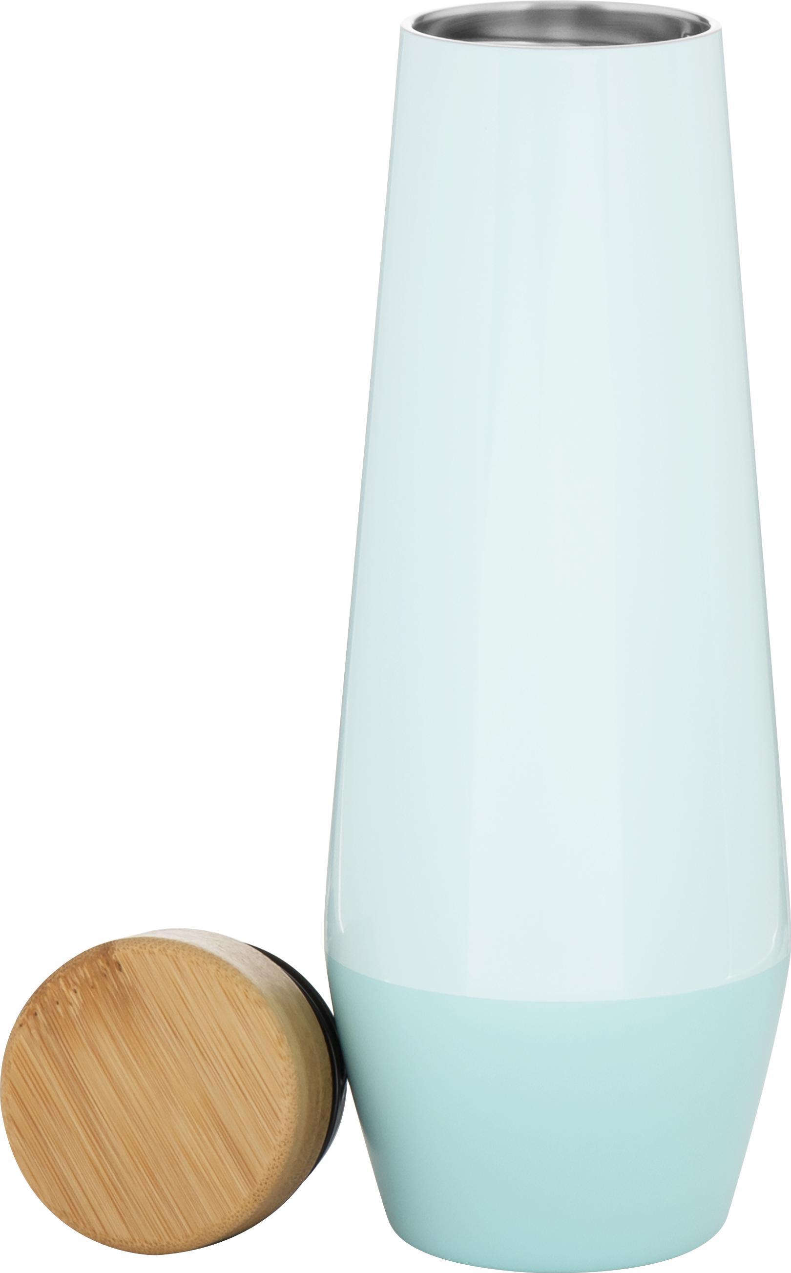 The h2go Echo 16.9 oz thermal bottle combines natural details with modern performance. Made from double wall 18/8 stainless steel with copper vacuum insulation, it keeps beverages hot or cold for hours. The threaded insulated bamboo lid adds an eco-inspired touch, while the silicone base pad provides stability and surface protection. A glossy and matte dual-tone finish completes the look with bold contrast and style.