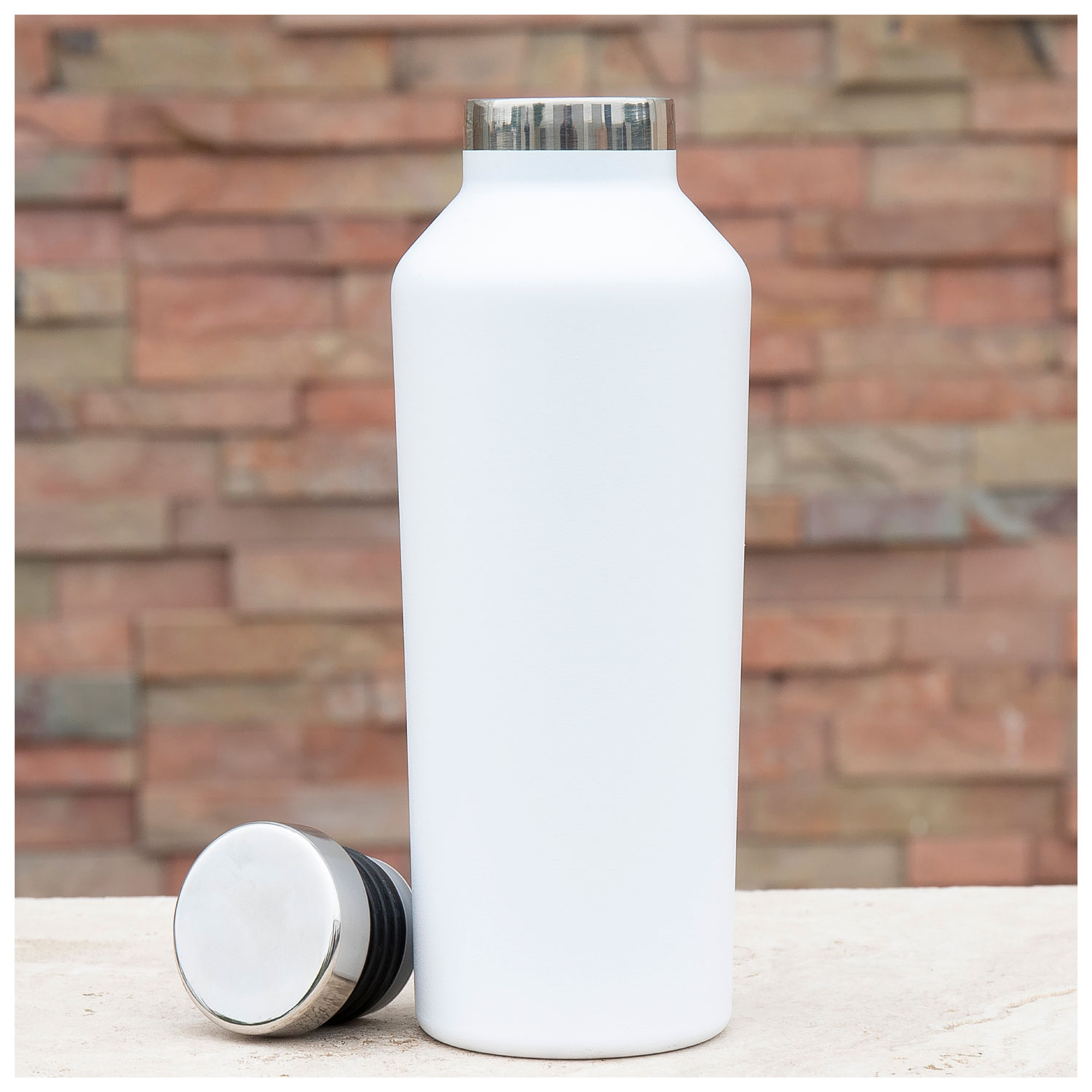 The h2go Manhattan 16.9 oz thermal bottle features a refined silhouette inspired by classic martini shakers. Made from double wall 18/8 stainless steel with copper vacuum insulation, it keeps beverages hot or cold for hours. A threaded stainless steel insulated lid and polished stainless steel rim complete the clean, all-metal look, while the powder coated finish adds grip and durability. Ideal for stylish hydration at home, at work, or on the go.