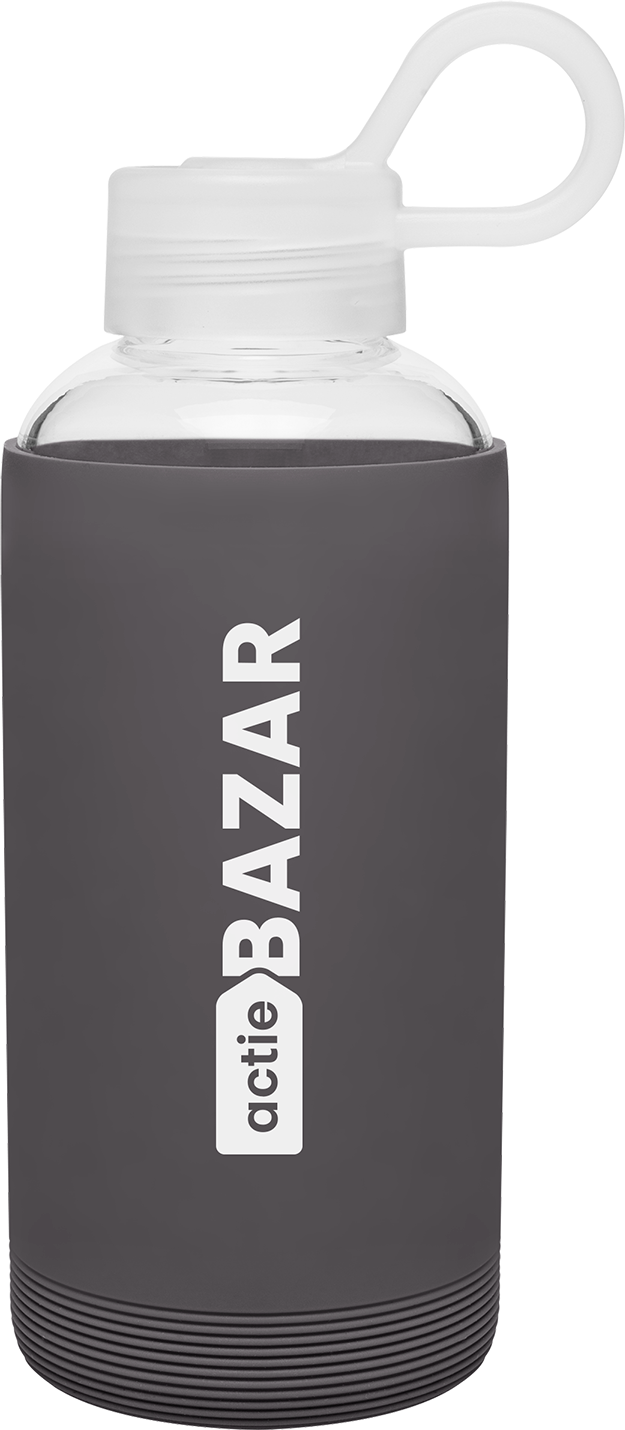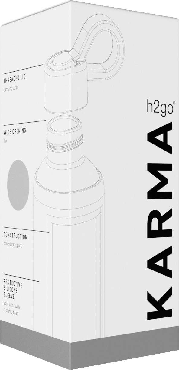 The h2go Karma 16 oz bottle delivers everyday hydration with a clean, minimalist design. Made from lightweight single wall borosilicate glass, it features a threaded lid with an integrated carrying loop for easy portability. A protective silicone sleeve adds grip and guards against bumps—perfect for cold beverages at home, at work, or on the go.