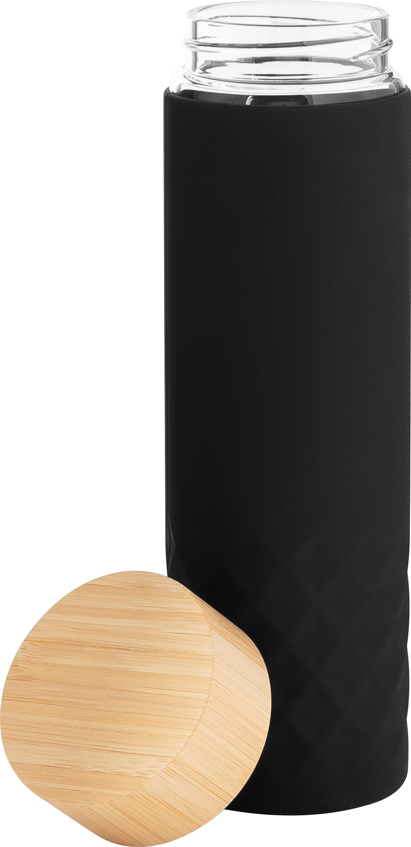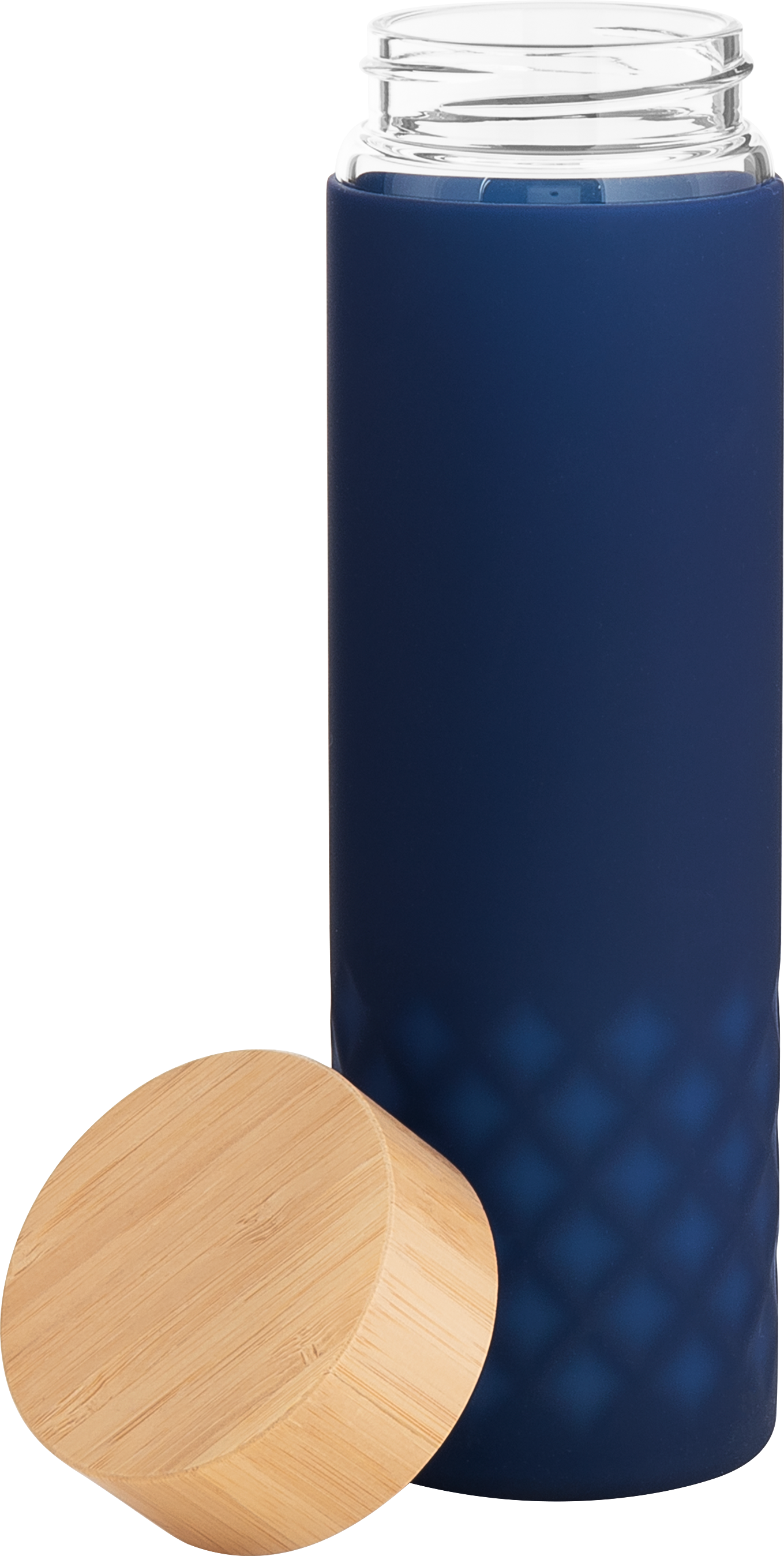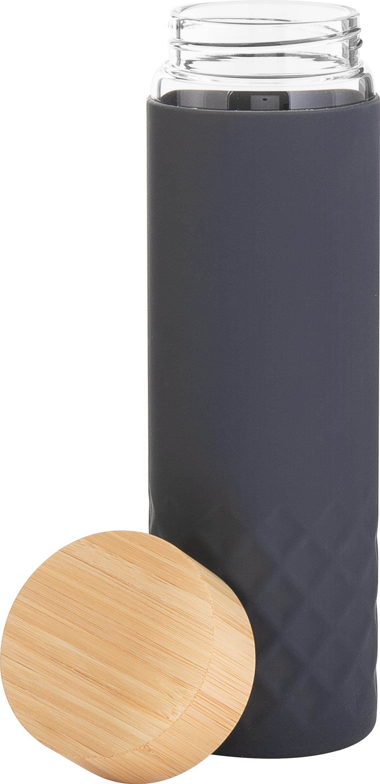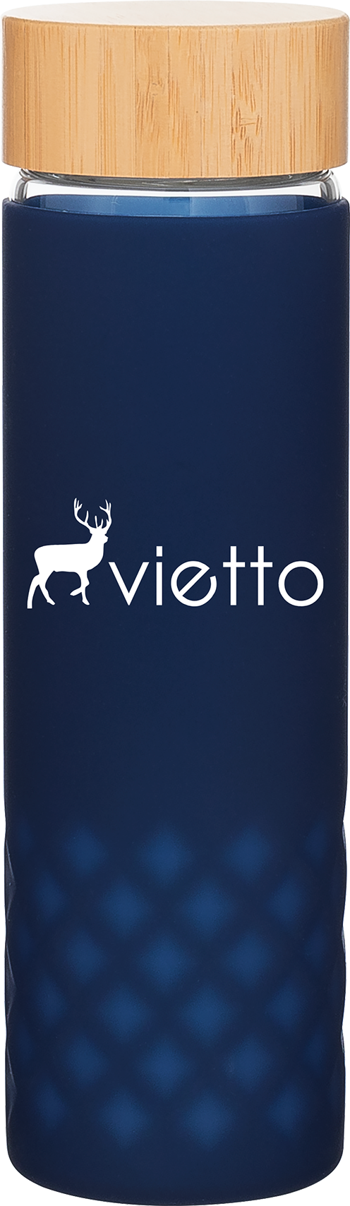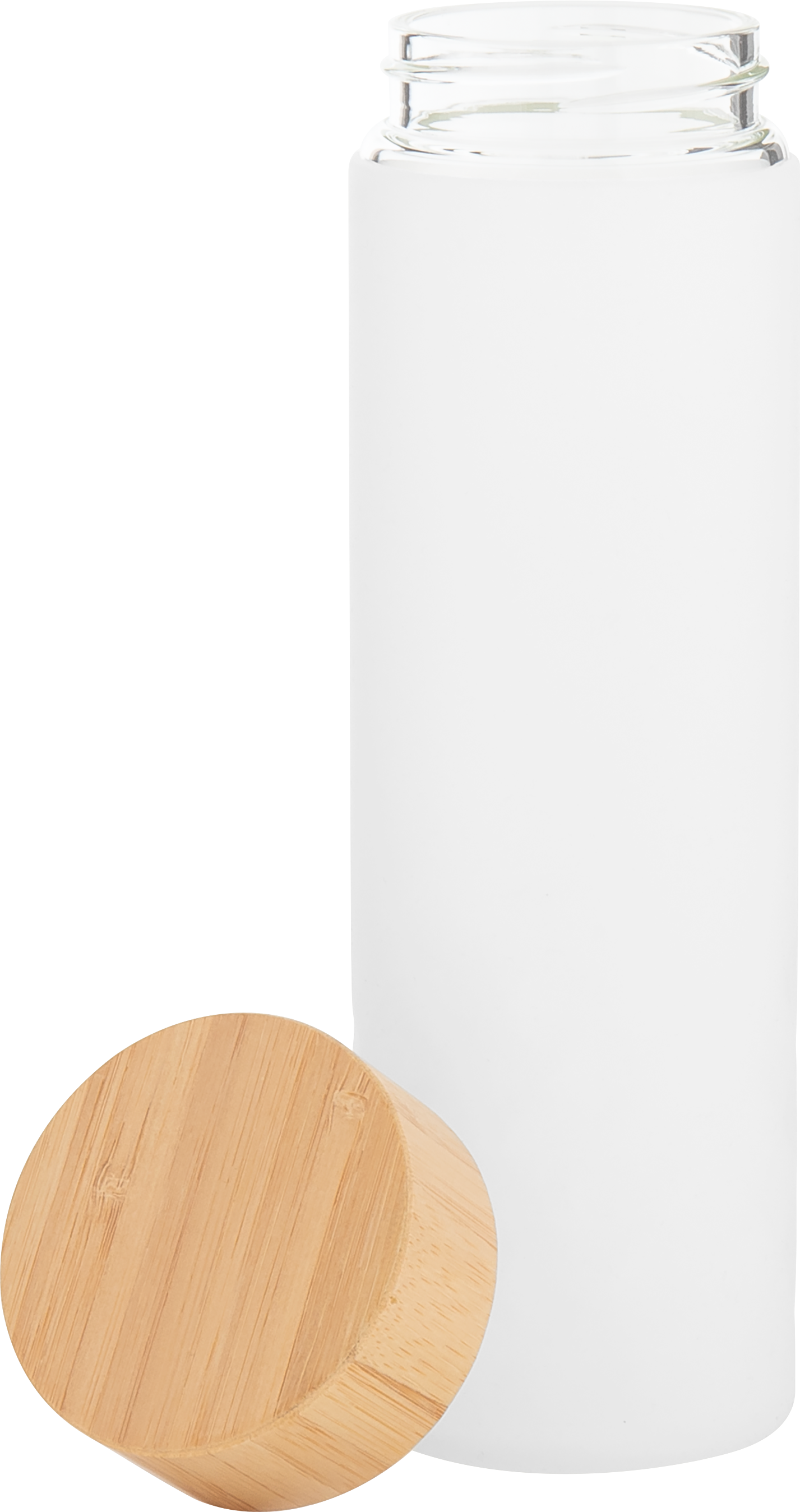 The h2go Dawn 18 oz glass bottle blends clean design with natural details for stylish, everyday hydration. Made from lightweight single wall borosilicate glass, it features a threaded bamboo lid and a protective silicone sleeve that adds grip and guards against bumps. Ideal for cold beverages at home, at work, or on the go.
