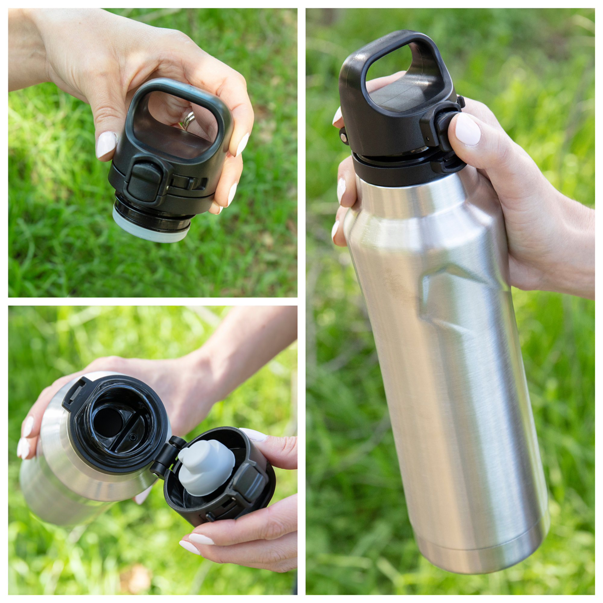 The h2go Houston 20.9 oz thermal bottle combines sleek design with secure, high-performance insulation. Made from double wall 18/8 stainless steel with copper vacuum insulation, it keeps drinks hot or cold for hours. It features a threaded lid with a push-button locking mechanism for leak resistance, plus a built-in carrying handle for convenience on the go. Finished with a glossy exterior for a polished, modern look.