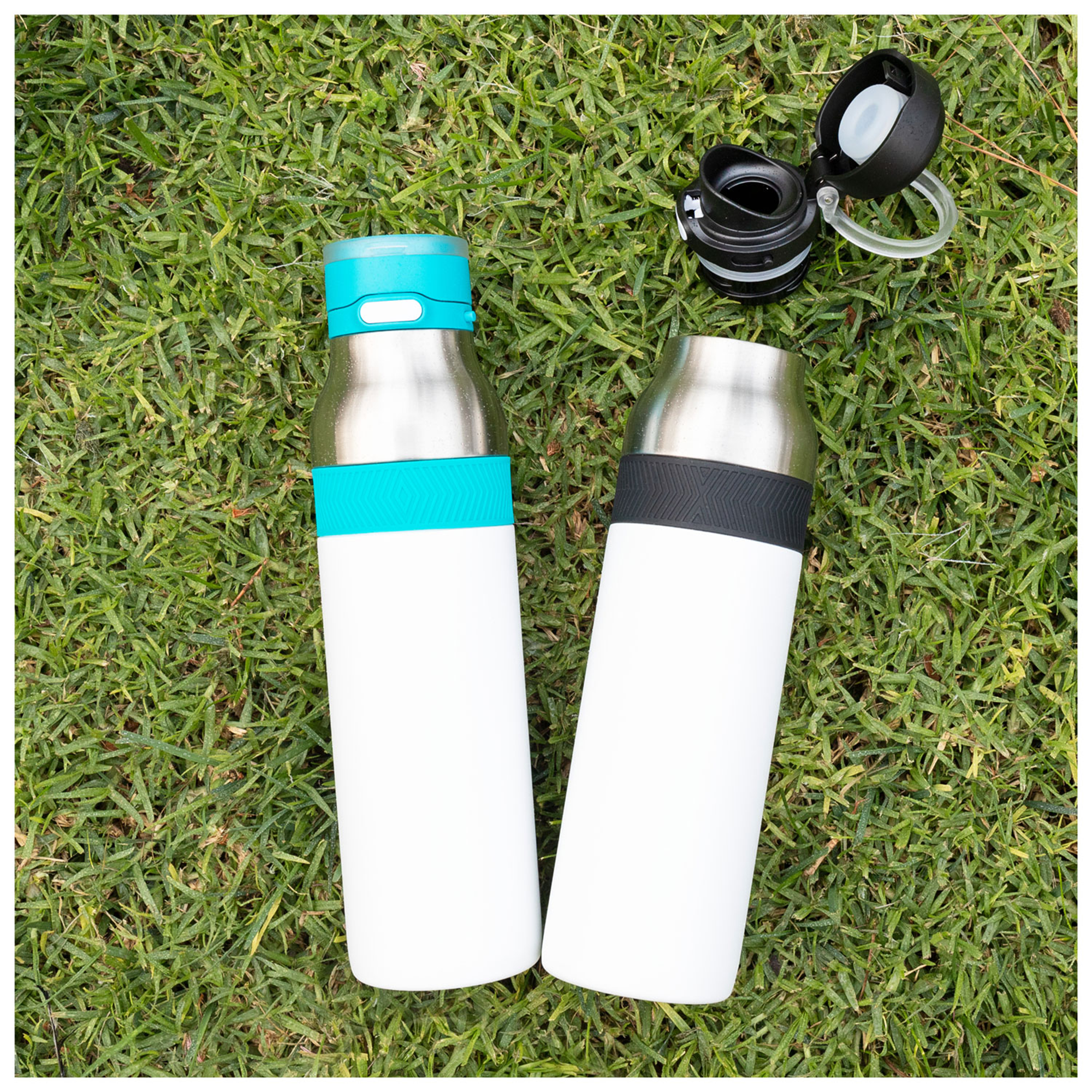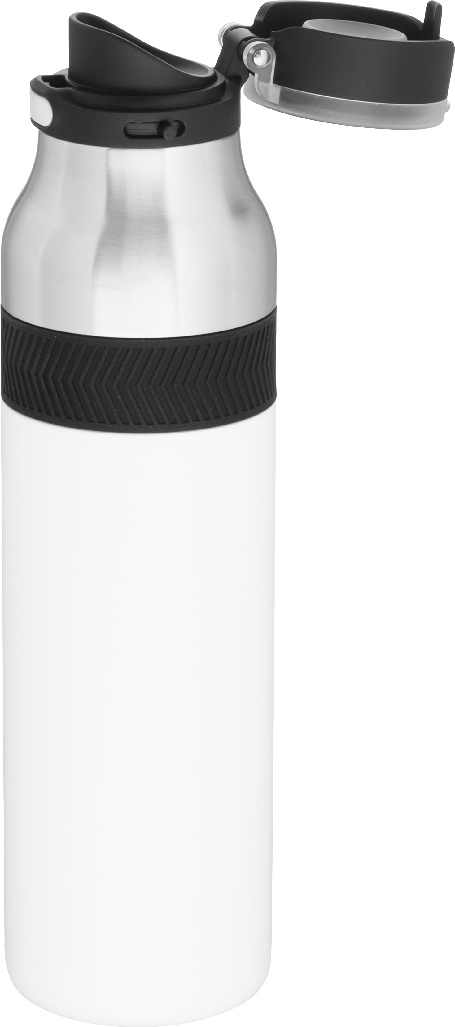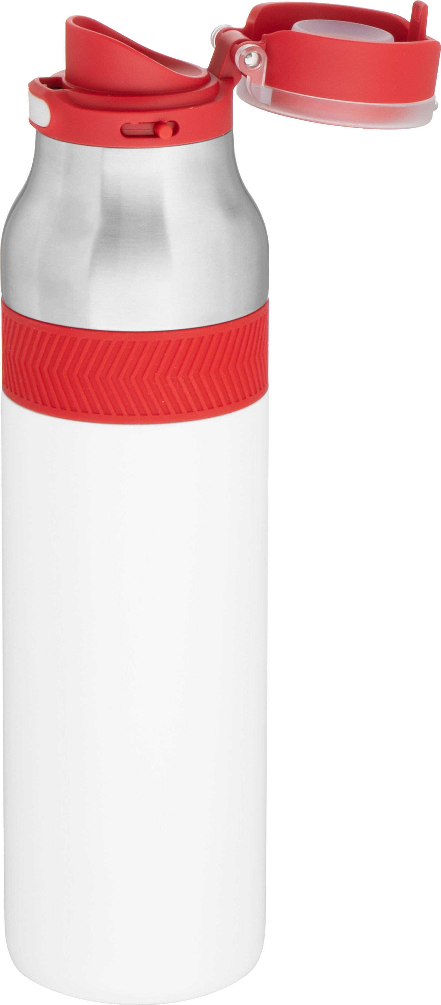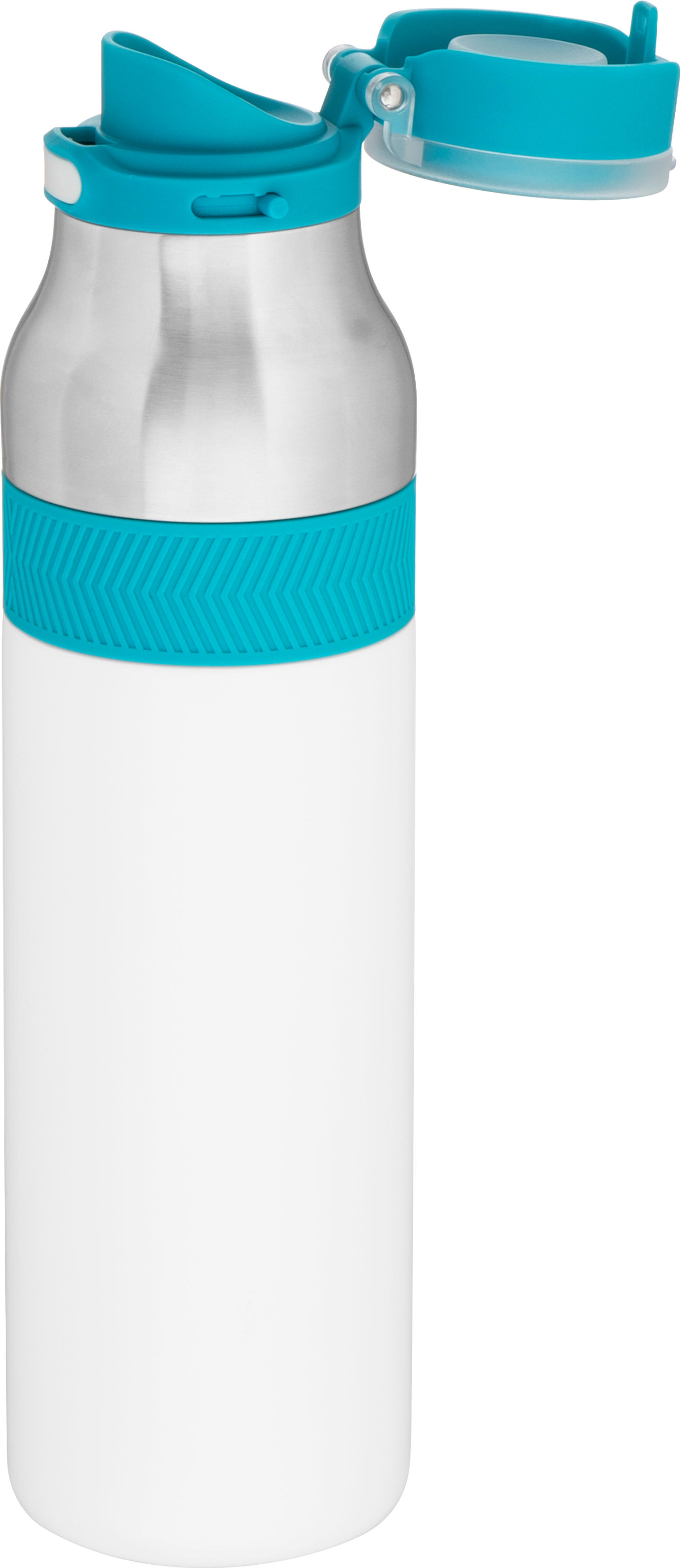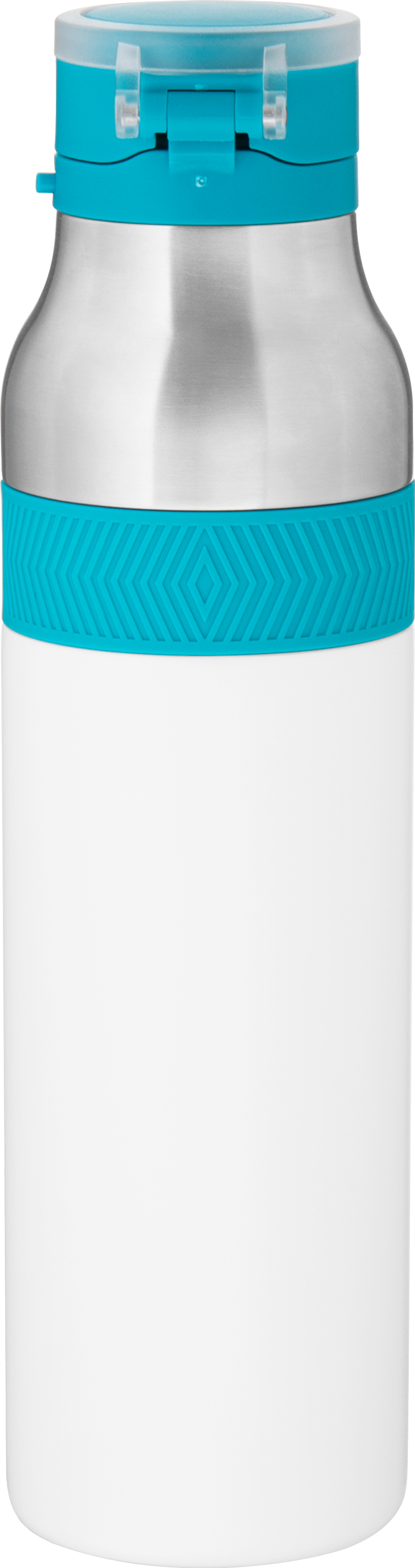 The h2go Jogger 20.9 oz thermal bottle is built for active lifestyles with secure insulation and a bold look. Made from double wall 18/8 stainless steel with copper vacuum insulation, it keeps beverages hot or cold for hours. It features a threaded lid with a push-button locking mechanism, an integrated carrying handle, and a pop of color accent for added style. Finished with a durable powder coated exterior for grip and durability.