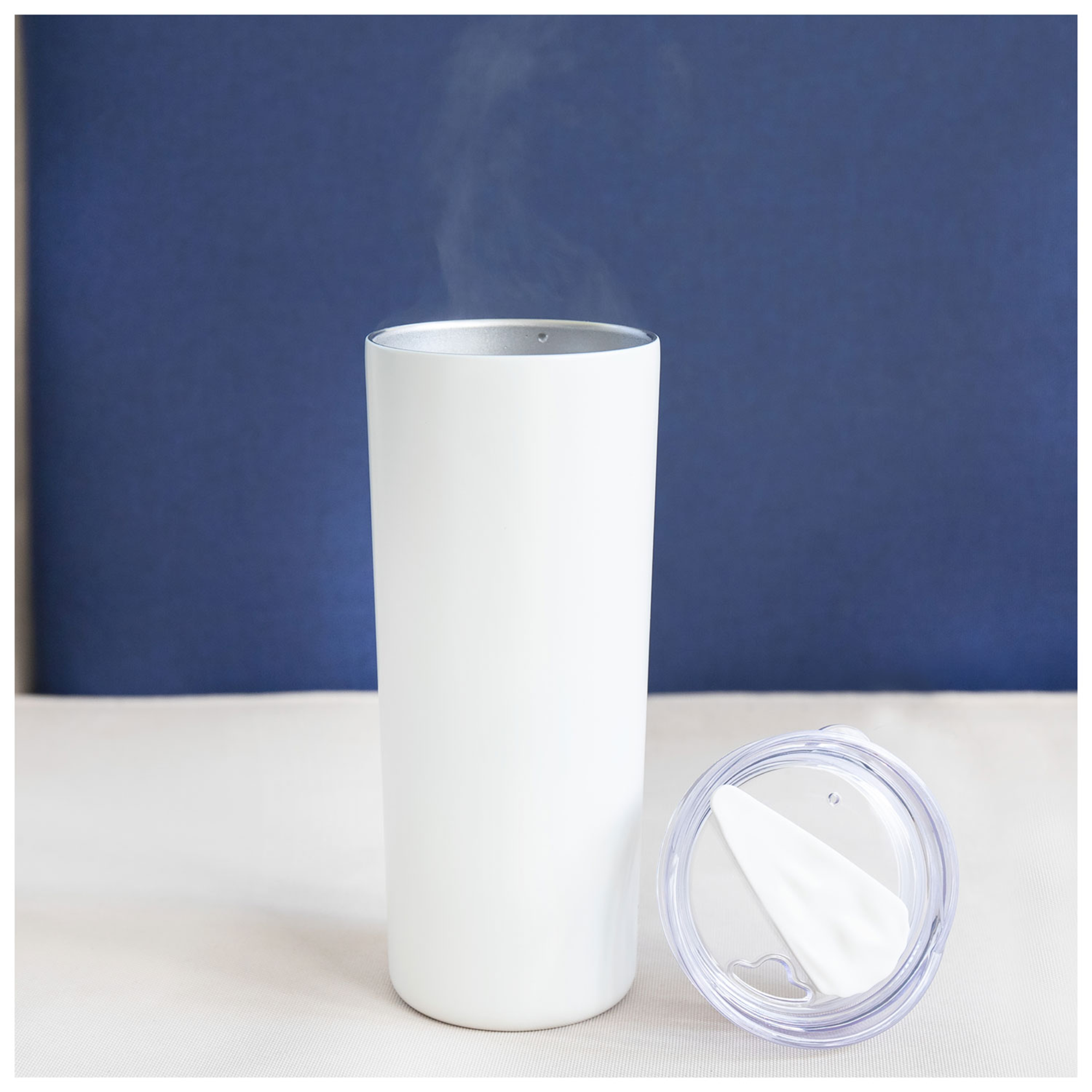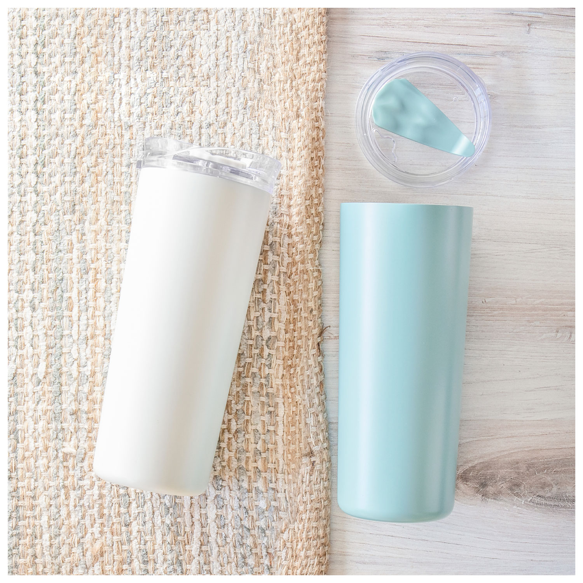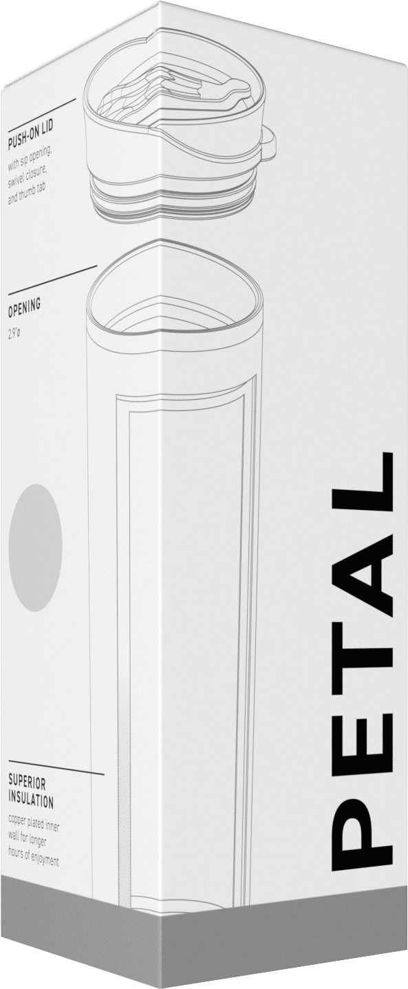 The Petal 20.9 oz thermal tumbler combines elegant design with everyday performance. Made from double wall 18/8 stainless steel with copper vacuum insulation, it keeps beverages hot or cold for hours. It features a clear push-on lid with a matching swivel closure for easy sipping, while the matte pearlized finish adds a soft, iridescent shimmer. Perfect for coffee, tea, or cold drinks on the go.