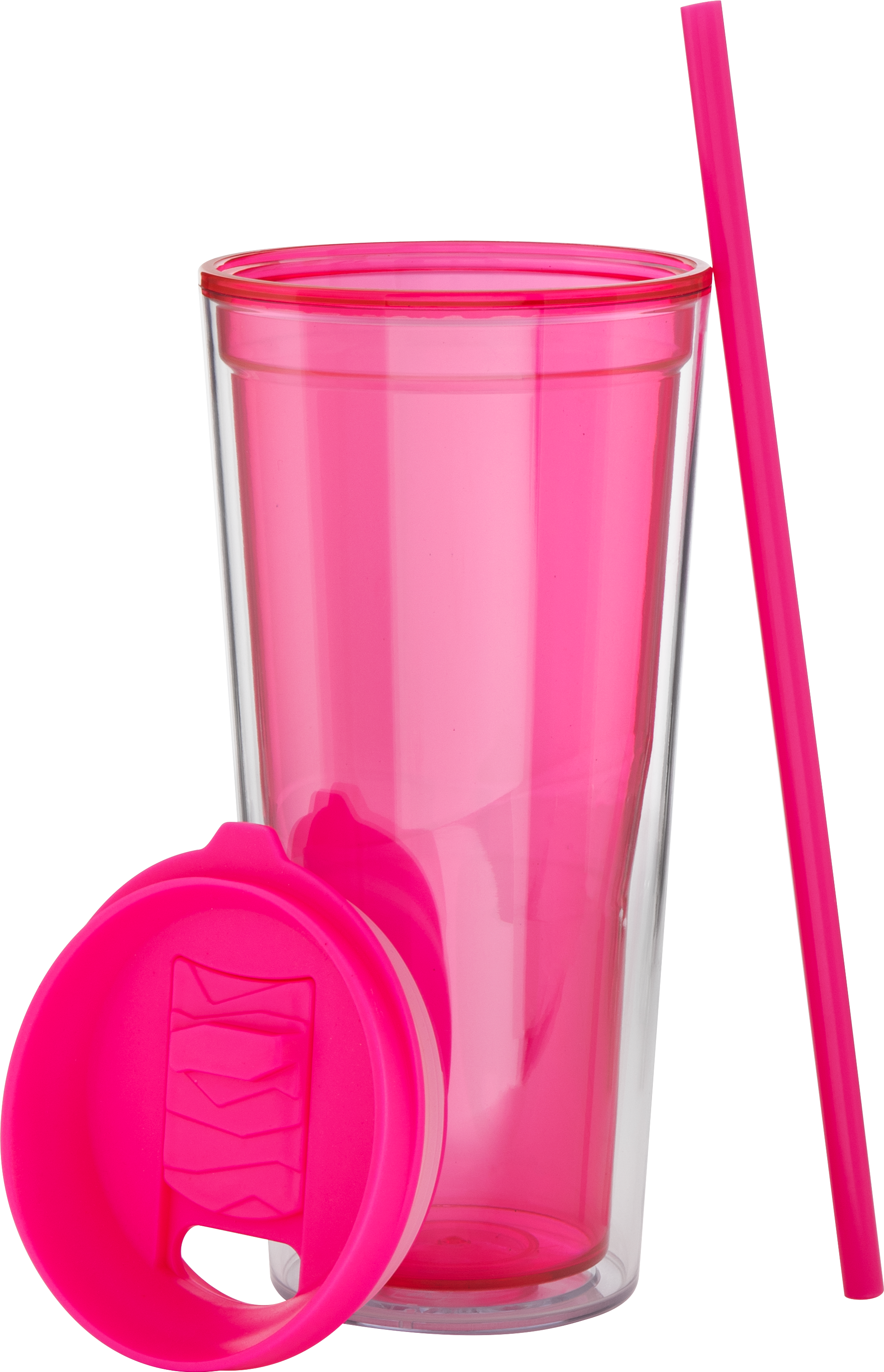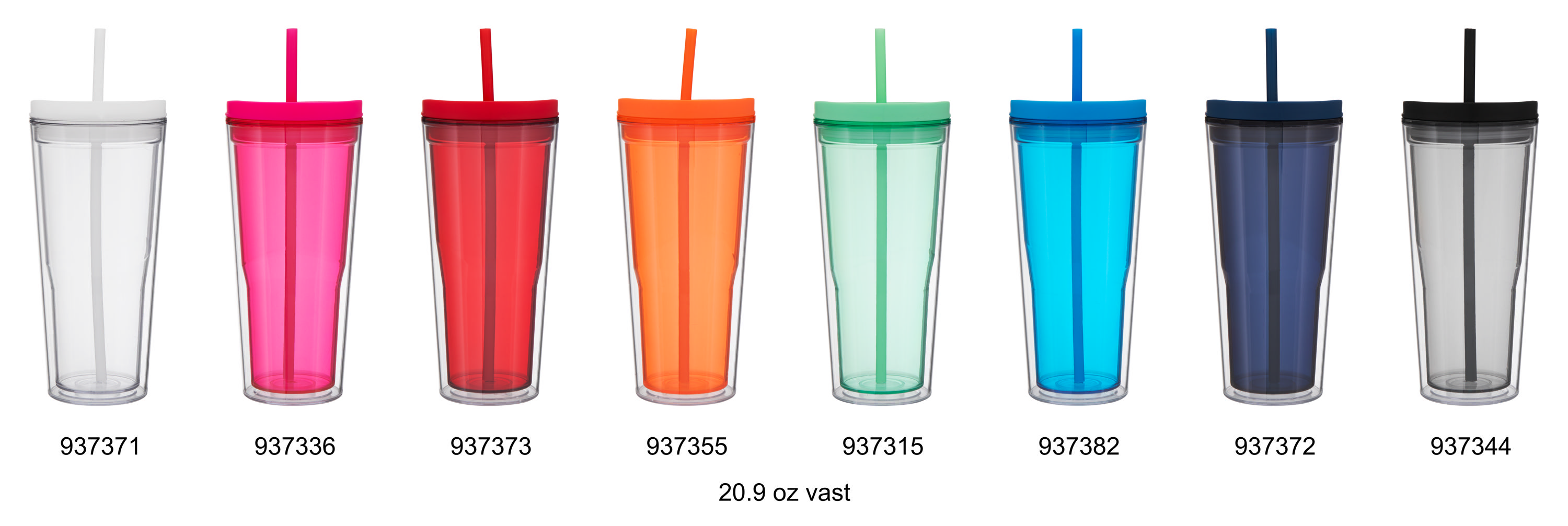The Vast 20.9 oz tumbler delivers bold style and everyday functionality for cold beverages. Made from durable double wall acrylic, it features a clear outer wall and a colored inner wall for a fun, layered look. The matching dual-purpose push-on lid includes a sliding closure for versatile sipping, and the matching straw makes it perfect for chilled drinks on the go.