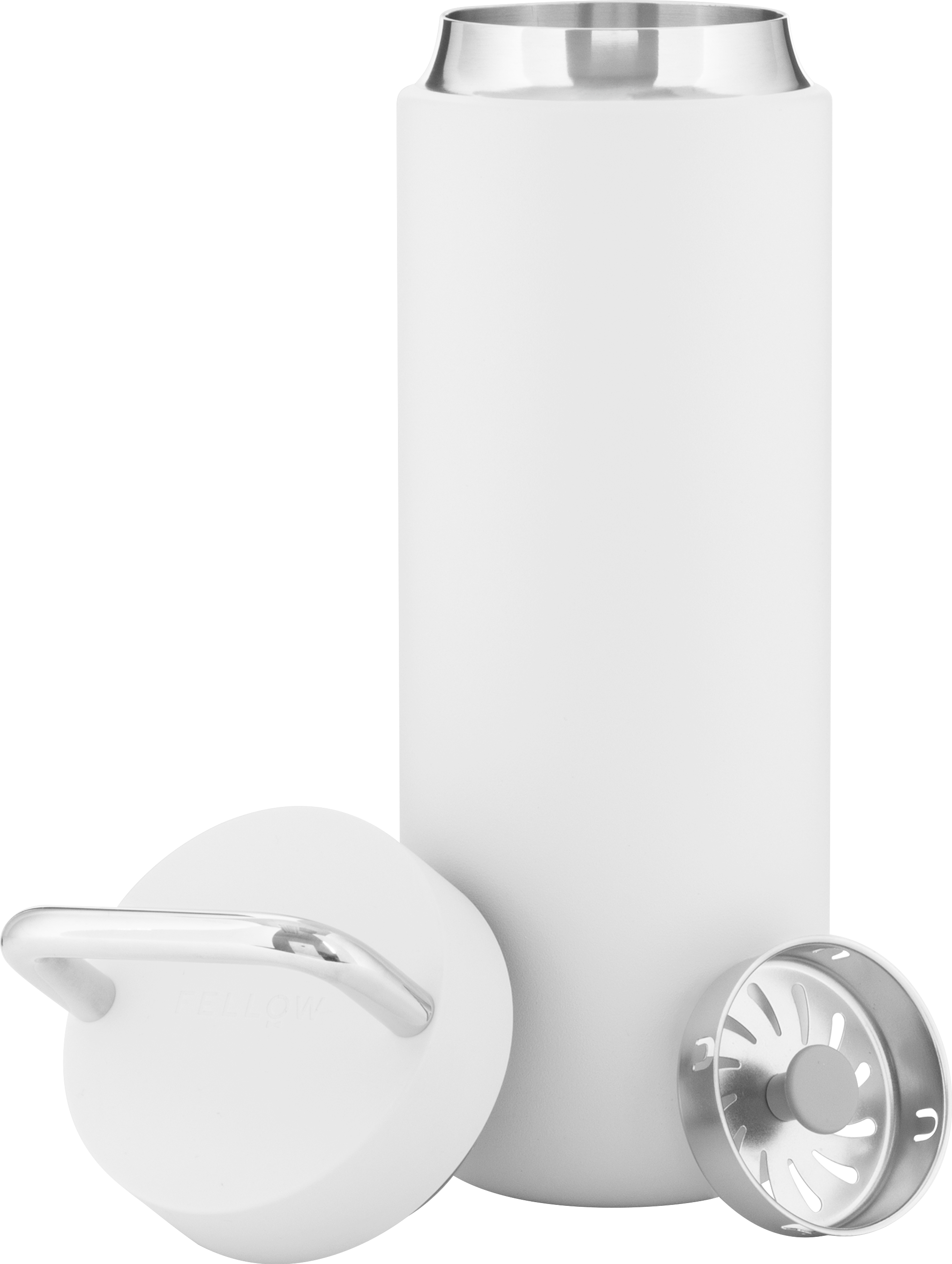 The Fellow Carter Carry Tumbler 20 oz combines clean design with elevated performance. Made from double-wall 18/8 stainless steel with vacuum insulation, it keeps drinks at the perfect temperature while the True Taste ceramic coating preserves flavor without any metallic aftertaste. The threaded lid includes a built-in carrying handle and a splash guard for smooth, spill-resistant sipping. Finished in matte white with a powder coated exterior, it’s a modern classic built for daily use.