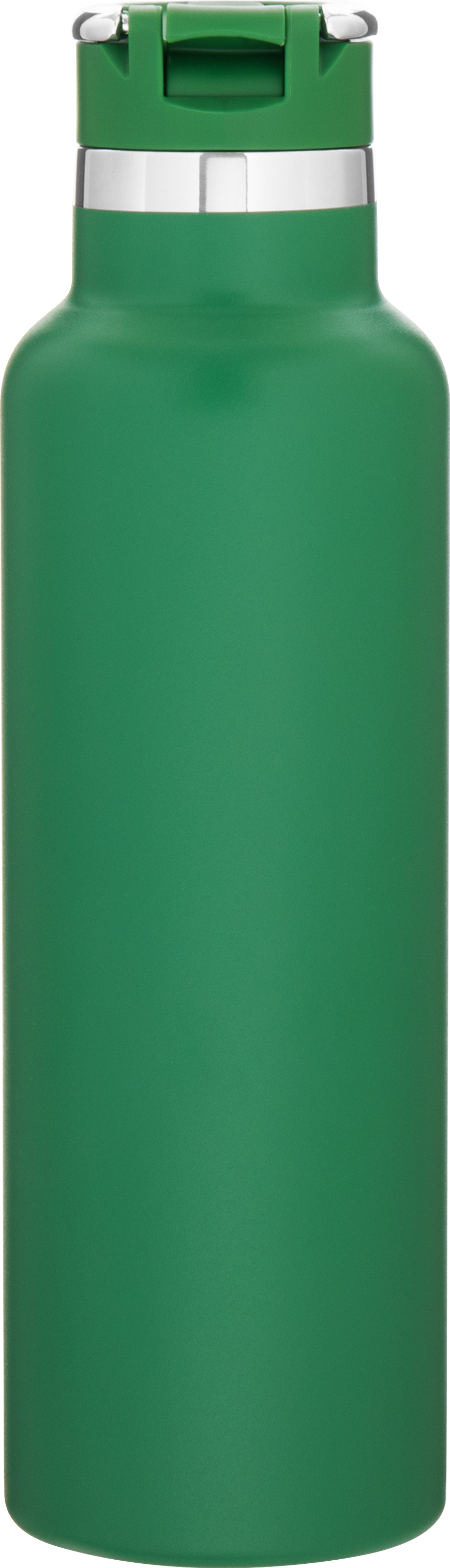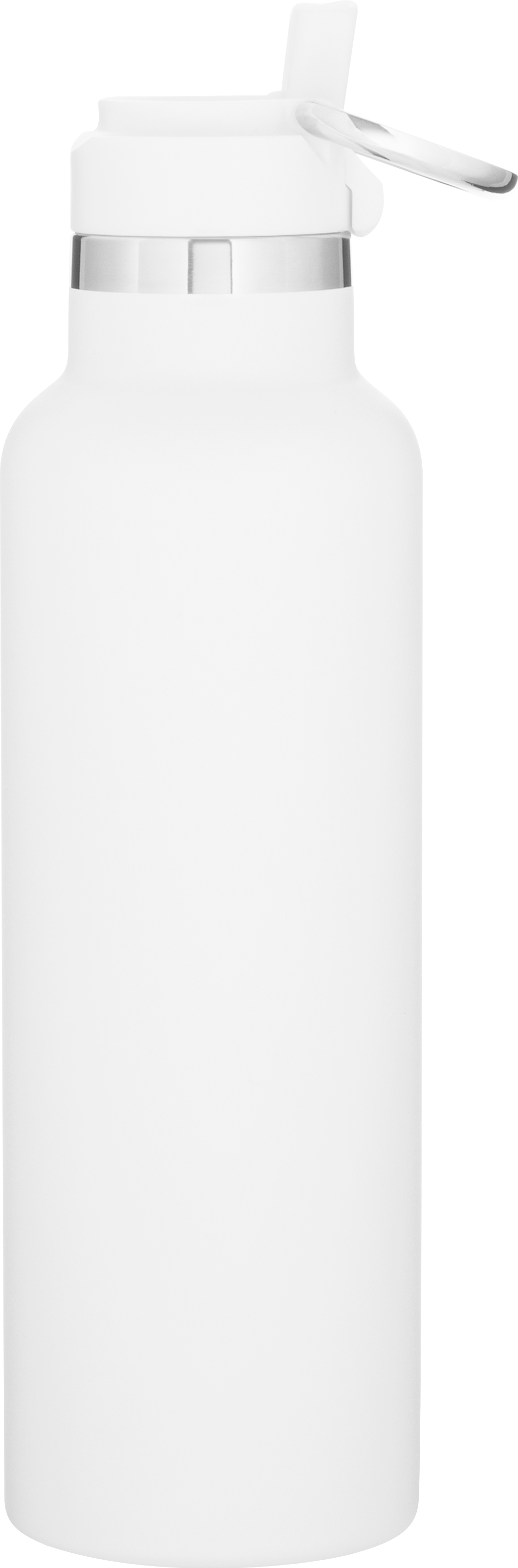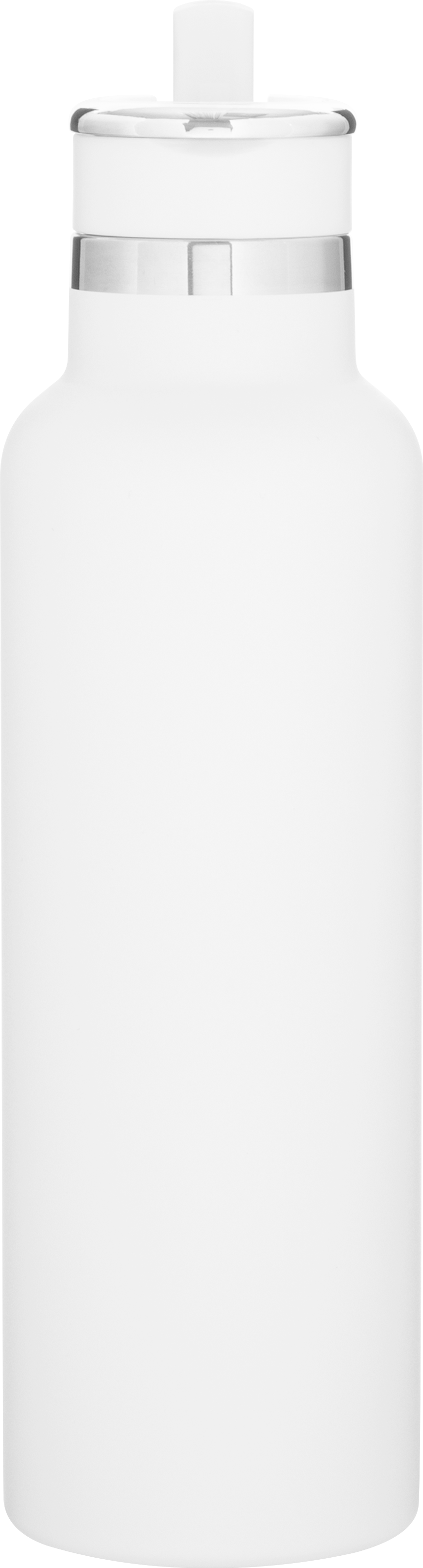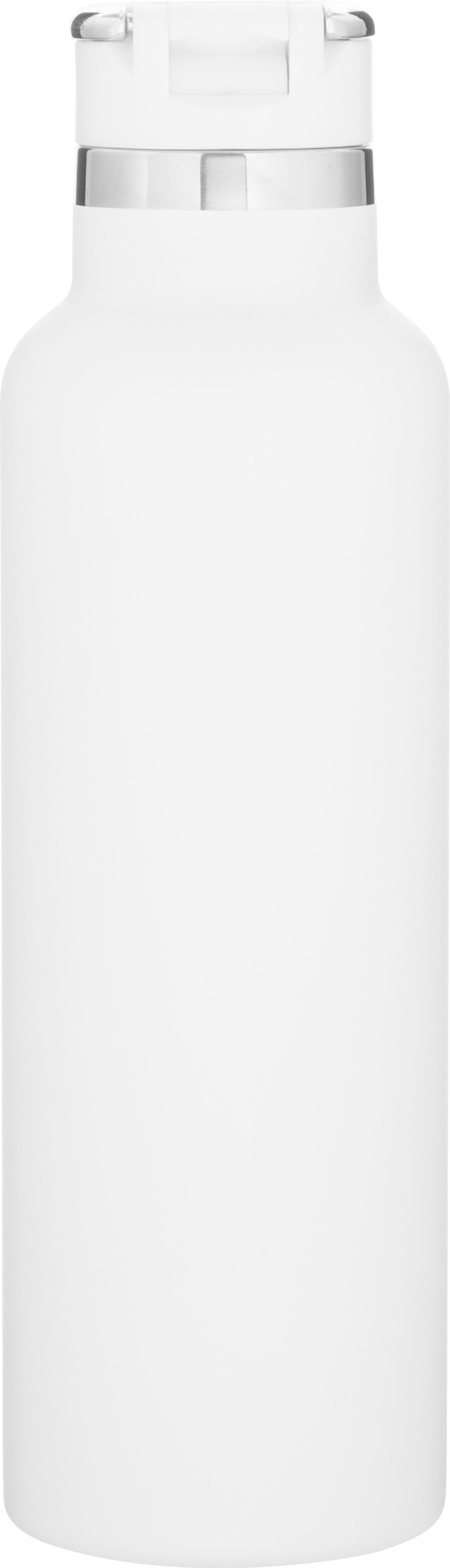 The h2go Juno 20 oz thermal bottle is built for stylish, on-the-go hydration. Made from durable double wall stainless steel with copper vacuum insulation, it keeps your drinks cold for hours. A threaded lid with a flip-up spout and straw offers easy access, while the zinc carrying handle adds strength and portability. The stainless steel rim adds a polished touch, and the powder coated finish completes the look with durability and grip.