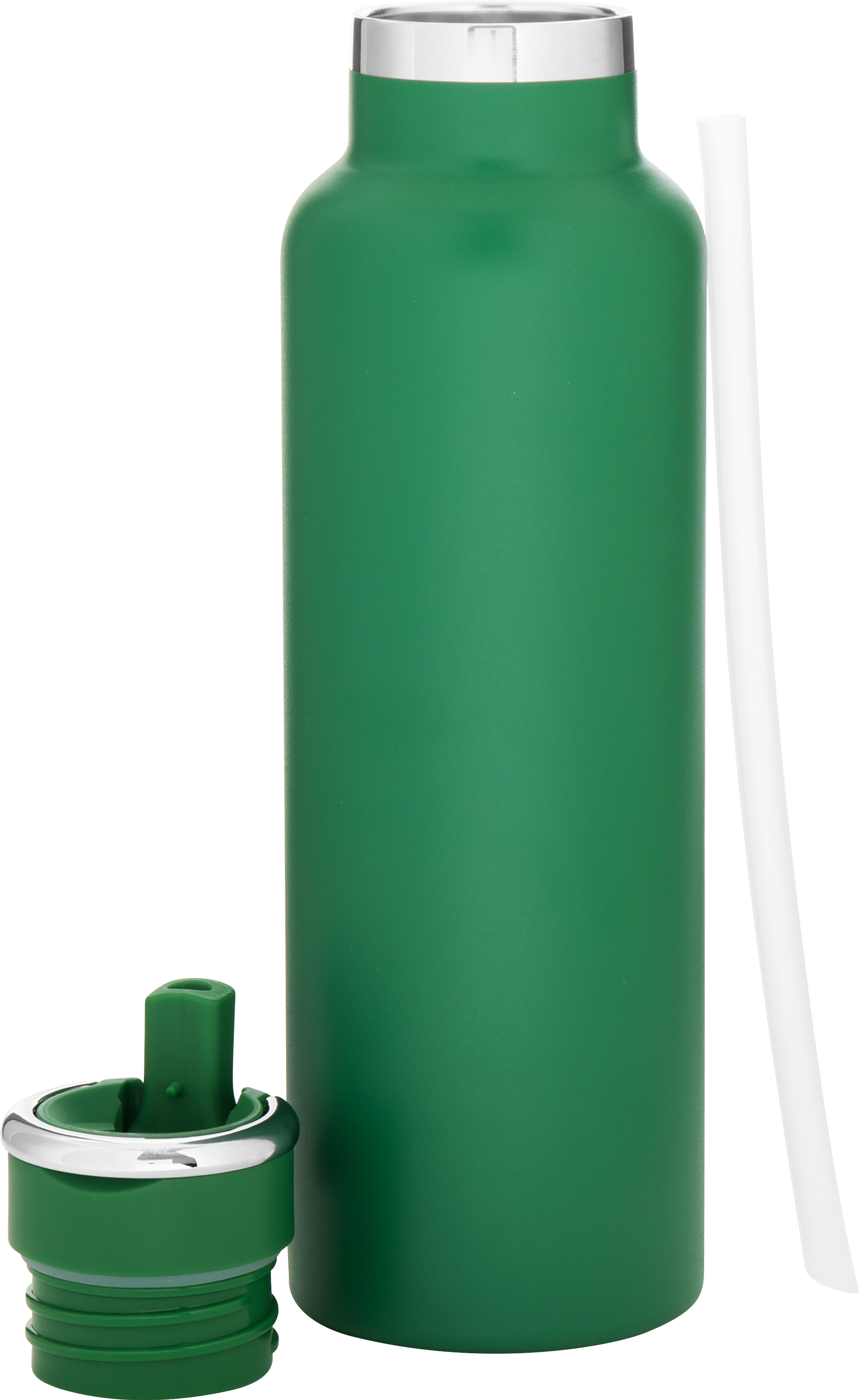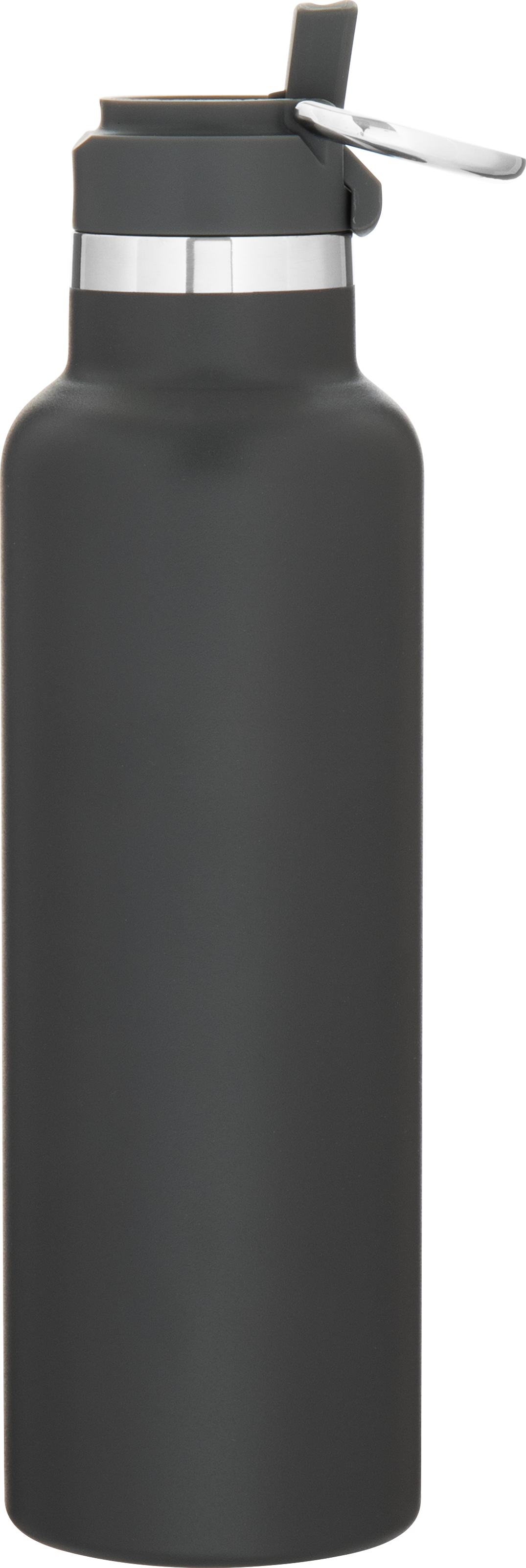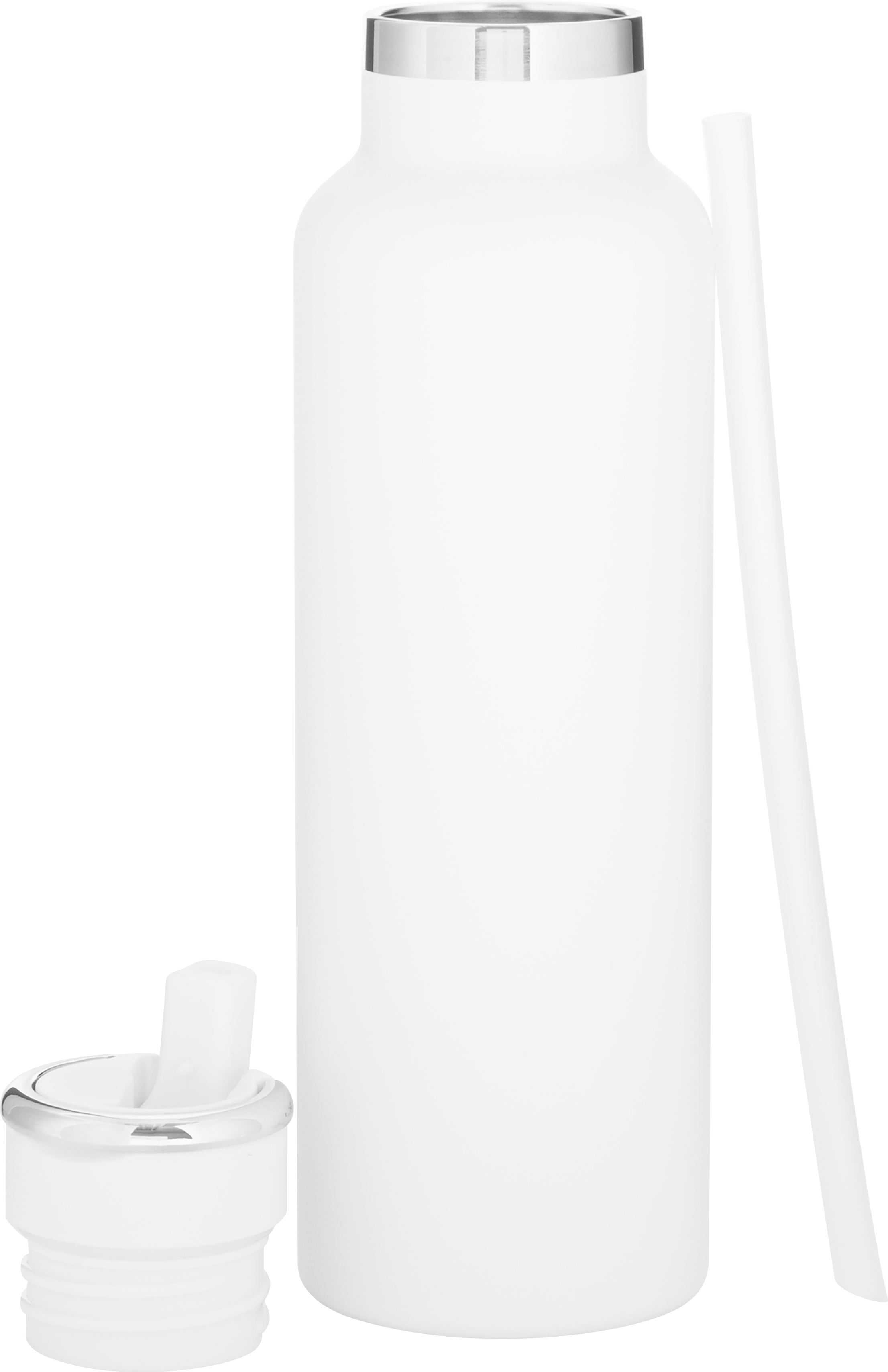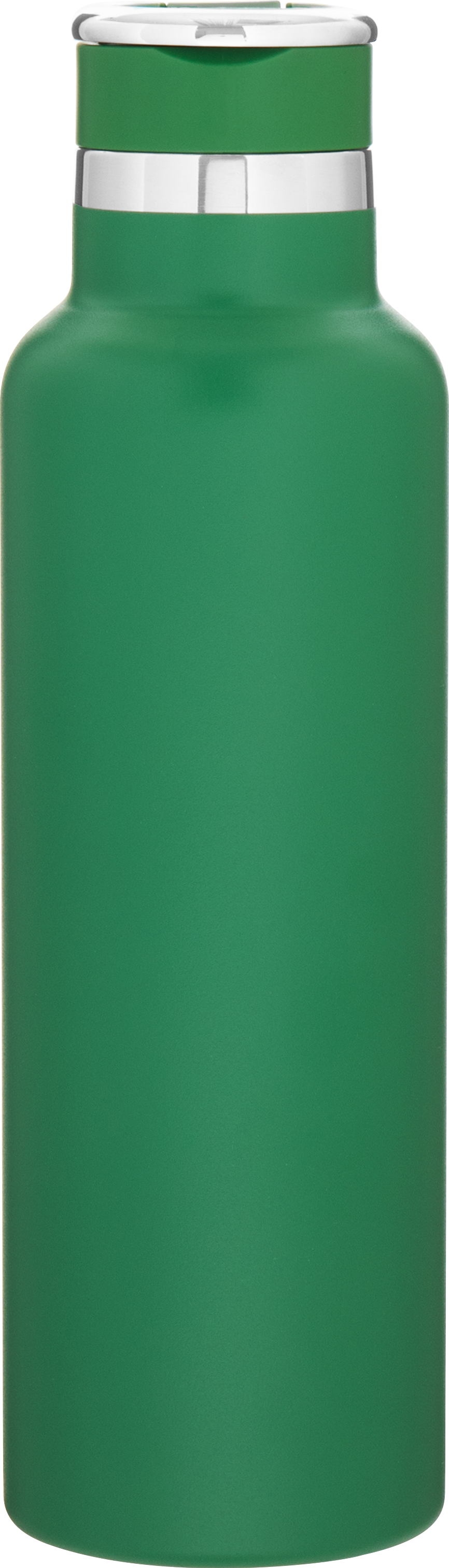 The h2go Juno 20 oz thermal bottle is built for stylish, on-the-go hydration. Made from durable double wall stainless steel with copper vacuum insulation, it keeps your drinks cold for hours. A threaded lid with a flip-up spout and straw offers easy access, while the zinc carrying handle adds strength and portability. The stainless steel rim adds a polished touch, and the powder coated finish completes the look with durability and grip.