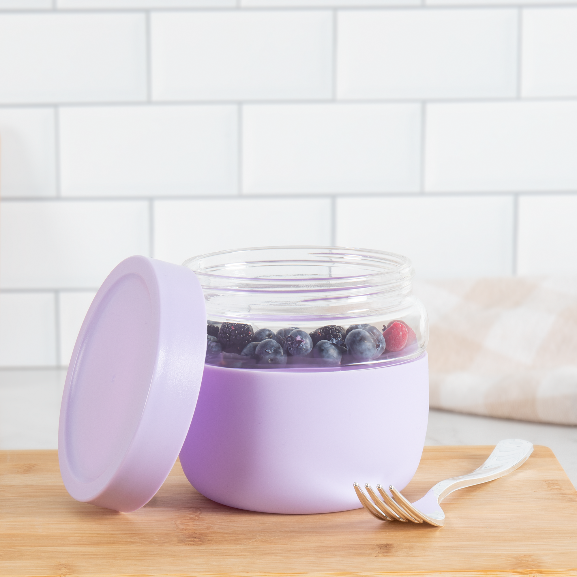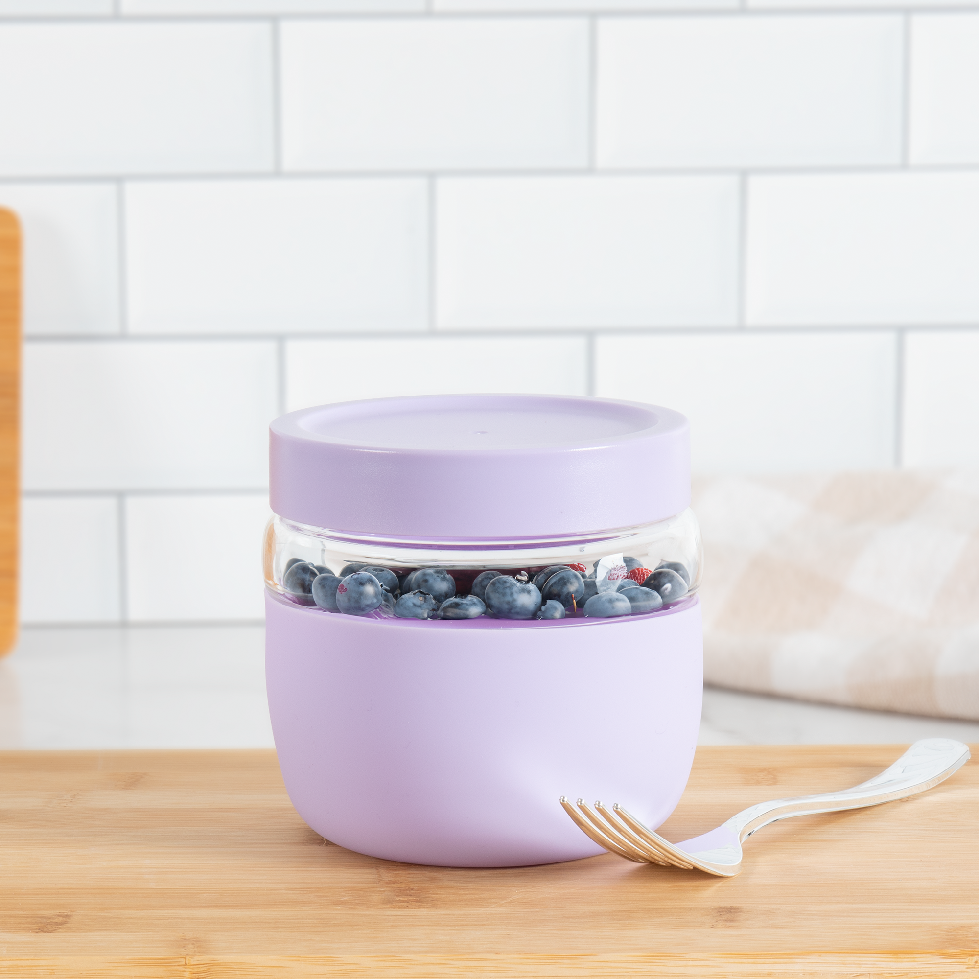 The Graze 22 oz glass container blends clean design with everyday function. Made from durable borosilicate glass, it features a matching threaded lid and a protective sleeve for secure handling. Ideal for hot or cold foods, it’s perfect for snacks, leftovers, or on-the-go meals—stylish enough to leave on your desk or counter.