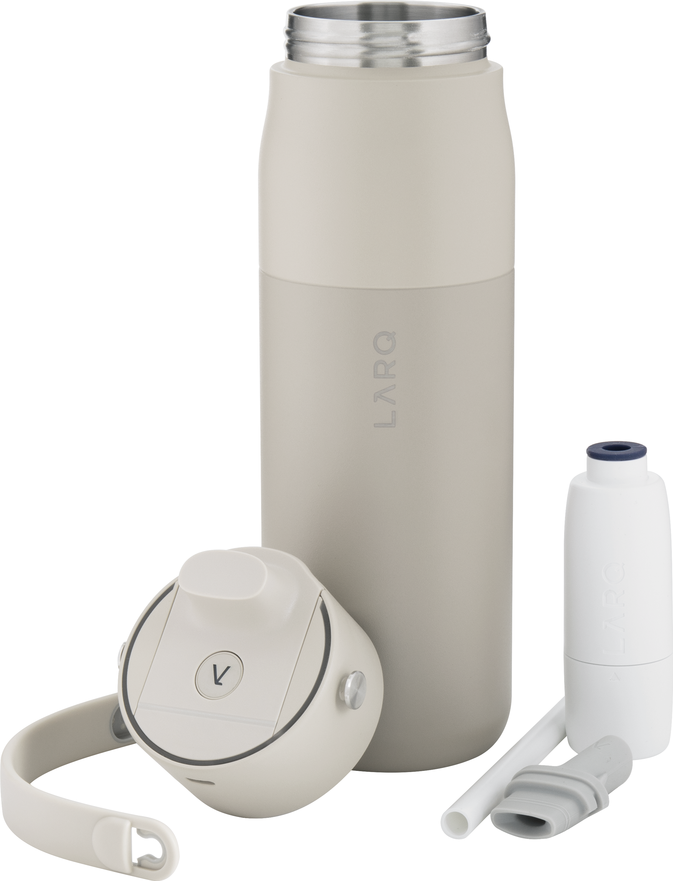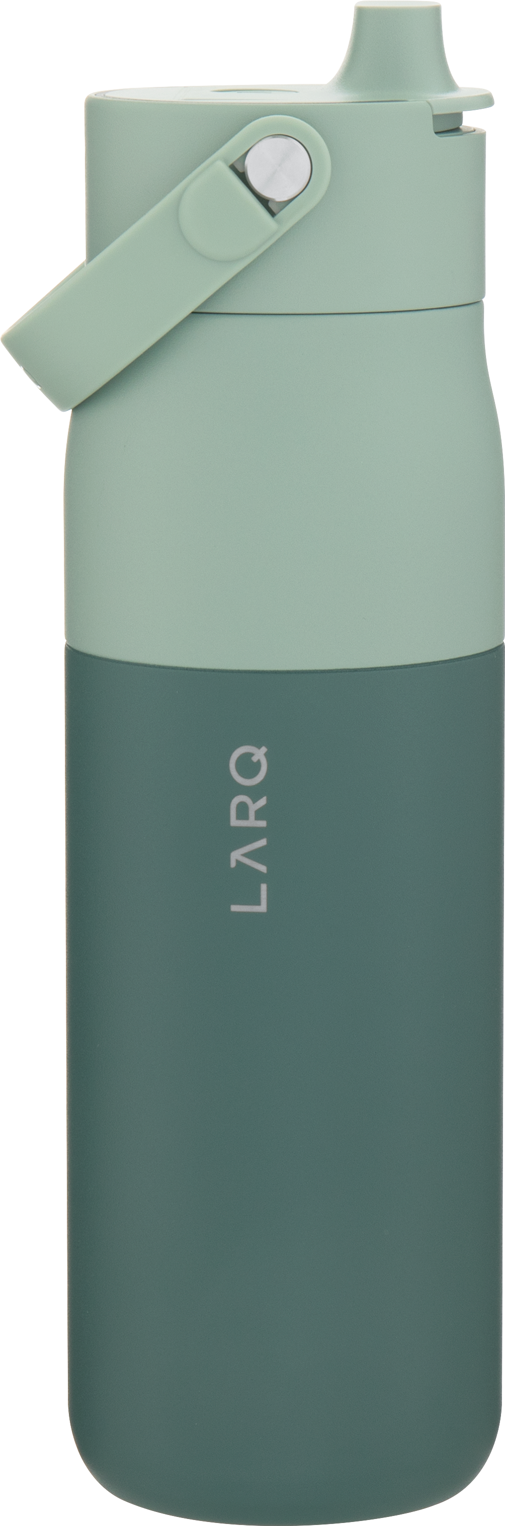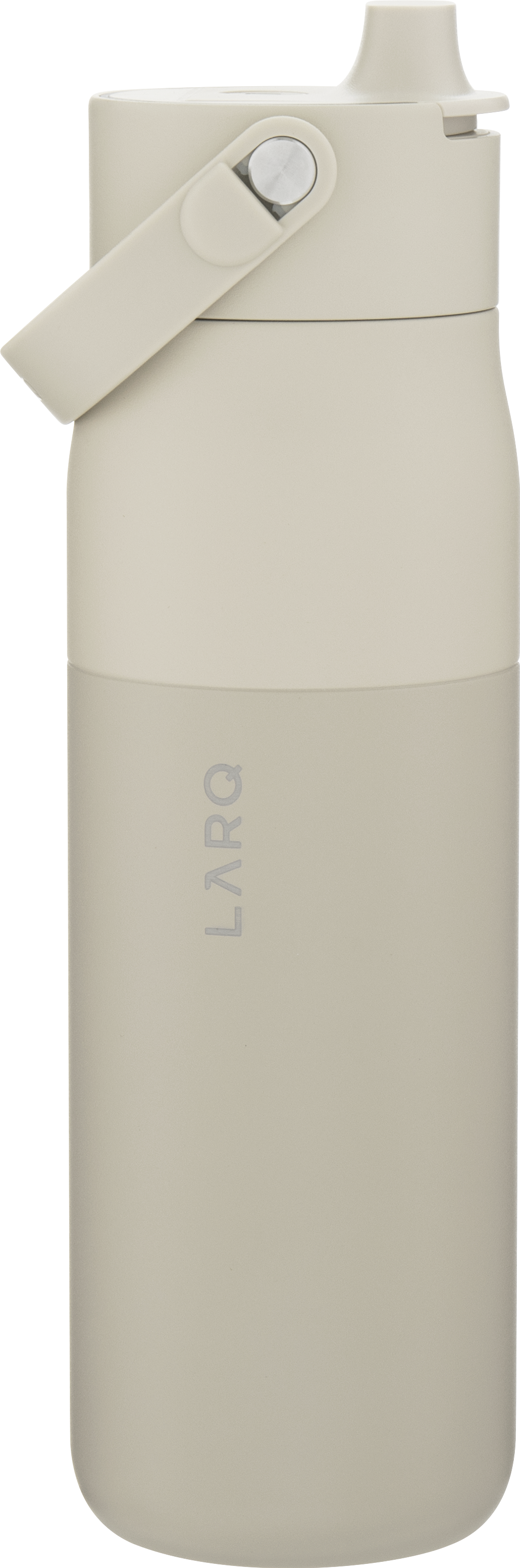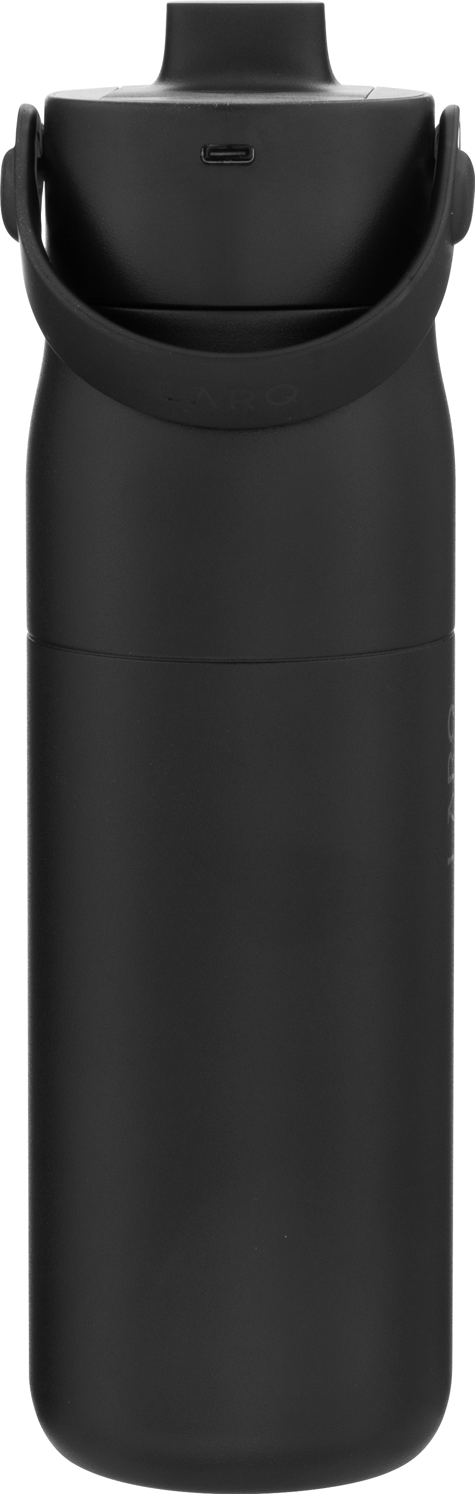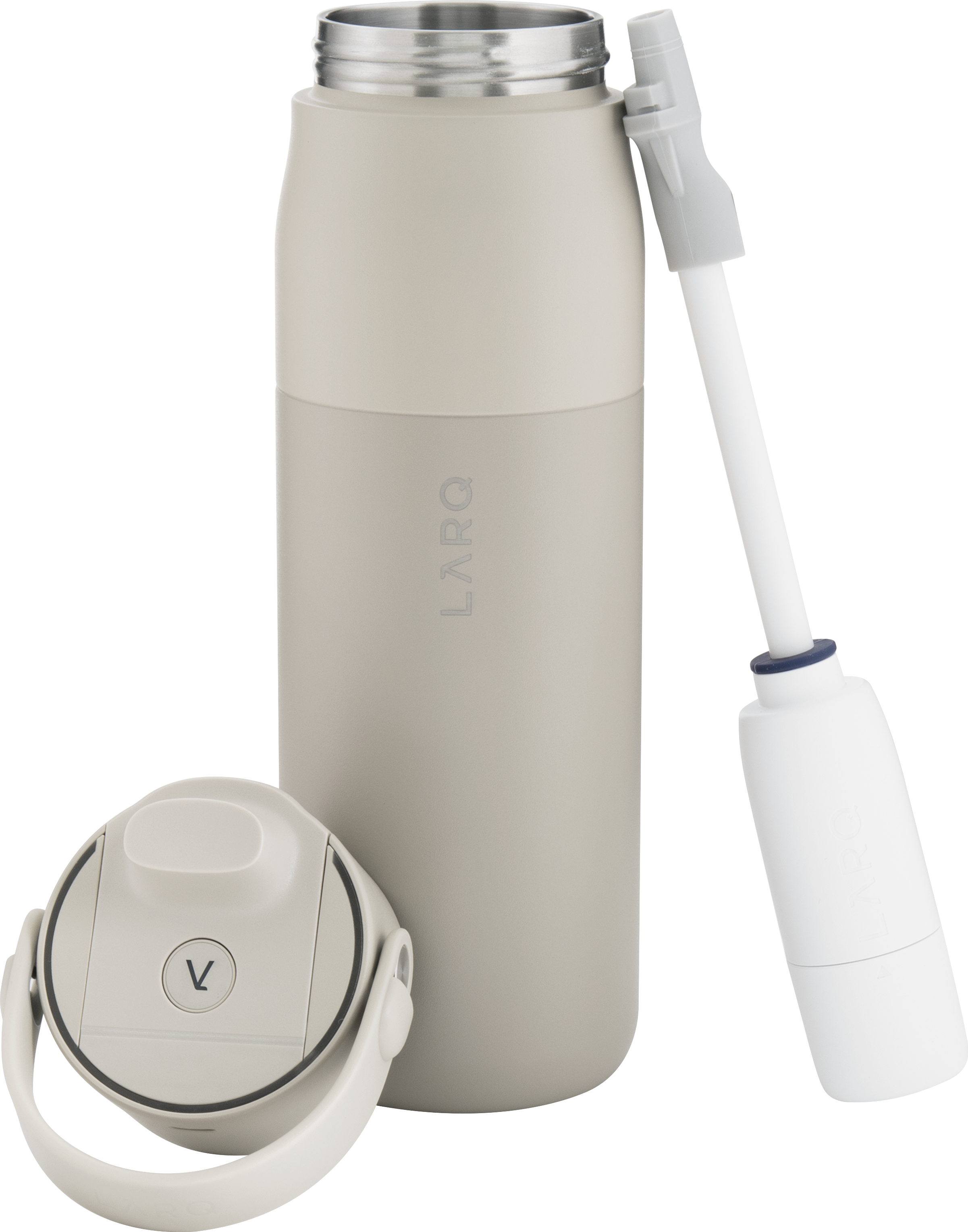 The LARQ PureVis 2 23 oz bottle redefines clean drinking on the go. Crafted from premium electropolished 18/8 stainless steel with double wall construction and vacuum insulation, it keeps beverages cold for hours. It features a threaded lid with a swig top cap, an inner straw with a silicone holder, and a soft removable carrying handle for easy transport. Powered by 280nm PureVis™ UV-C LED technology and a Nano Zero filtration system, it neutralizes bacteria and improves taste with every sip. Finished with a durable powder coated exterior, this smart bottle combines innovation, function, and style.