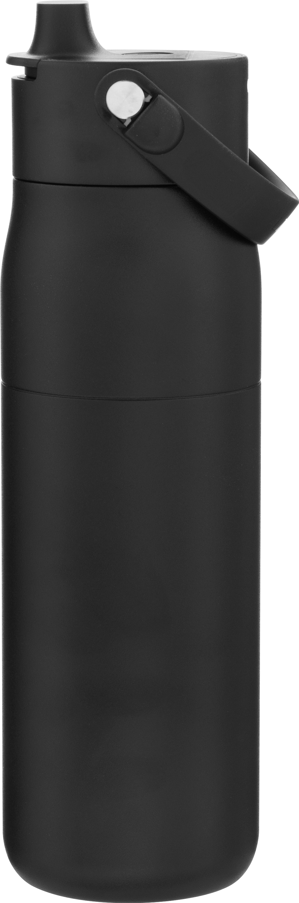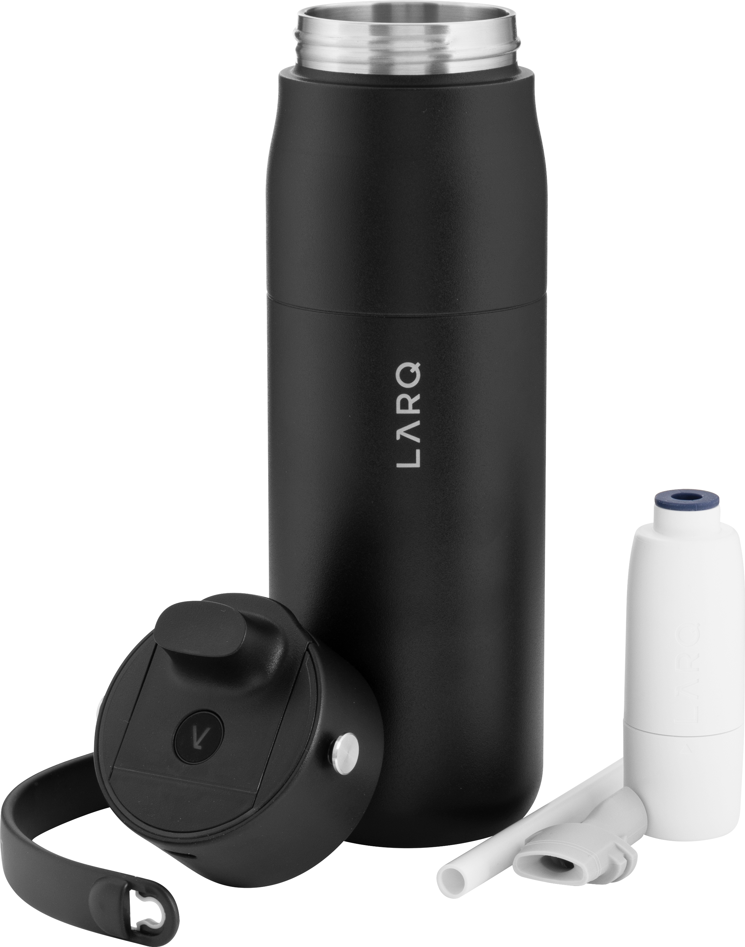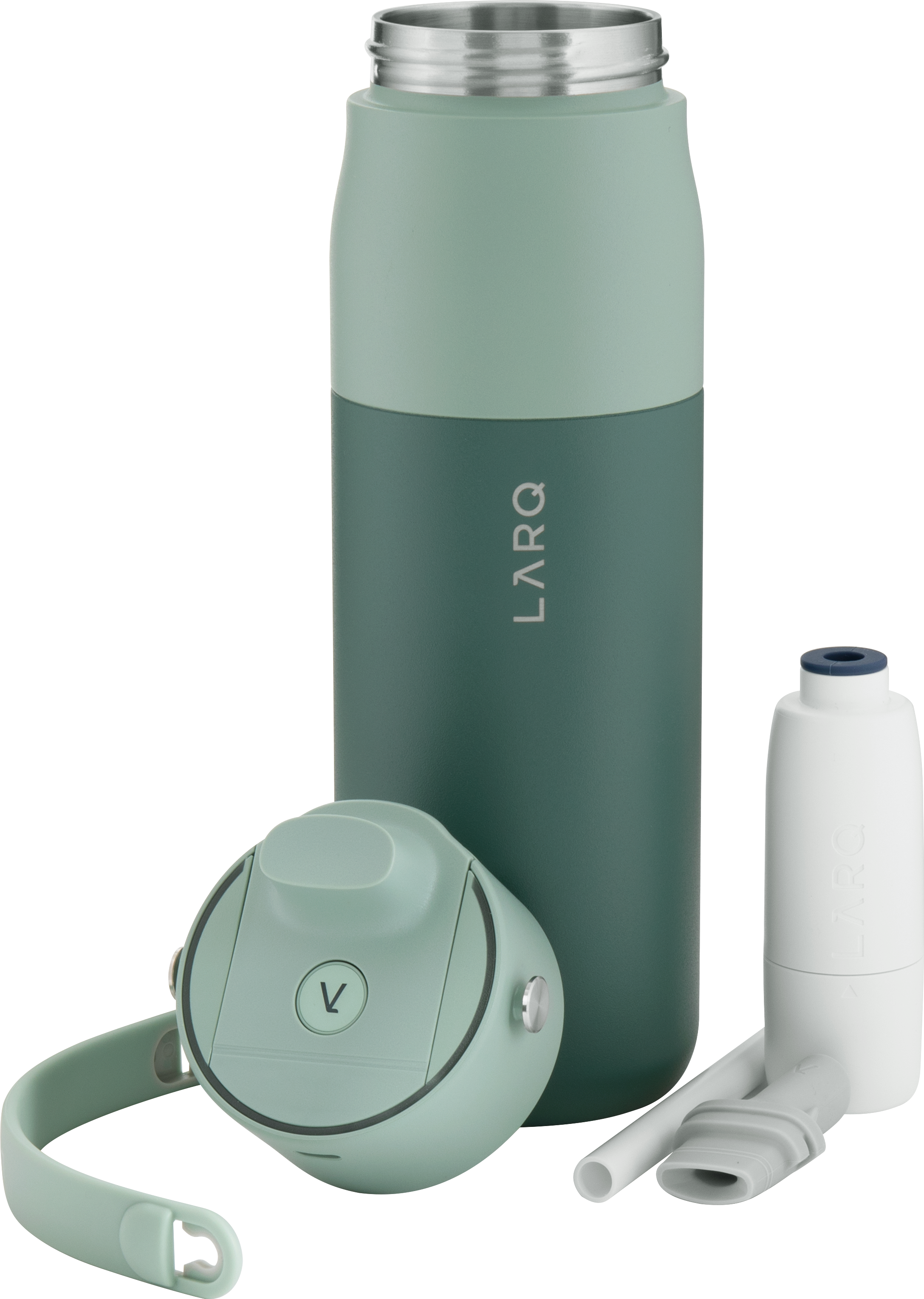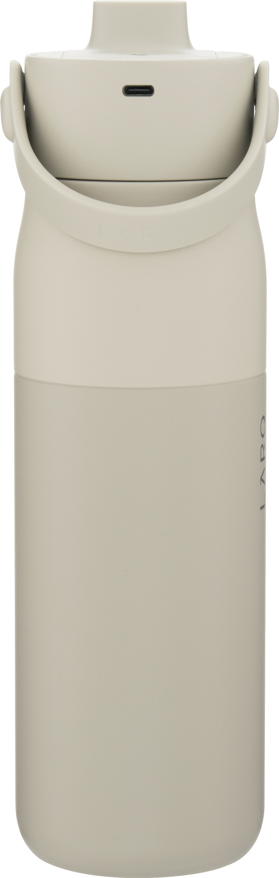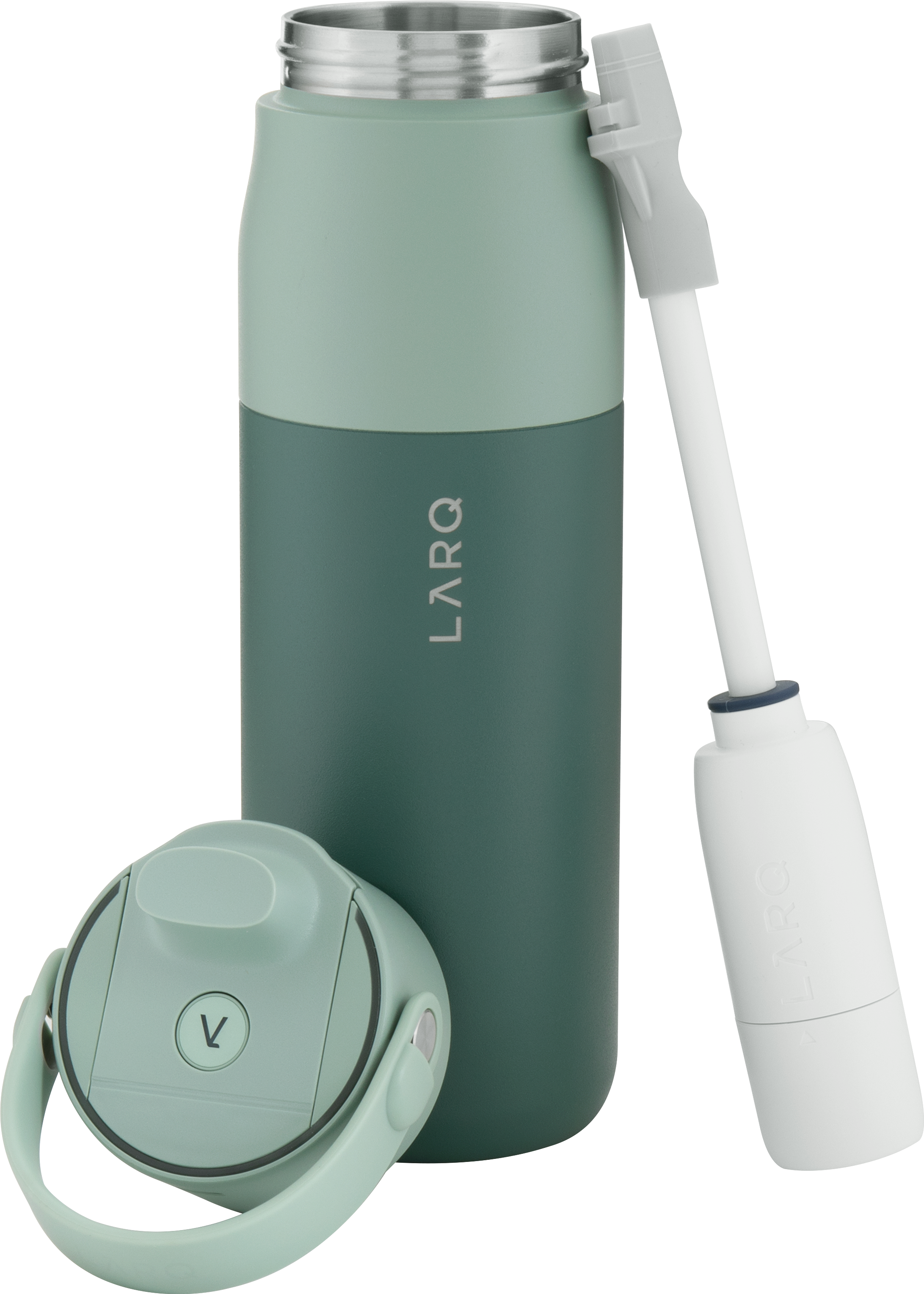 The LARQ PureVis 2 23 oz bottle redefines clean drinking on the go. Crafted from premium electropolished 18/8 stainless steel with double wall construction and vacuum insulation, it keeps beverages cold for hours. It features a threaded lid with a swig top cap, an inner straw with a silicone holder, and a soft removable carrying handle for easy transport. Powered by 280nm PureVis™ UV-C LED technology and a Nano Zero filtration system, it neutralizes bacteria and improves taste with every sip. Finished with a durable powder coated exterior, this smart bottle combines innovation, function, and style.