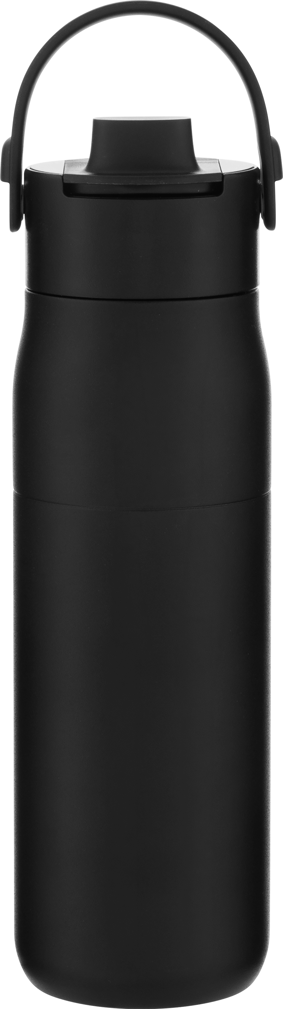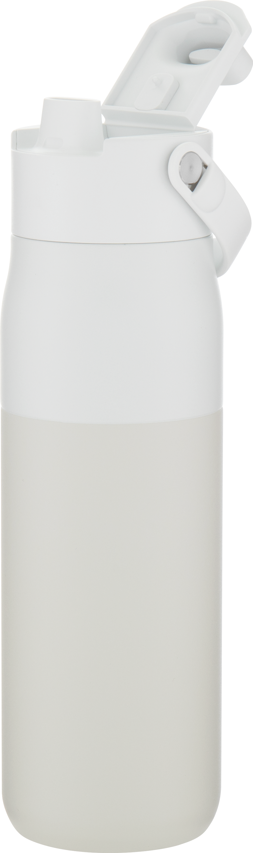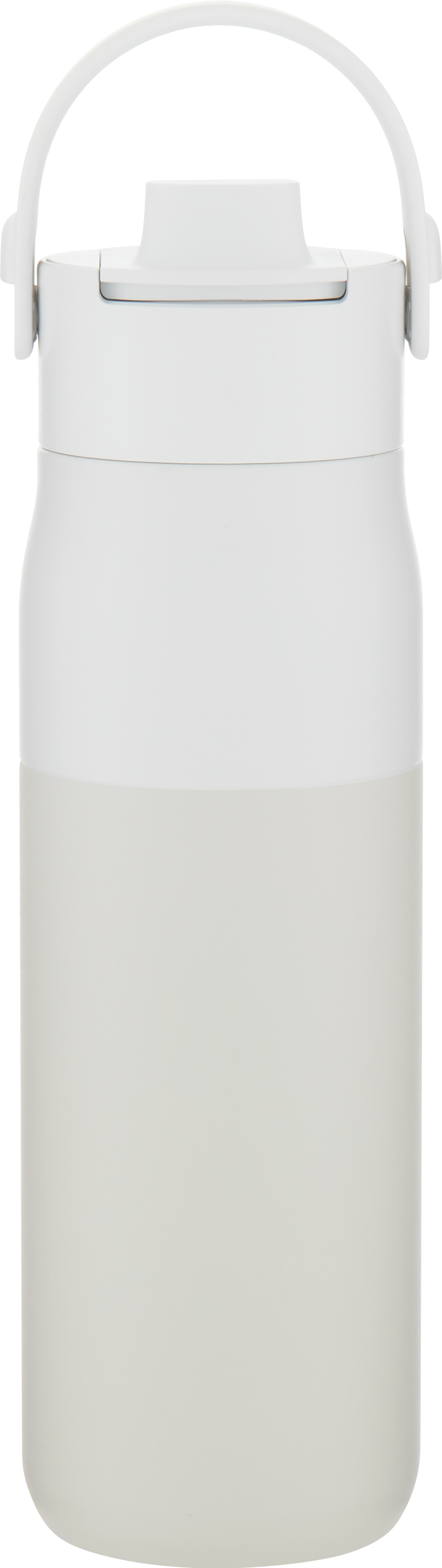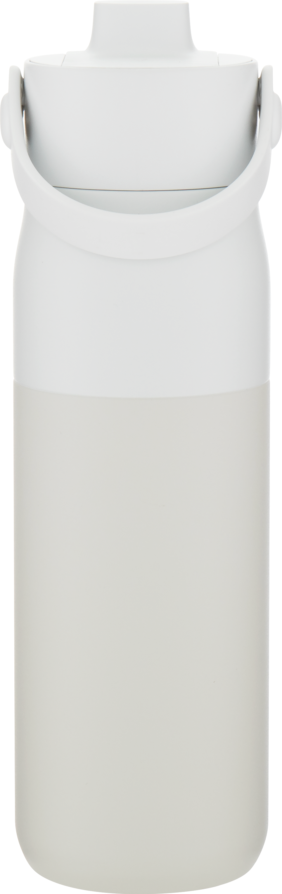 Stay effortlessly hydrated with this 23 oz premium thermal bottle. Made from electropolished 18/8 stainless steel, it features double-wall vacuum insulation to keep drinks cold for hours. The threaded lid includes a swig top cap and inner straw with a silicone holder for smooth, splash-free sipping. A soft, removable carrying handle and powder coated finish add comfort and grip—making this bottle a reliable companion for wherever the day takes you.