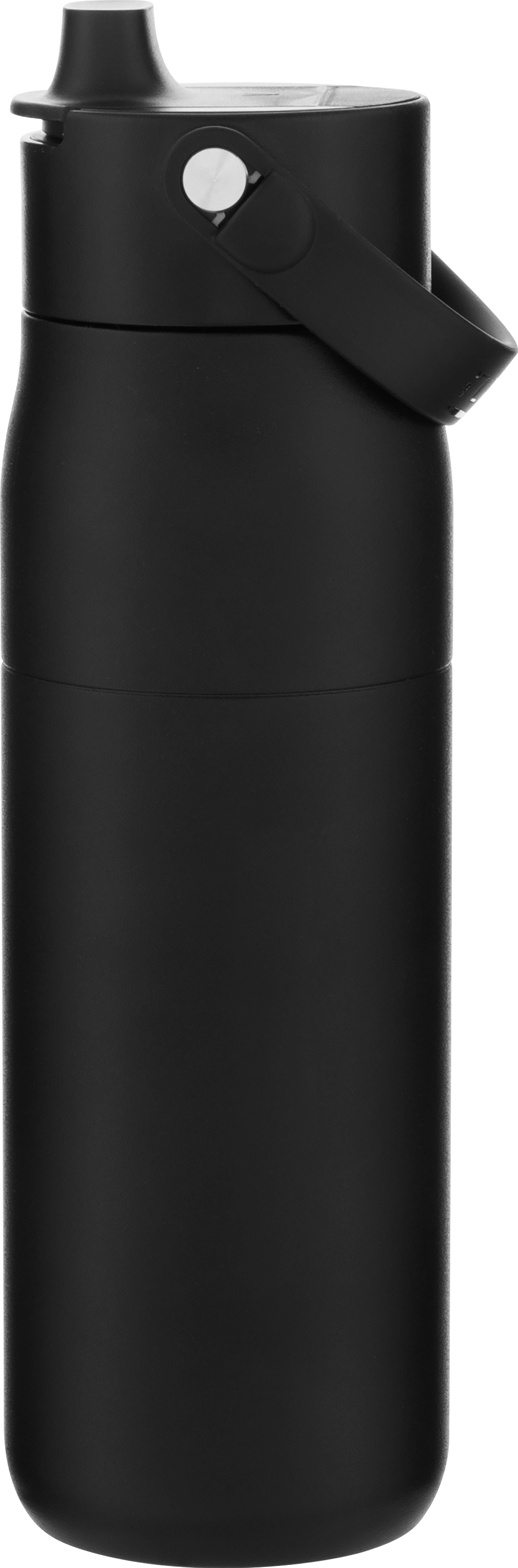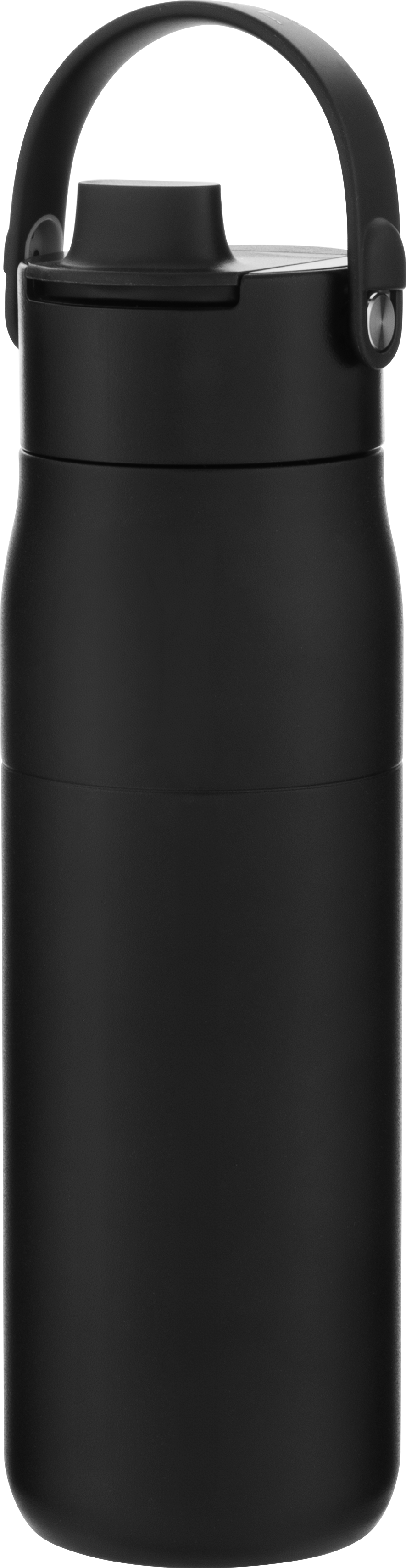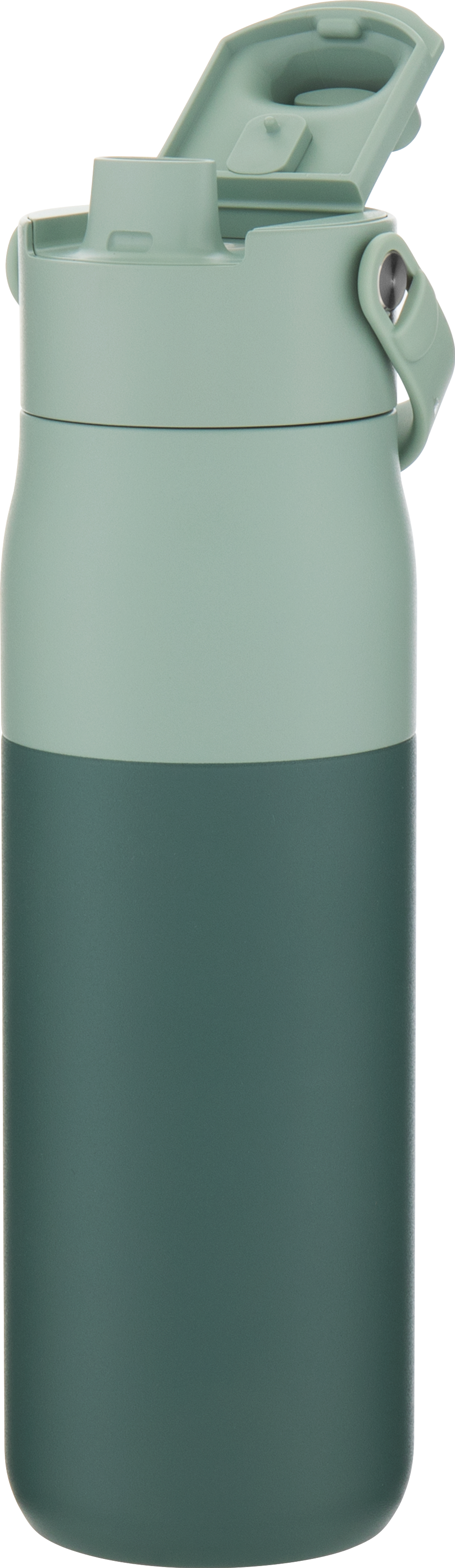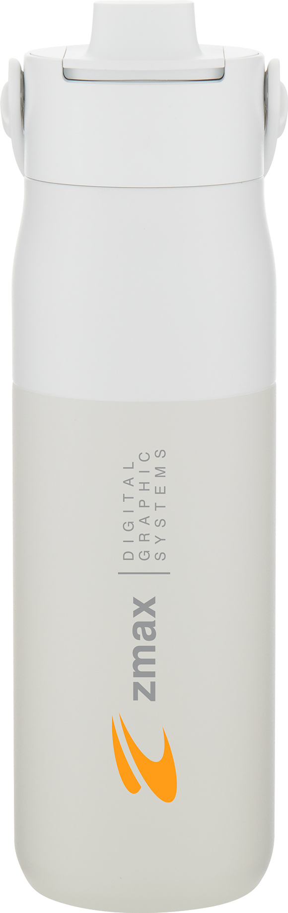 Stay effortlessly hydrated with this 23 oz premium thermal bottle. Made from electropolished 18/8 stainless steel, it features double-wall vacuum insulation to keep drinks cold for hours. The threaded lid includes a swig top cap and inner straw with a silicone holder for smooth, splash-free sipping. A soft, removable carrying handle and powder coated finish add comfort and grip—making this bottle a reliable companion for wherever the day takes you.