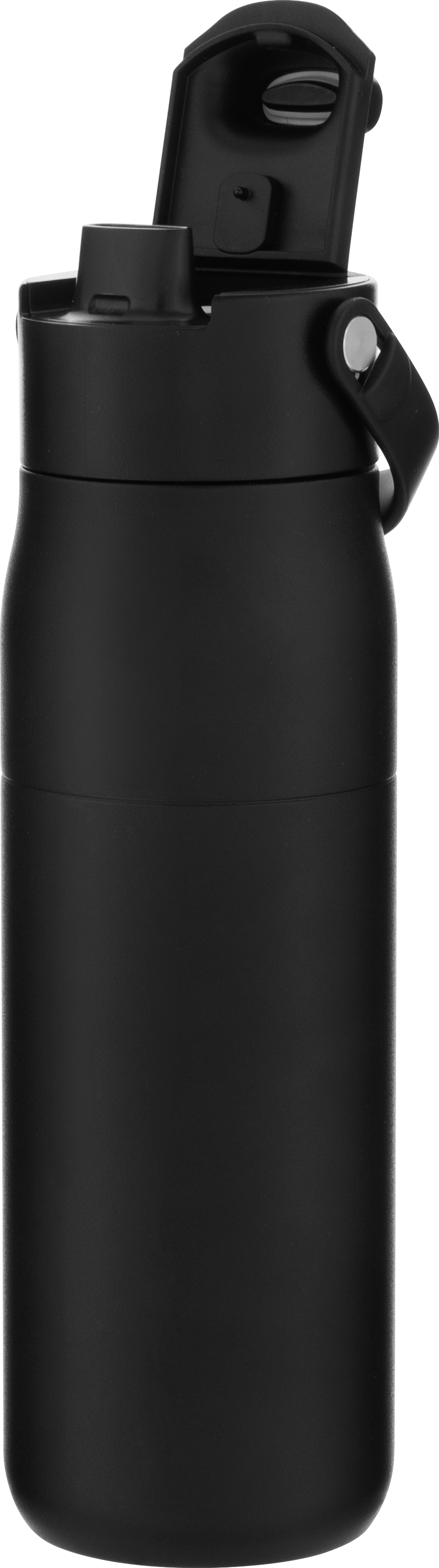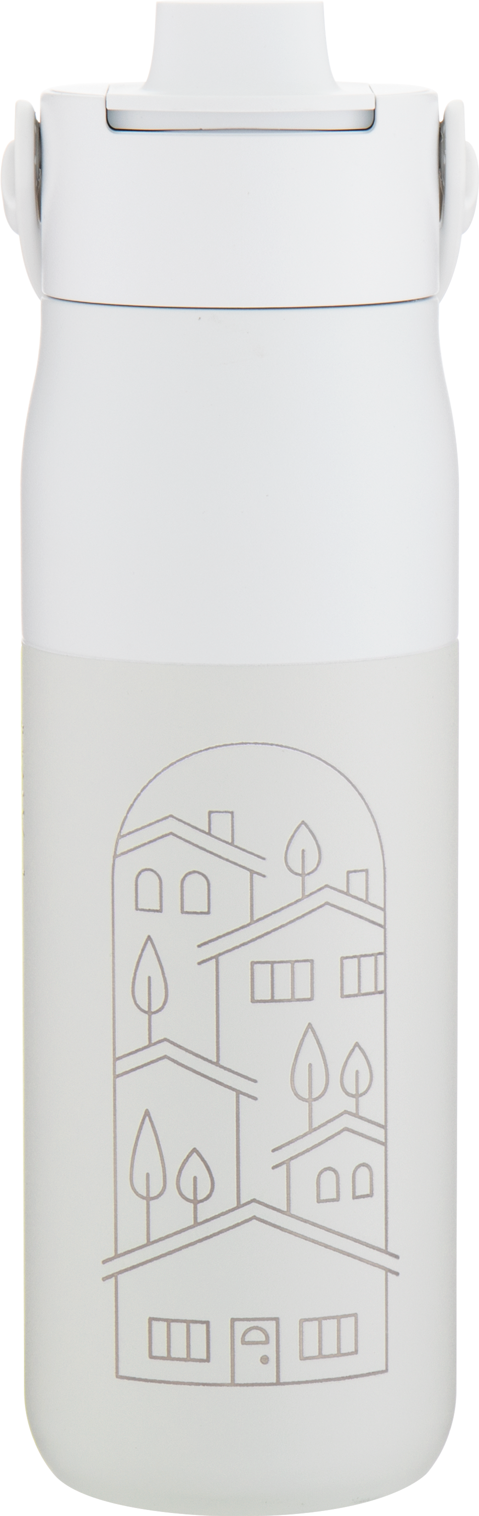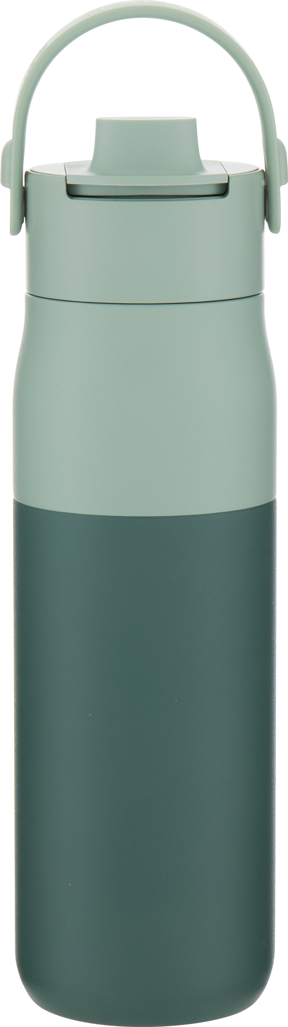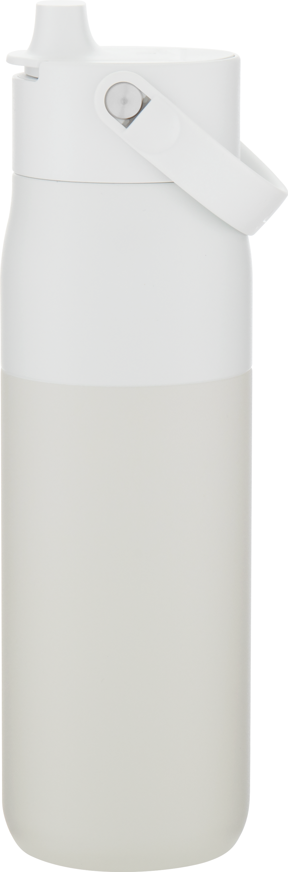 Stay effortlessly hydrated with this 23 oz premium thermal bottle. Made from electropolished 18/8 stainless steel, it features double-wall vacuum insulation to keep drinks cold for hours. The threaded lid includes a swig top cap and inner straw with a silicone holder for smooth, splash-free sipping. A soft, removable carrying handle and powder coated finish add comfort and grip—making this bottle a reliable companion for wherever the day takes you.