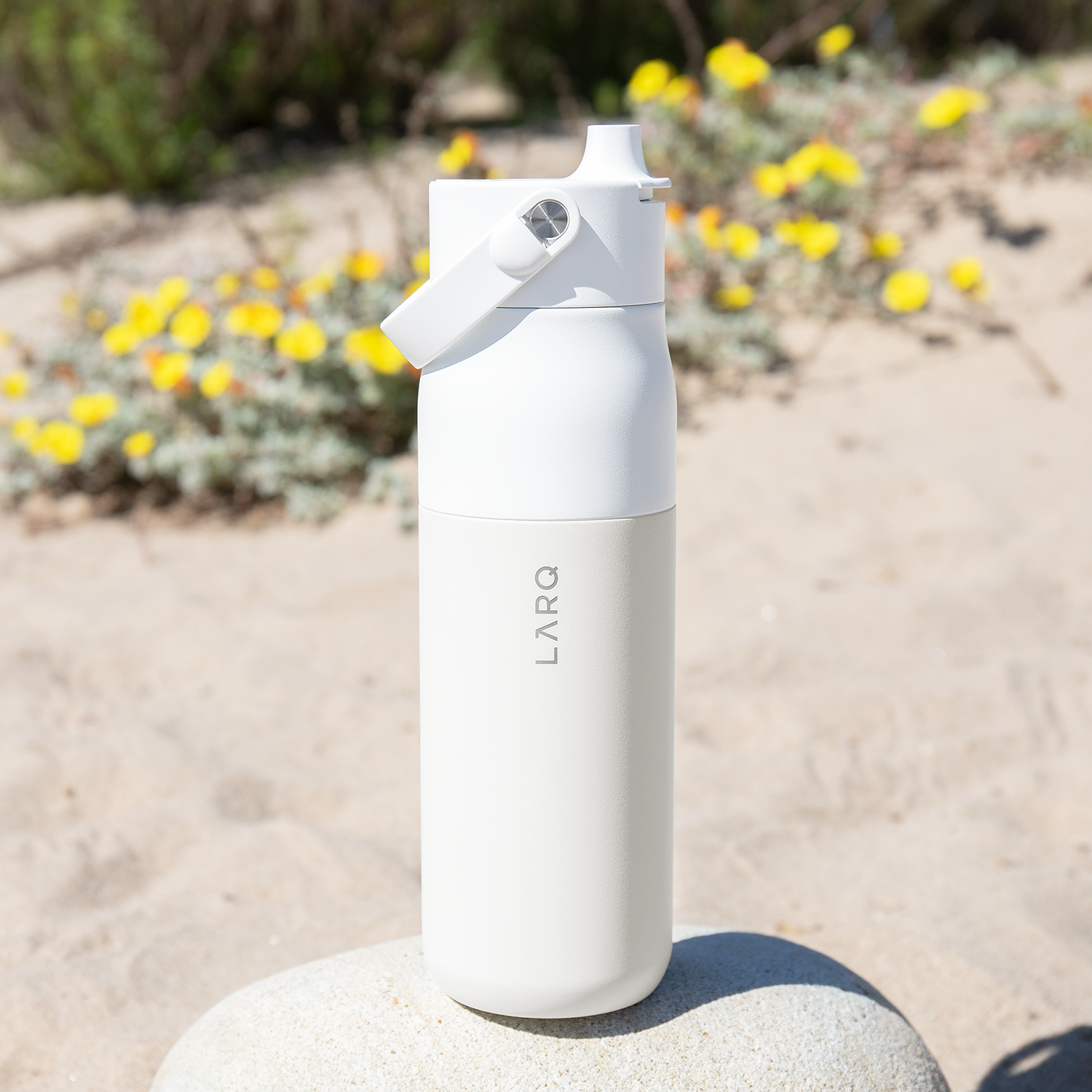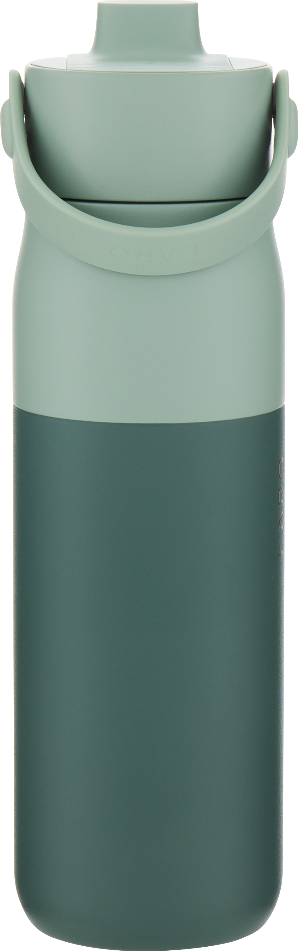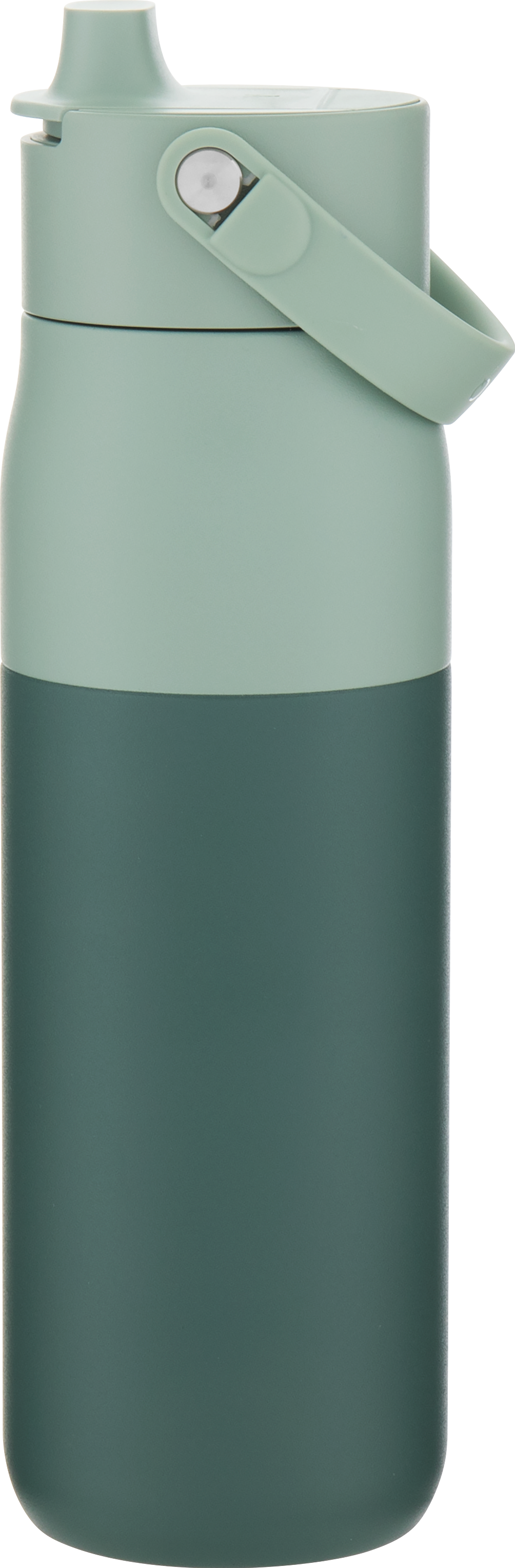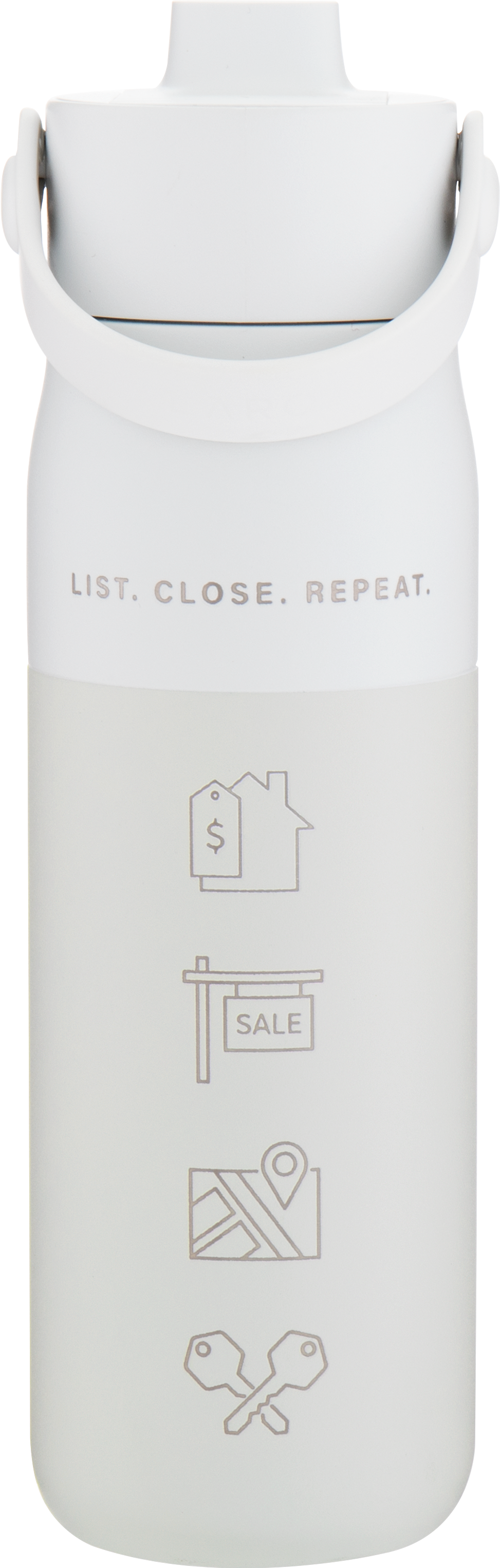 Stay effortlessly hydrated with this 23 oz premium thermal bottle. Made from electropolished 18/8 stainless steel, it features double-wall vacuum insulation to keep drinks cold for hours. The threaded lid includes a swig top cap and inner straw with a silicone holder for smooth, splash-free sipping. A soft, removable carrying handle and powder coated finish add comfort and grip—making this bottle a reliable companion for wherever the day takes you.