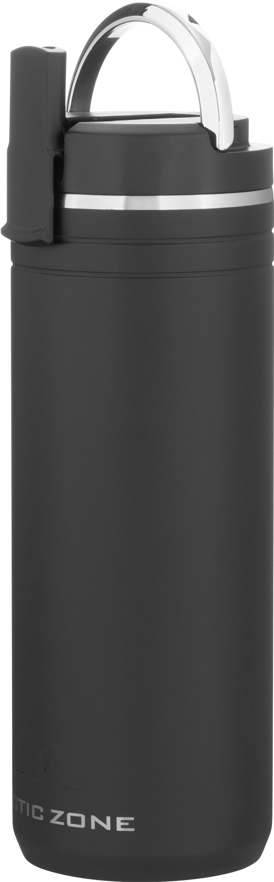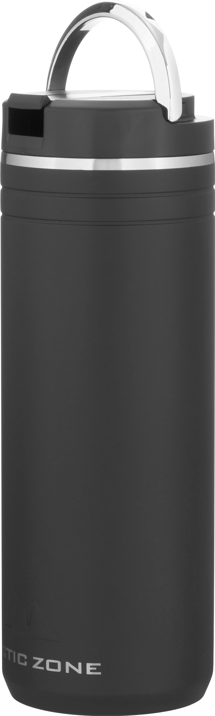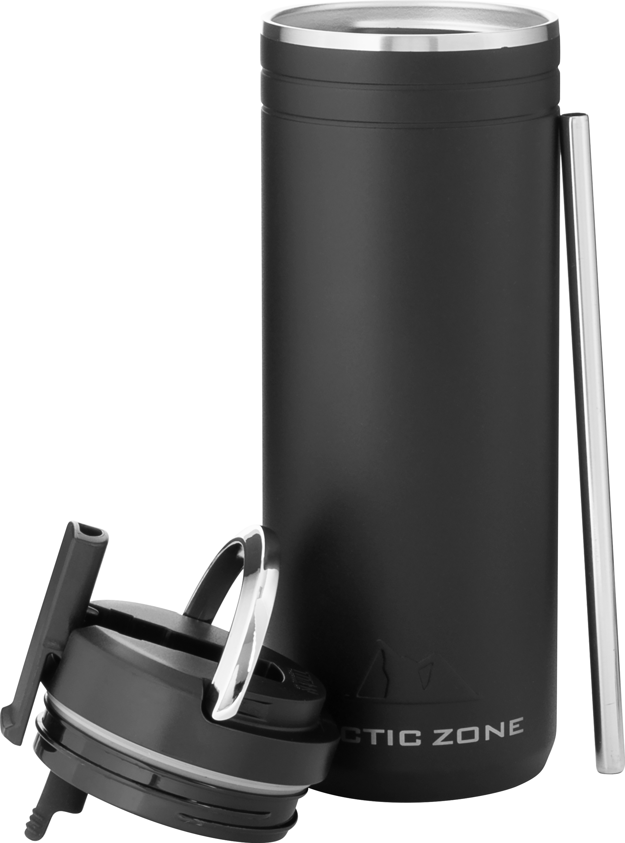 The Arctic Zone® Titan Thermal HP 24 oz tumbler is built for performance and convenience. Constructed from durable 18/8 stainless steel with double wall construction and copper vacuum insulation, it keeps beverages hot or cold for hours. It features a threaded lid with a flip-up spout, a built-in carrying handle, and a stainless steel rim for added durability. Finished with a powder coated exterior, this tumbler is ready for everyday hydration, workouts, or travel.