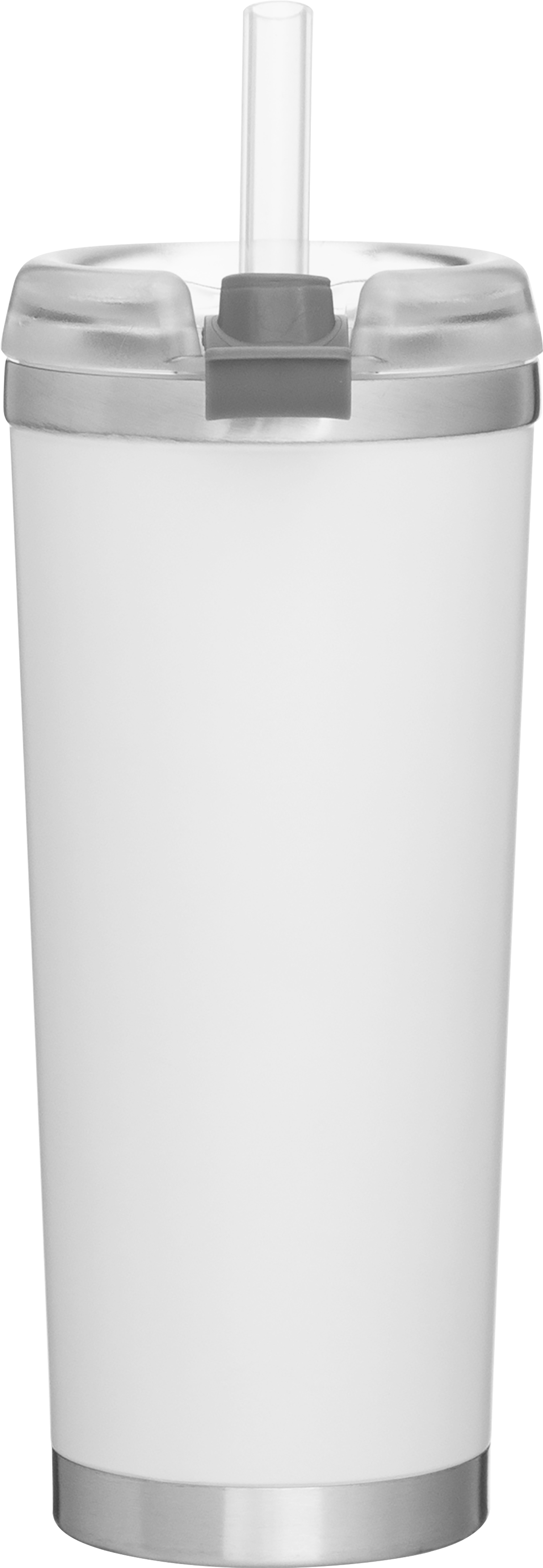 The Brooklyn 24 oz thermal tumbler is made for versatile, all-day sipping with a premium look and feel. Constructed from double wall 18/8 stainless steel with copper vacuum insulation, it keeps drinks hot or cold for hours. It features a threaded Eastman Tritan™ lid with a snap closure and dual-use opening for sipping or using the flexible wide silicone straw. A stainless steel rim and base add durability and style, while the matte finish offers a modern touch and secure grip.