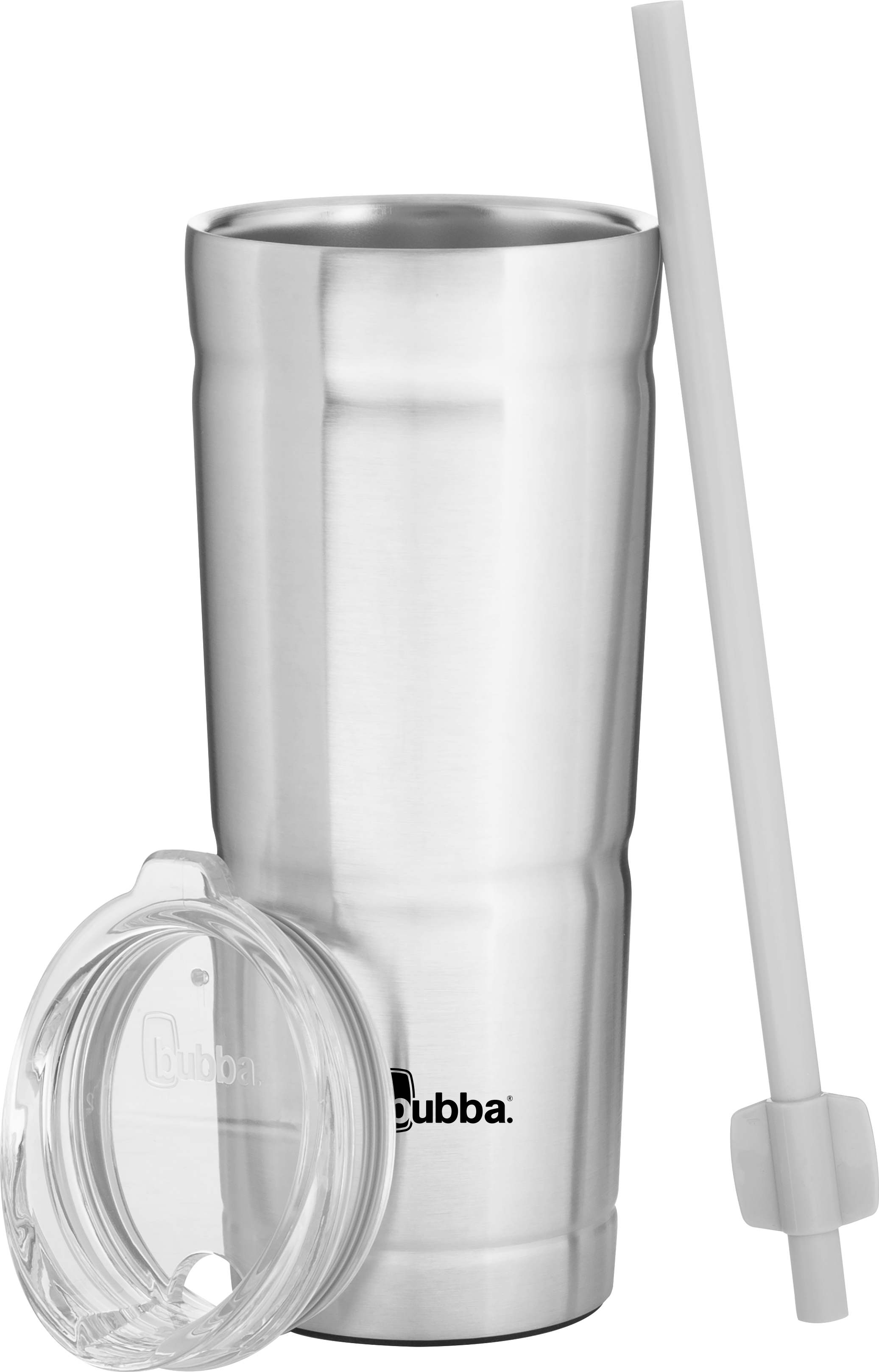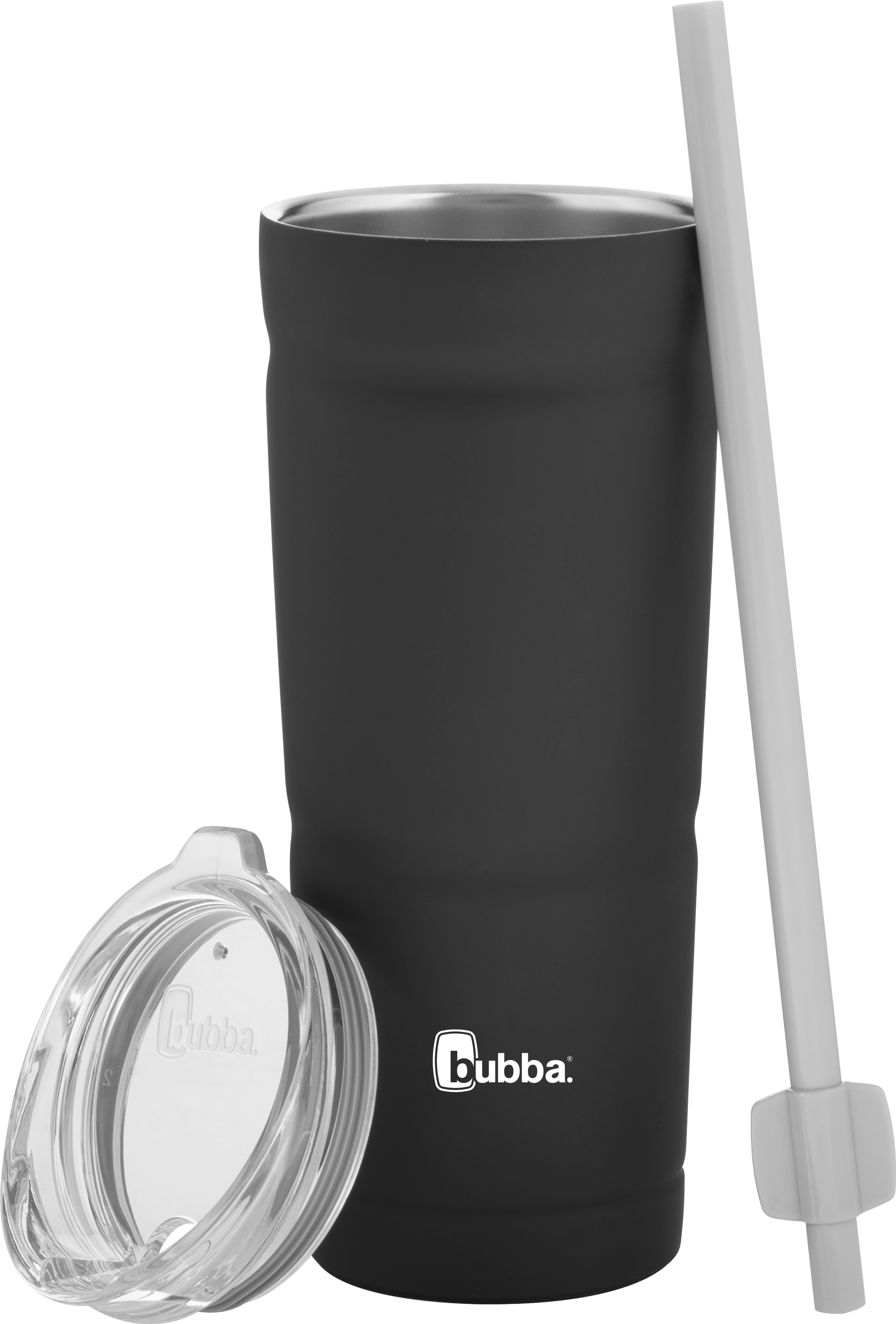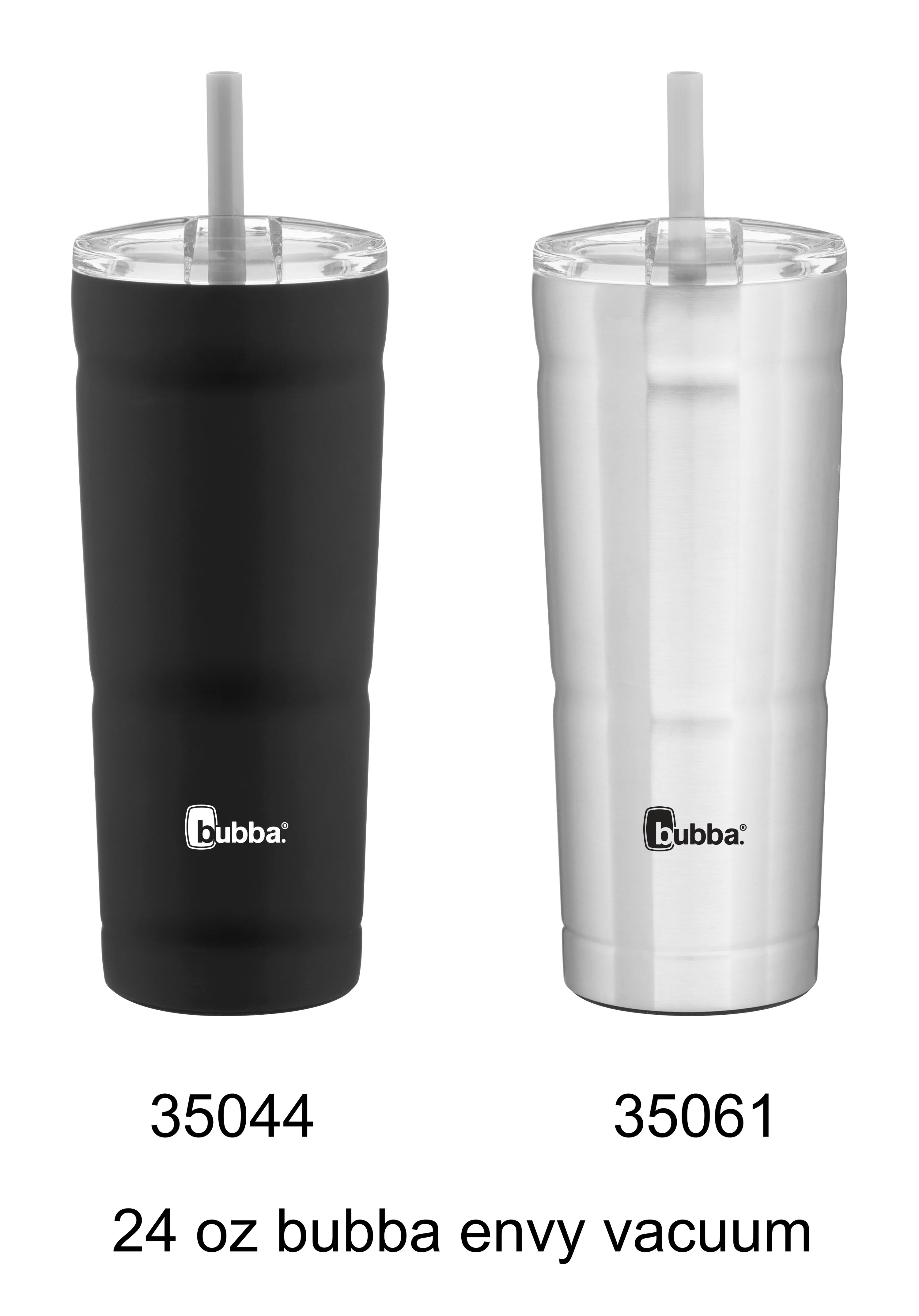 The Bubba Envy Vacuum 24 oz tumbler delivers reliable, on-the-go hydration with a soft-touch finish. Made from double wall stainless steel with vacuum insulation, it keeps drinks cold for hours. The clear push-on Eastman Tritan™ lid features a thumb tab and a dual-function sip/straw opening. It includes a straw with stopper to prevent spills, a silicone base pad for added grip, and a rubberized exterior for a comfortable, modern feel.