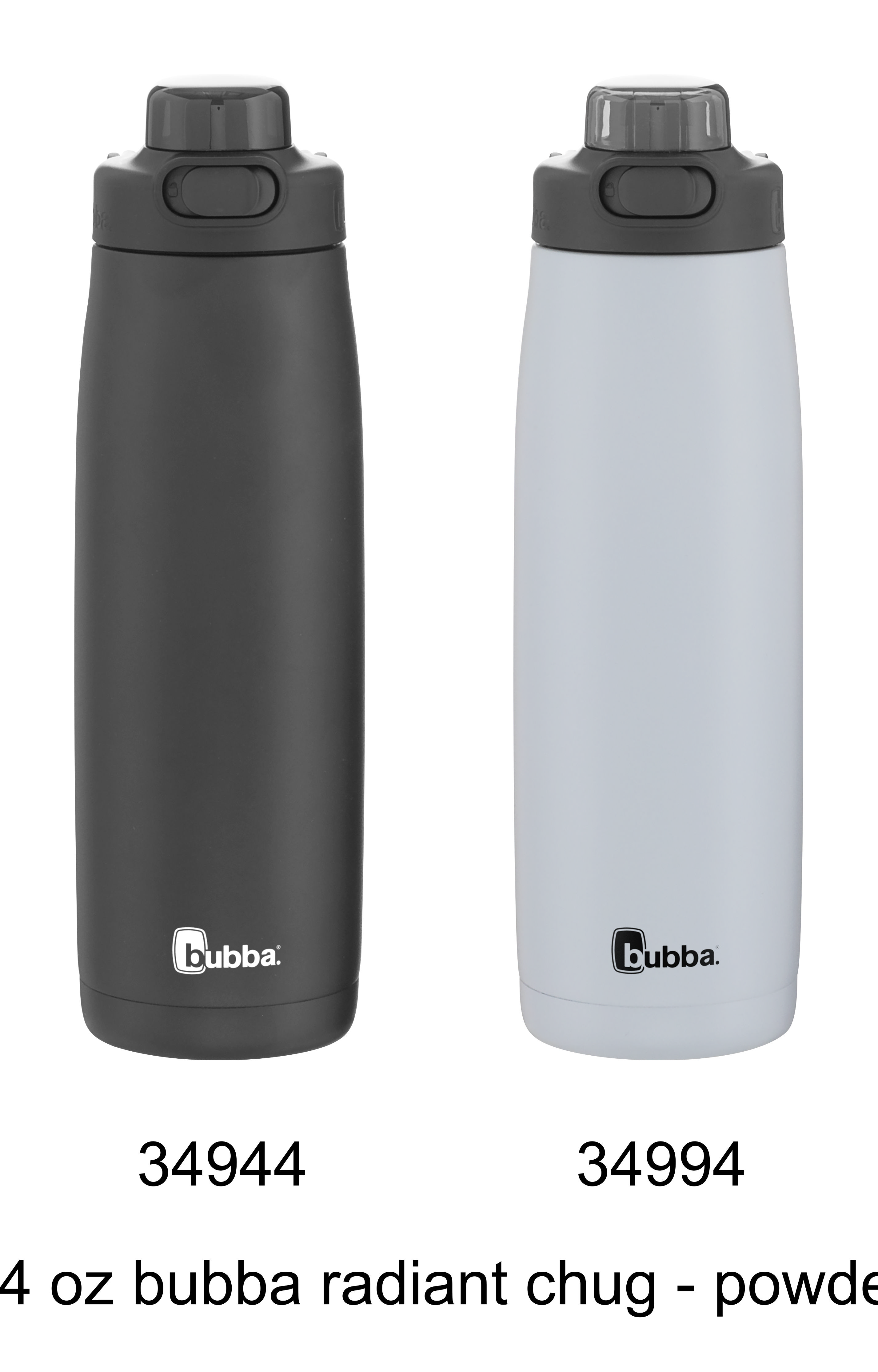 The Bubba Radiant Chug 24 oz thermal bottle is built for quick sips and long-lasting cold refreshment. Made from durable stainless steel with double-wall vacuum insulation, it keeps drinks chilled for hours. A threaded lid with push-button lock and spout cover helps prevent spills, while the wide sip opening makes on-the-go hydration easy. Finished with a sturdy carrying handle and a grippy powder coated finish, it’s ready for wherever the day takes you.