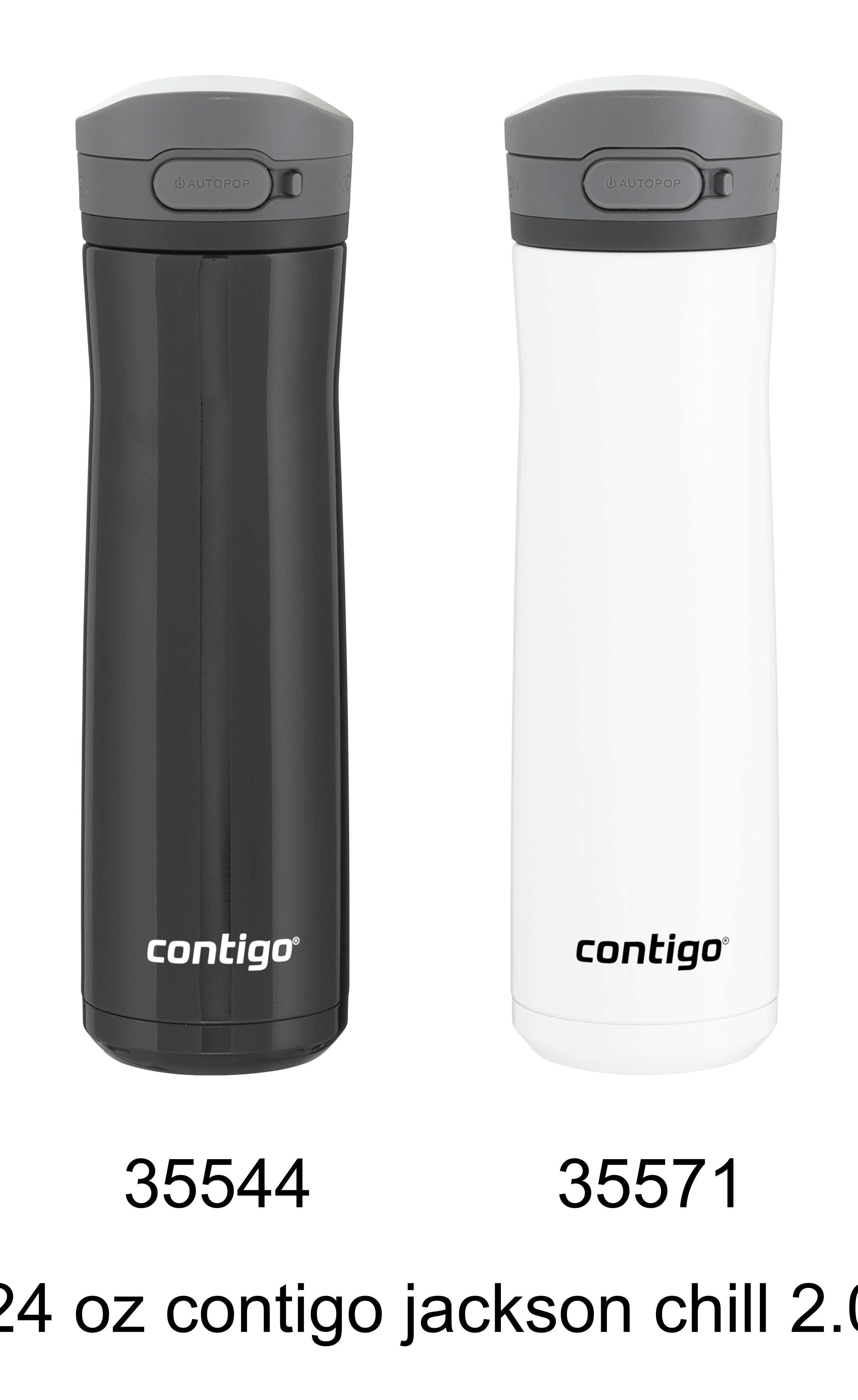 The Contigo Jackson Chill 2.0 24 oz bottle combines sleek design with serious chill power. Made from double-wall stainless steel with vacuum insulation, it keeps drinks cold for hours. The threaded Autopop® lid features a push-button locking mechanism, wide sip opening, and spout cover for quick, clean hydration. A built-in carrying handle and glossy finish add convenience and style for life on the go.