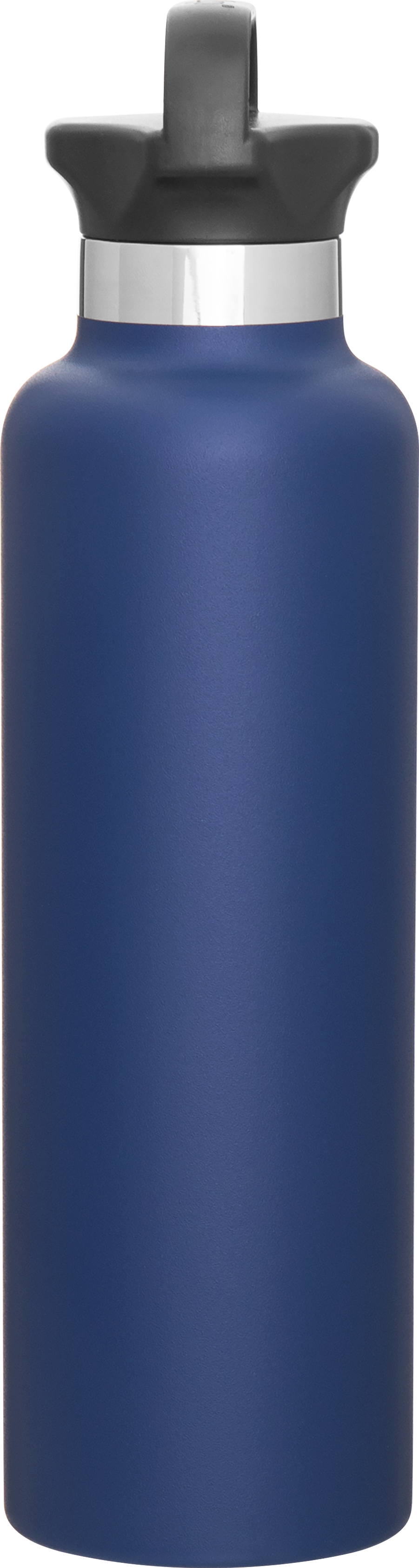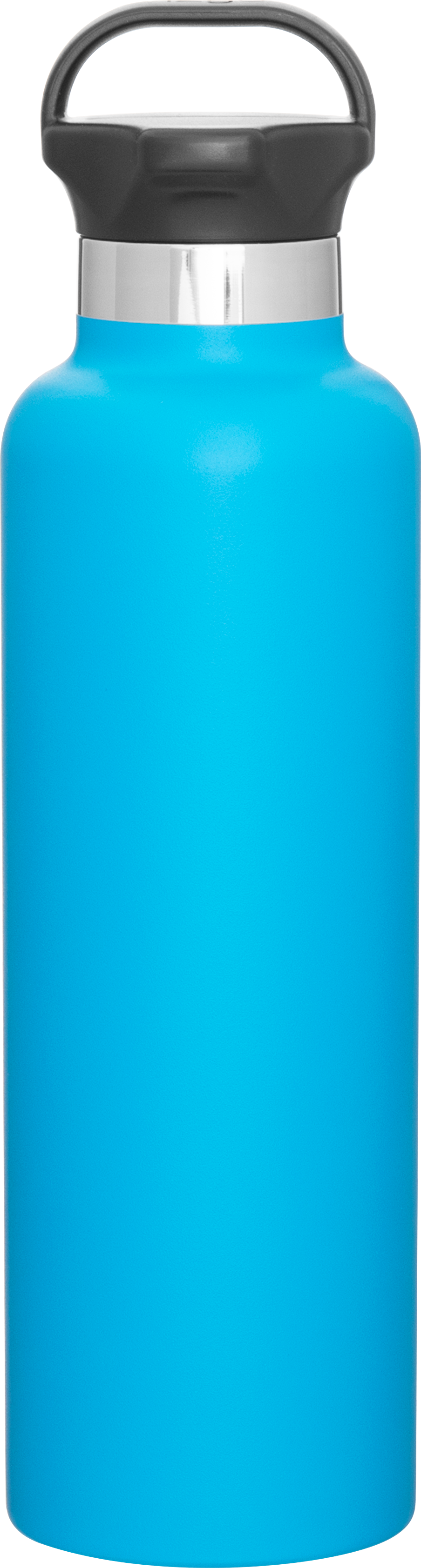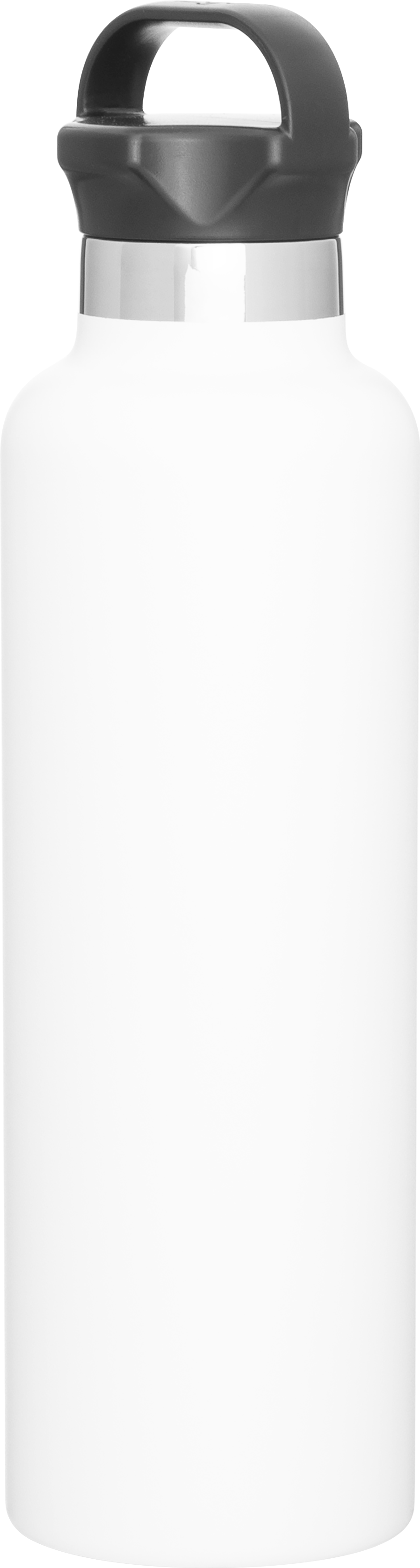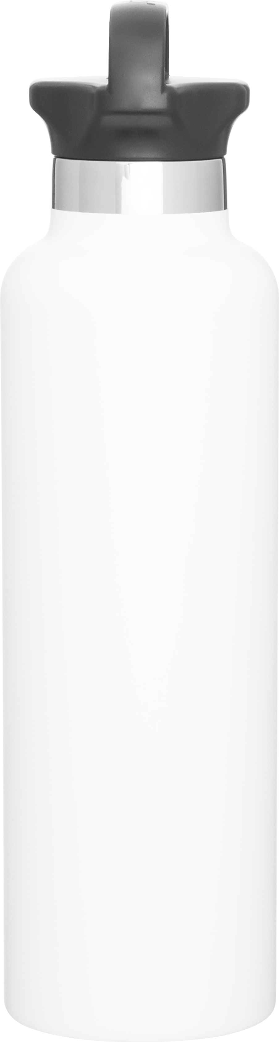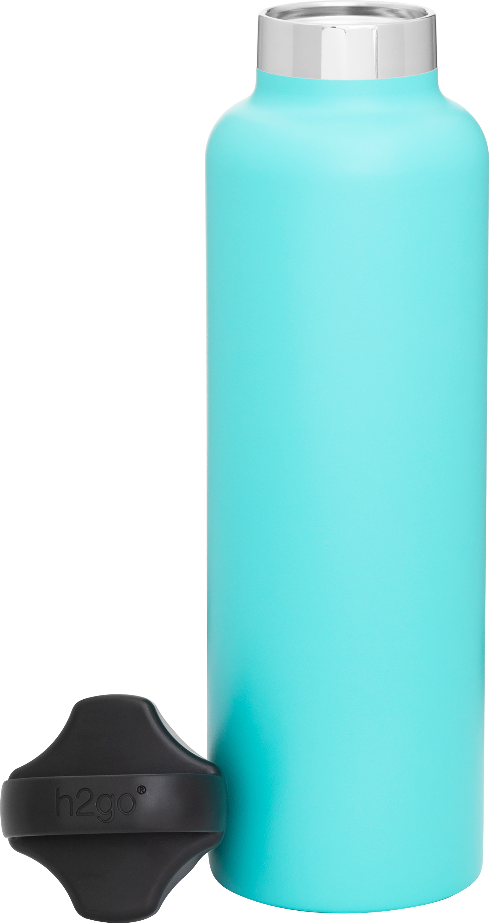 The h2go Ascent 24 oz thermal bottle combines rugged performance with sleek design details. Made from double wall 18/8 stainless steel with copper vacuum insulation, it keeps beverages hot or cold for hours. It features a threaded, gear-shaped insulated lid with an integrated carrying handle, a high polish rim for a refined touch, and a durable powder coated finish for grip and style.