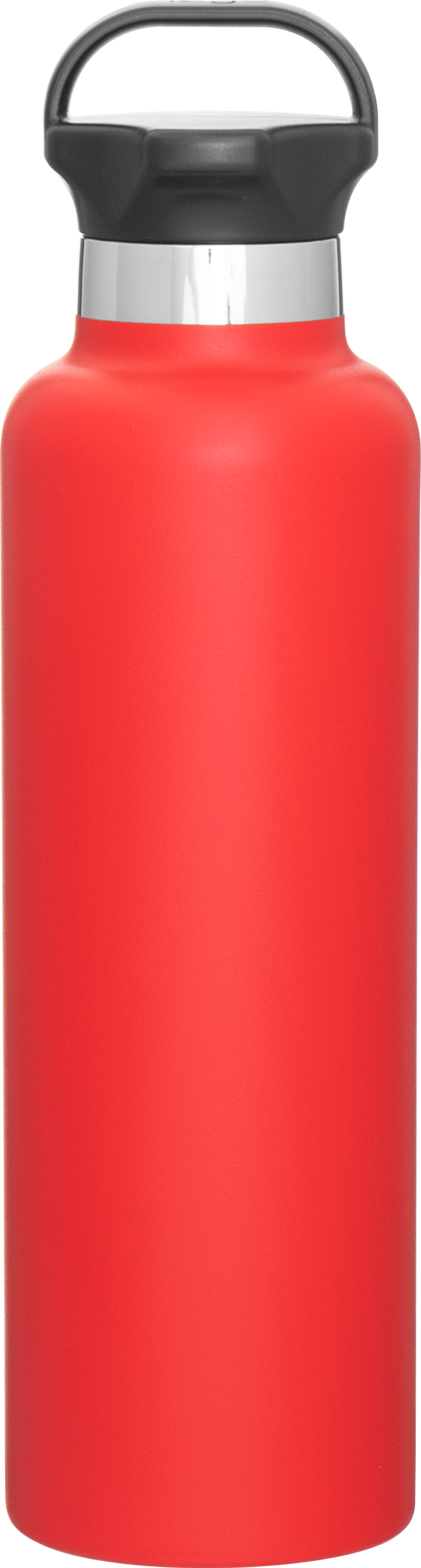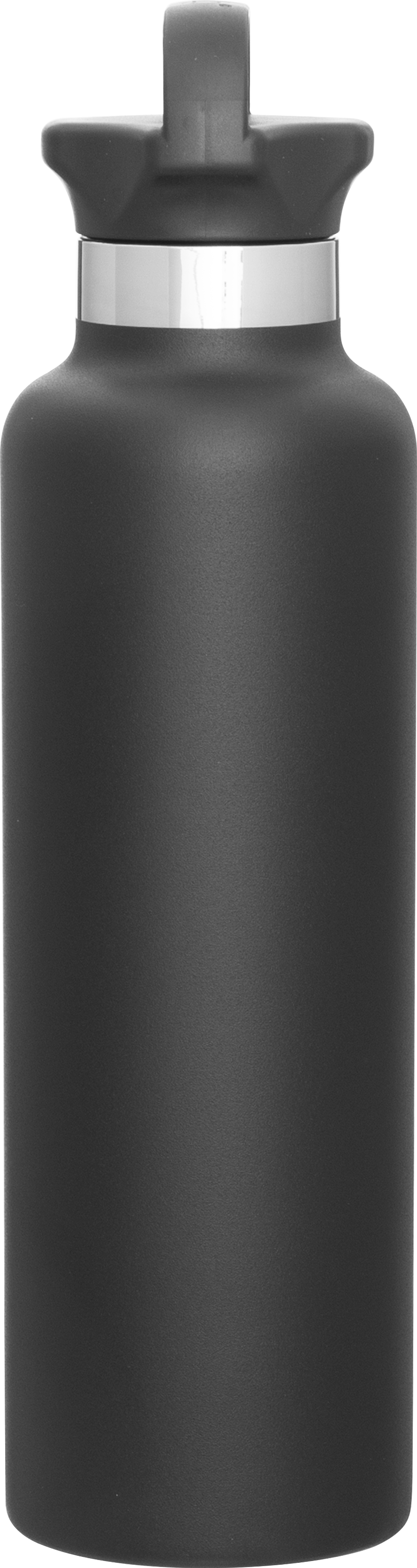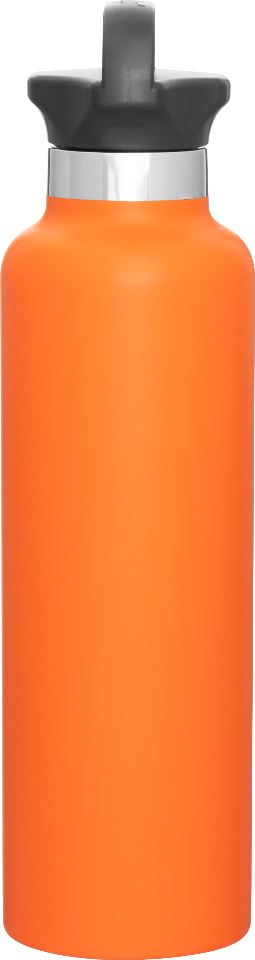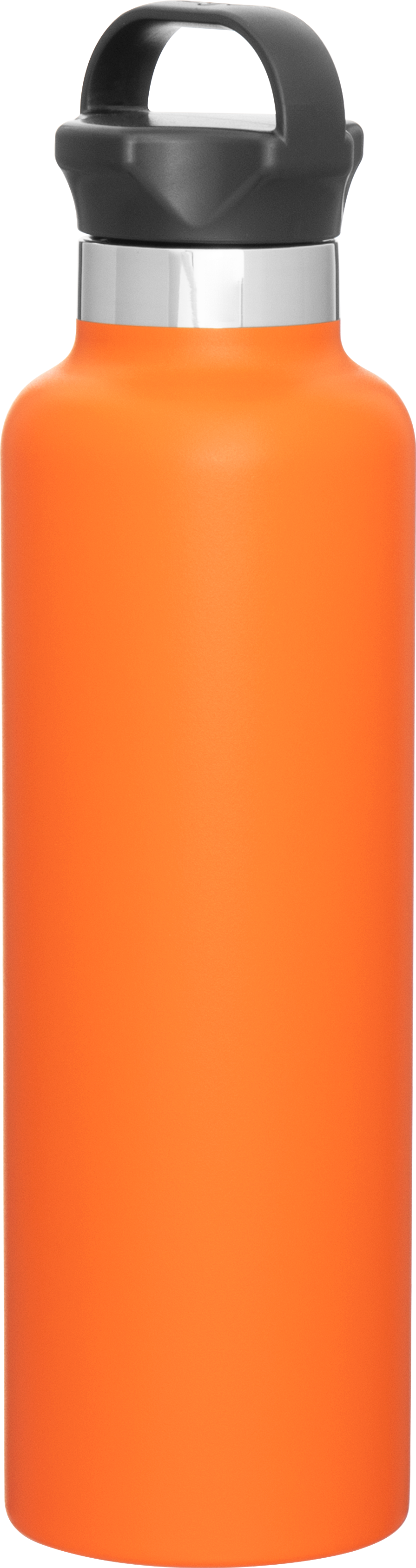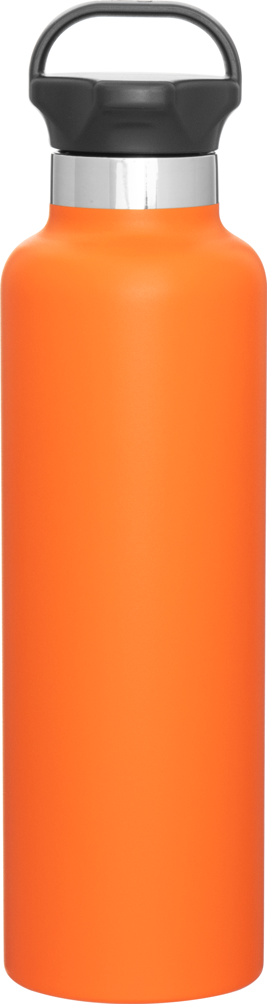The h2go Ascent 24 oz thermal bottle combines rugged performance with sleek design details. Made from double wall 18/8 stainless steel with copper vacuum insulation, it keeps beverages hot or cold for hours. It features a threaded, gear-shaped insulated lid with an integrated carrying handle, a high polish rim for a refined touch, and a durable powder coated finish for grip and style.