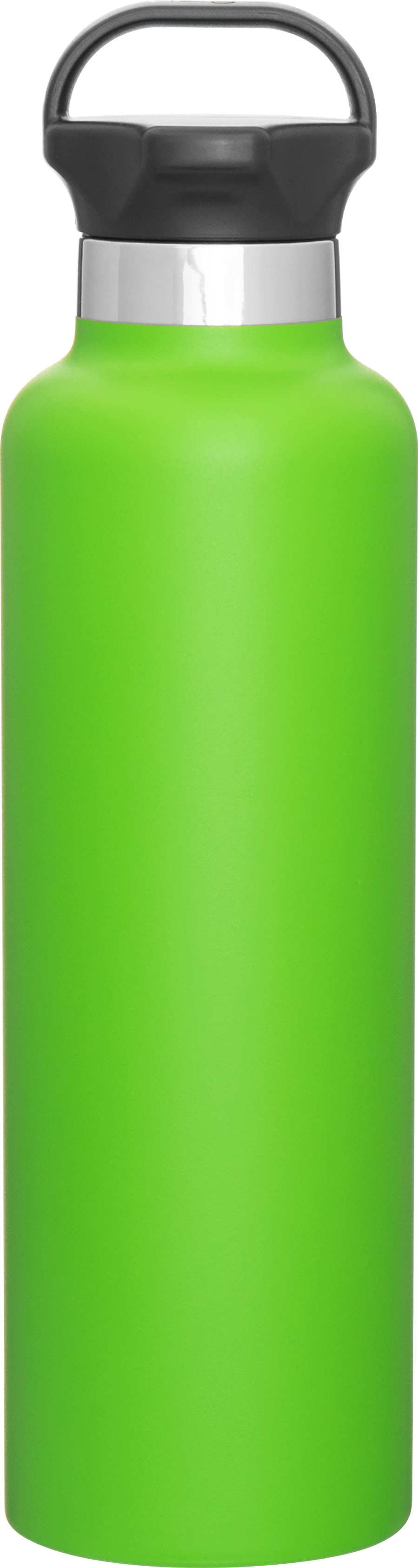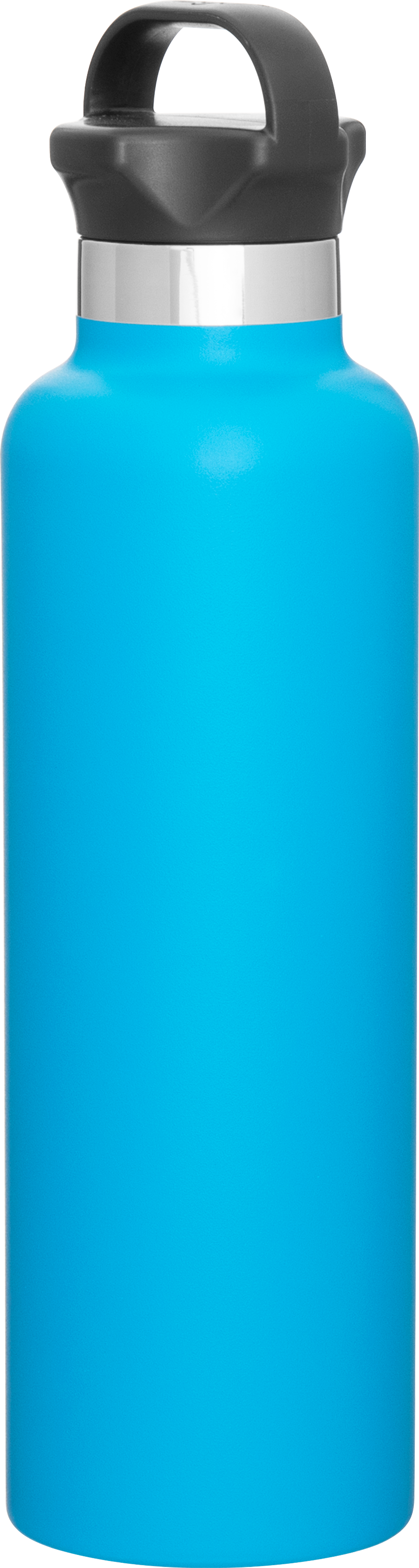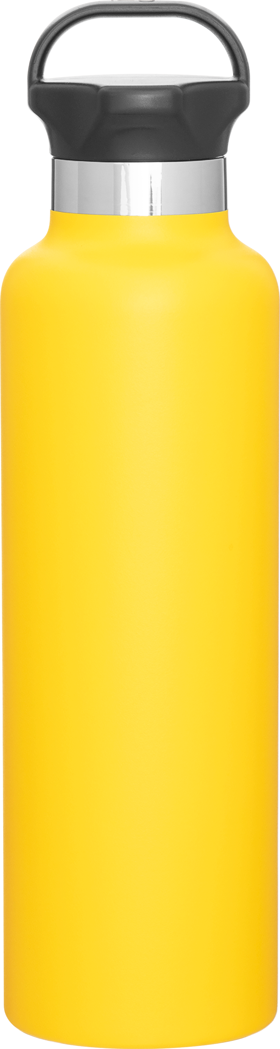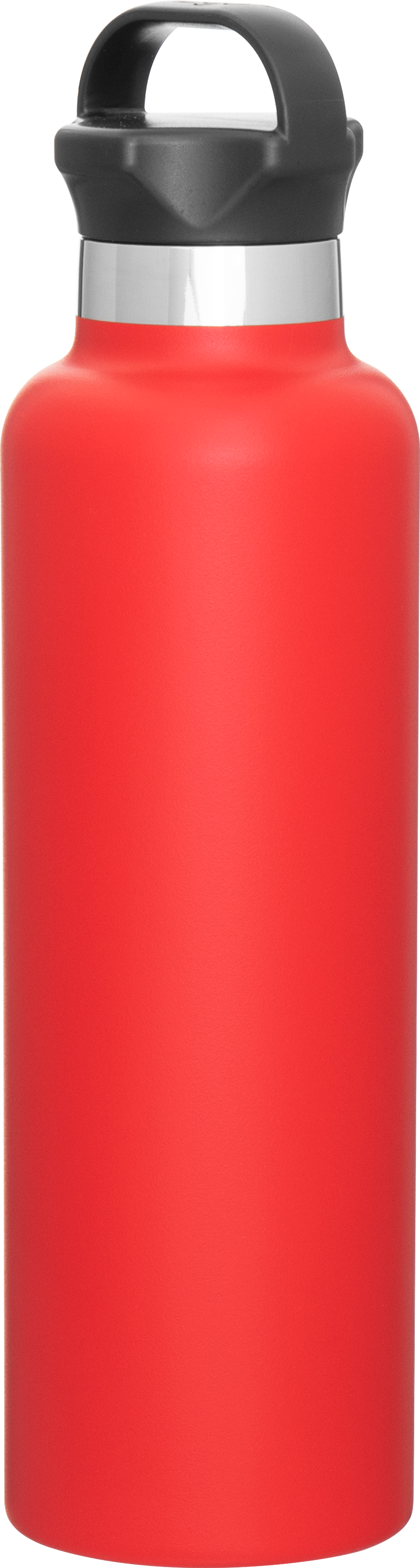 The h2go Ascent 24 oz thermal bottle combines rugged performance with sleek design details. Made from double wall 18/8 stainless steel with copper vacuum insulation, it keeps beverages hot or cold for hours. It features a threaded, gear-shaped insulated lid with an integrated carrying handle, a high polish rim for a refined touch, and a durable powder coated finish for grip and style.