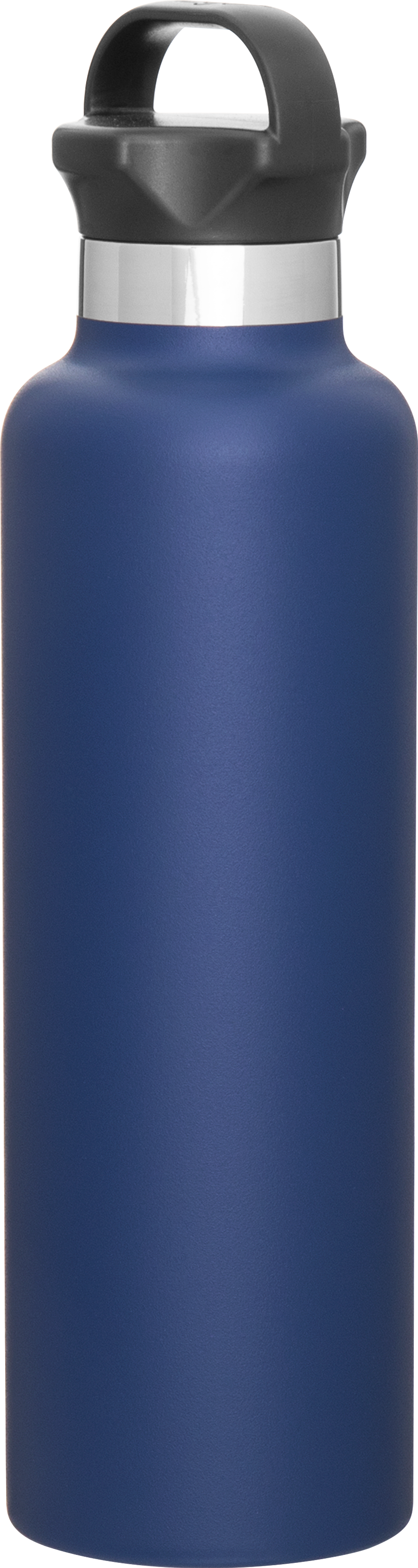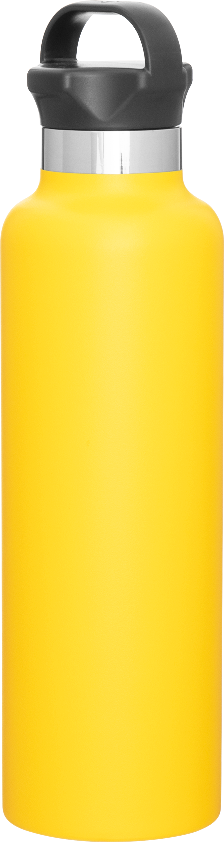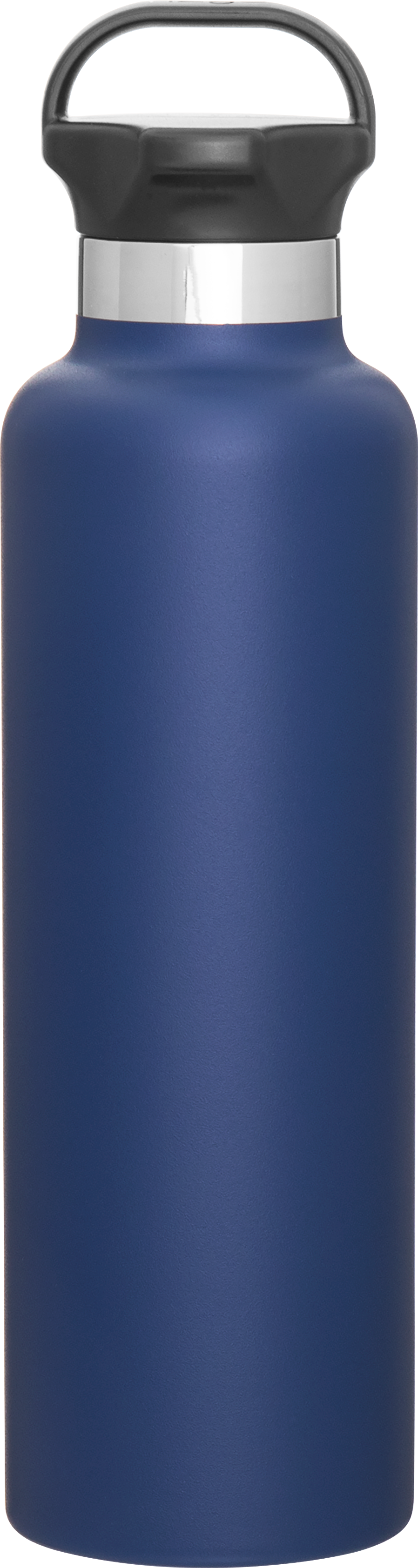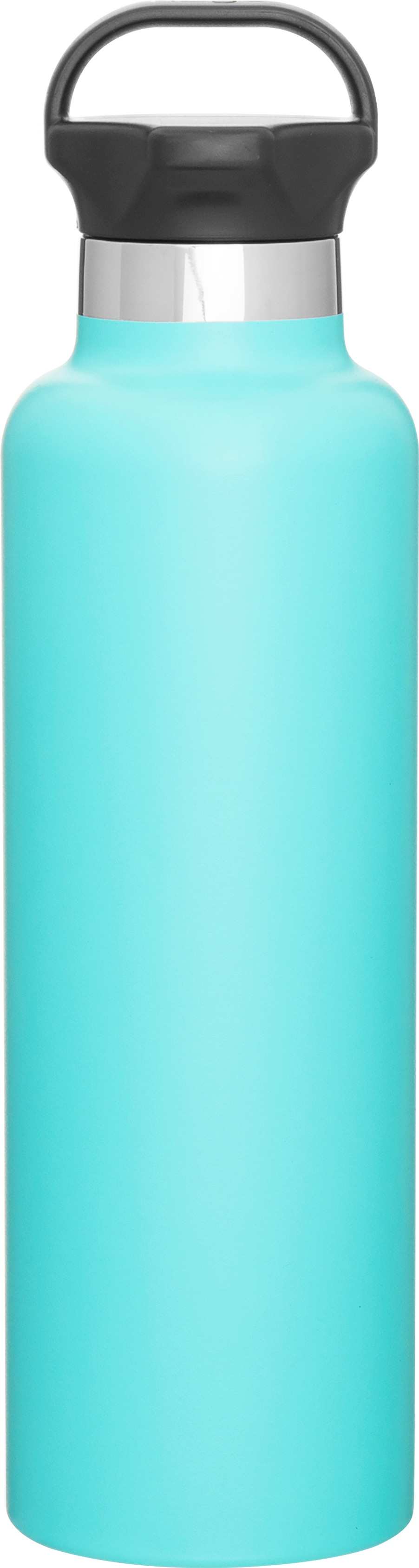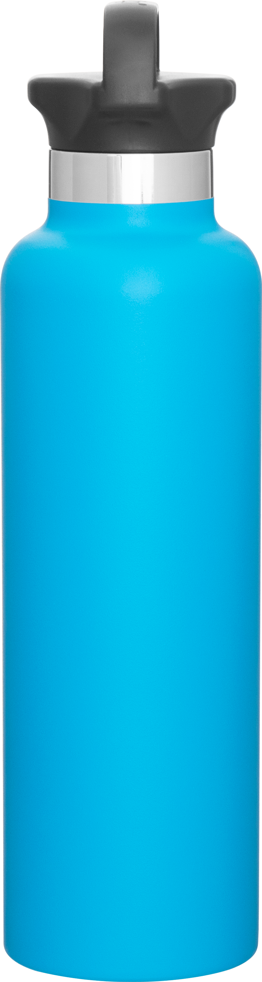 The h2go Ascent 24 oz thermal bottle combines rugged performance with sleek design details. Made from double wall 18/8 stainless steel with copper vacuum insulation, it keeps beverages hot or cold for hours. It features a threaded, gear-shaped insulated lid with an integrated carrying handle, a high polish rim for a refined touch, and a durable powder coated finish for grip and style.