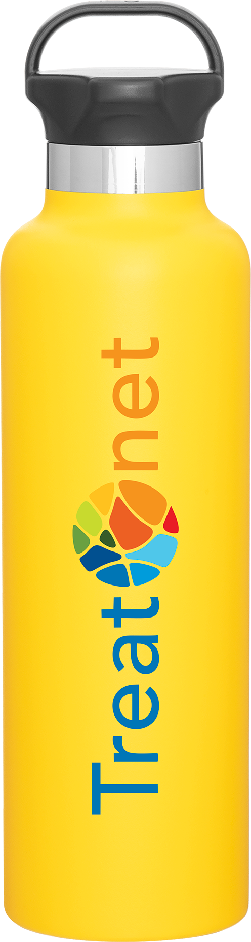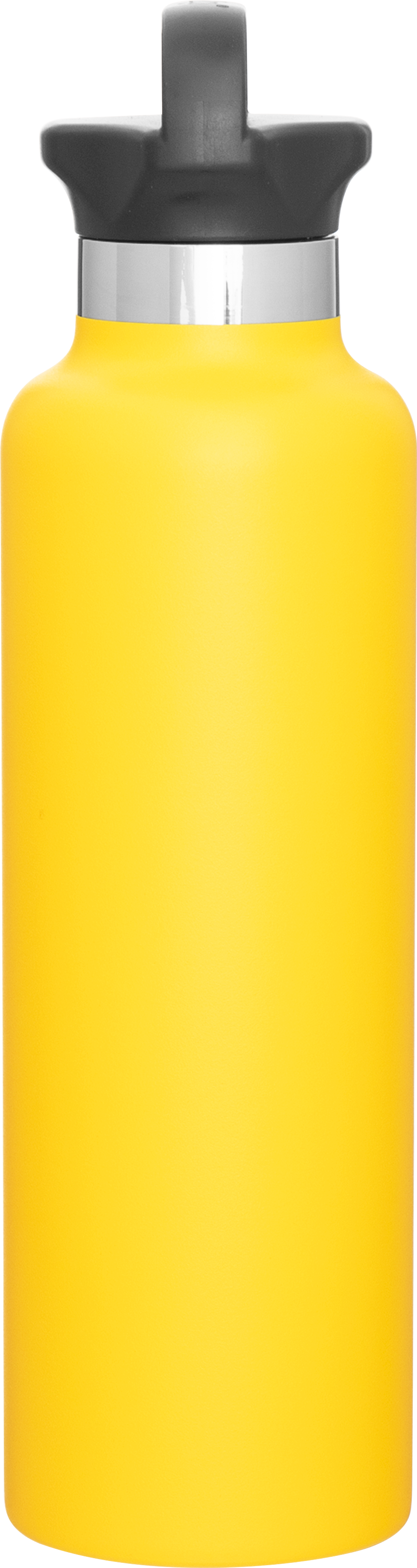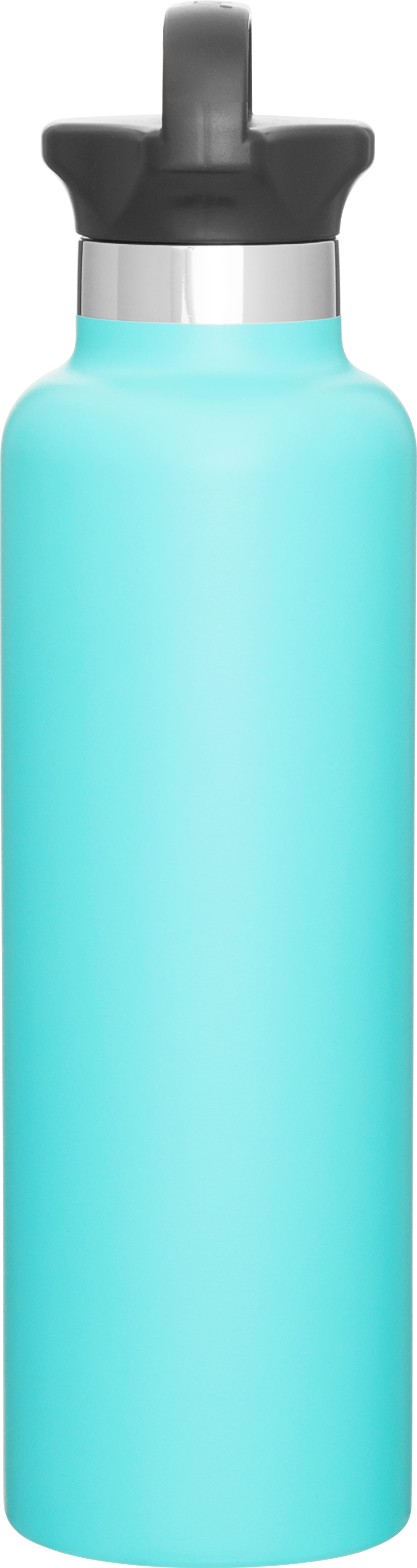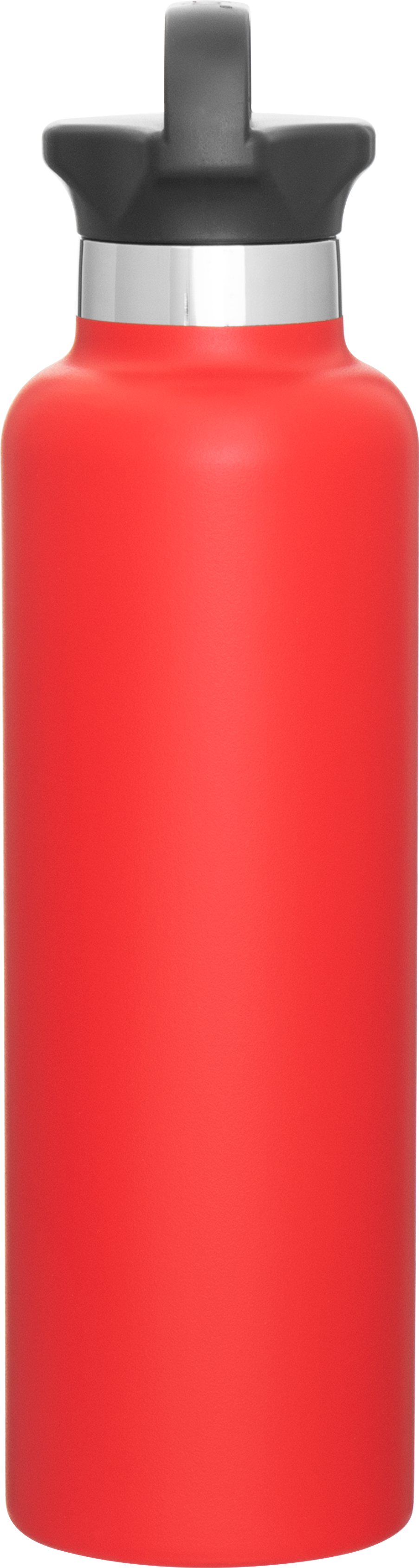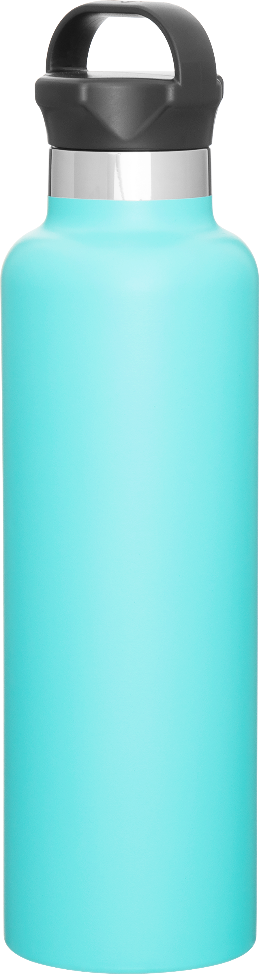 The h2go Ascent 24 oz thermal bottle combines rugged performance with sleek design details. Made from double wall 18/8 stainless steel with copper vacuum insulation, it keeps beverages hot or cold for hours. It features a threaded, gear-shaped insulated lid with an integrated carrying handle, a high polish rim for a refined touch, and a durable powder coated finish for grip and style.