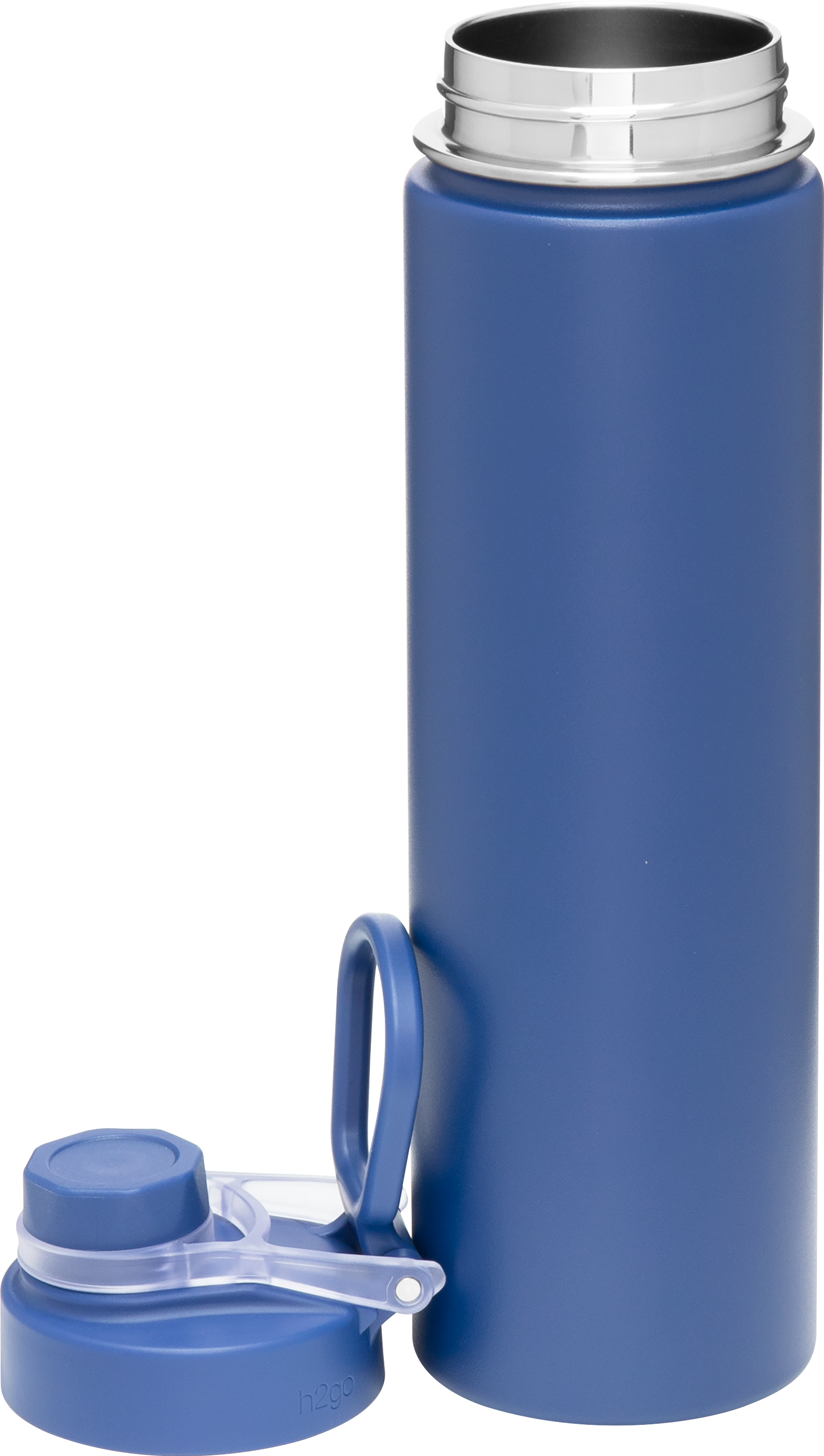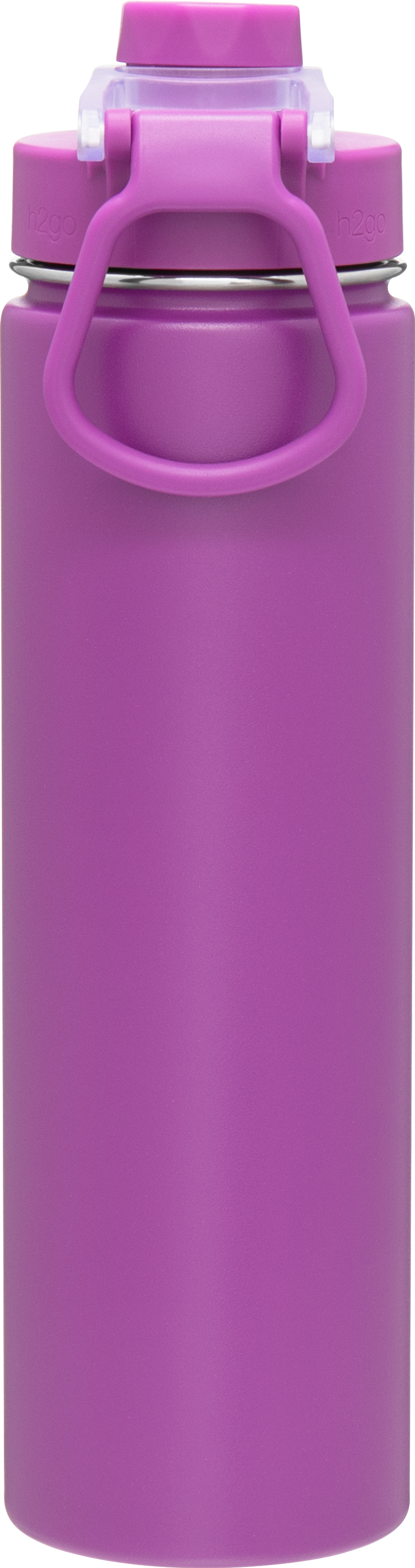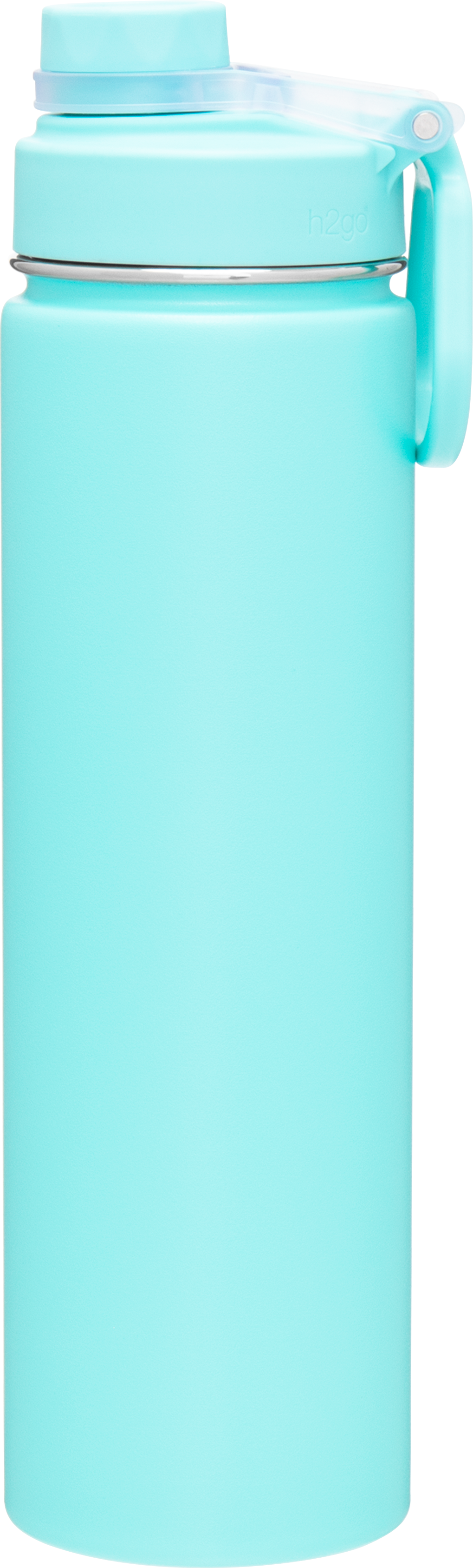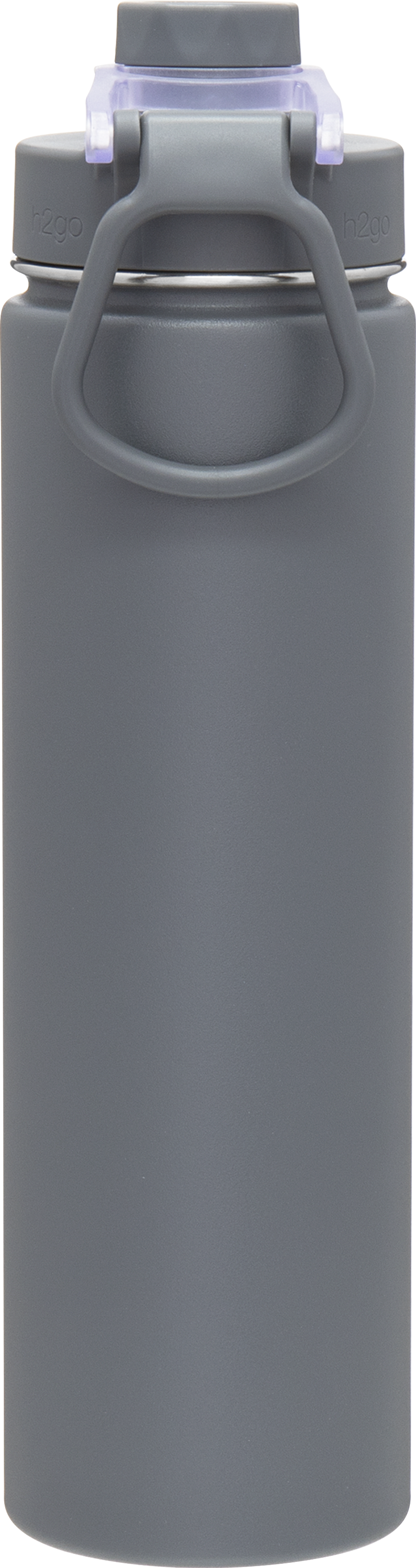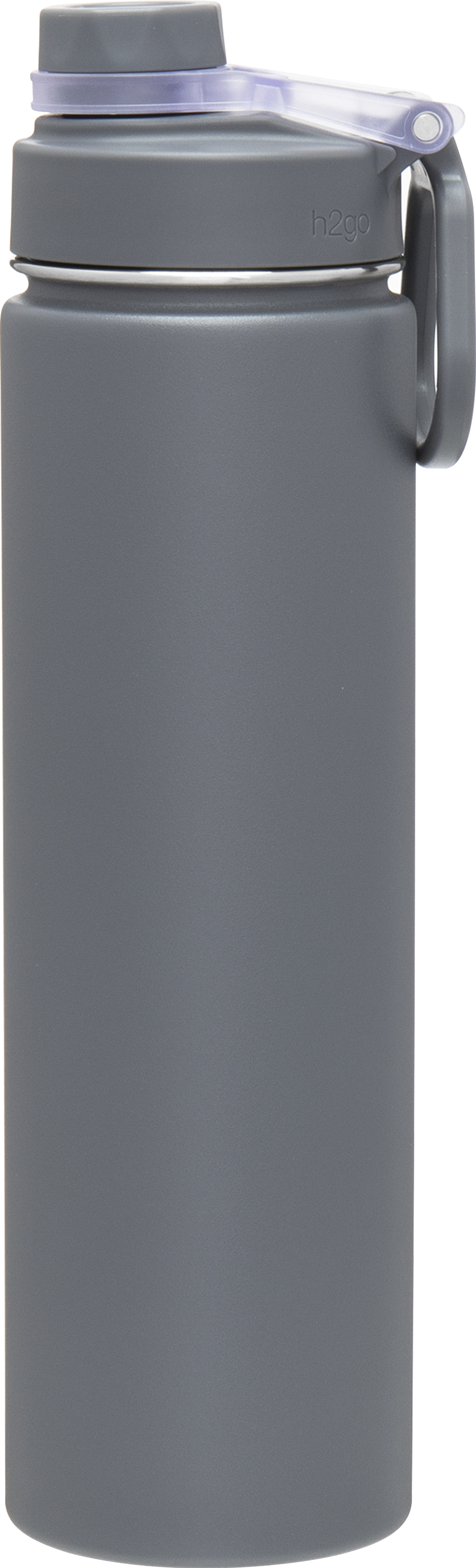 The h2go Conquer 24 oz thermal bottle is made to go the distance. Constructed from double-wall 18/8 stainless steel with copper vacuum insulation, it keeps drinks hot or cold for hours. It features a matching threaded lid with a built-in drinking spout and hinged cap for easy access, plus a sturdy carrying handle for convenience on the move. Finished with a durable powder coated exterior, Conquer is ready for wherever the day leads.