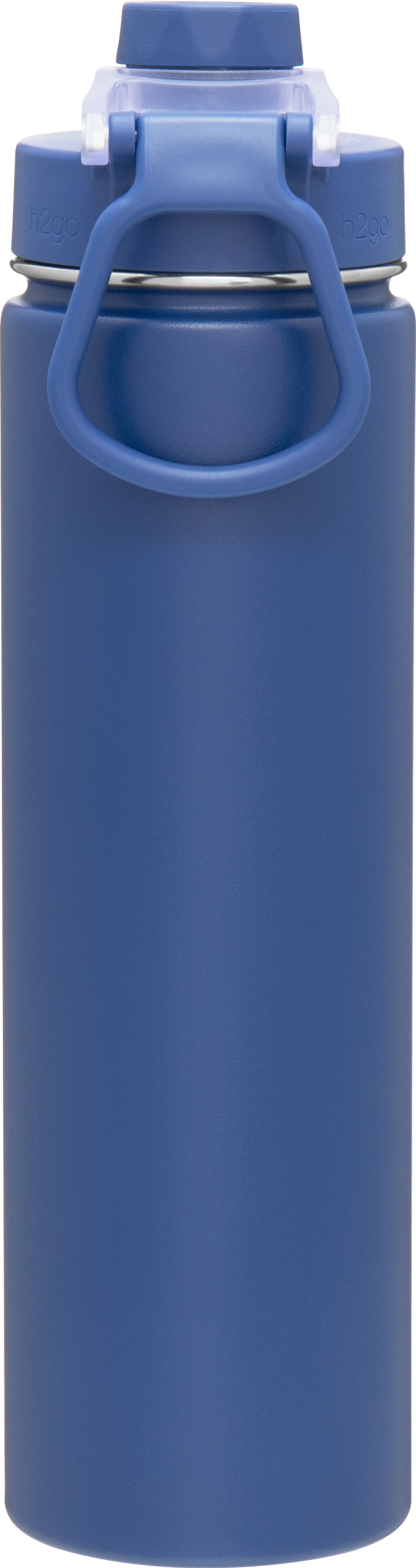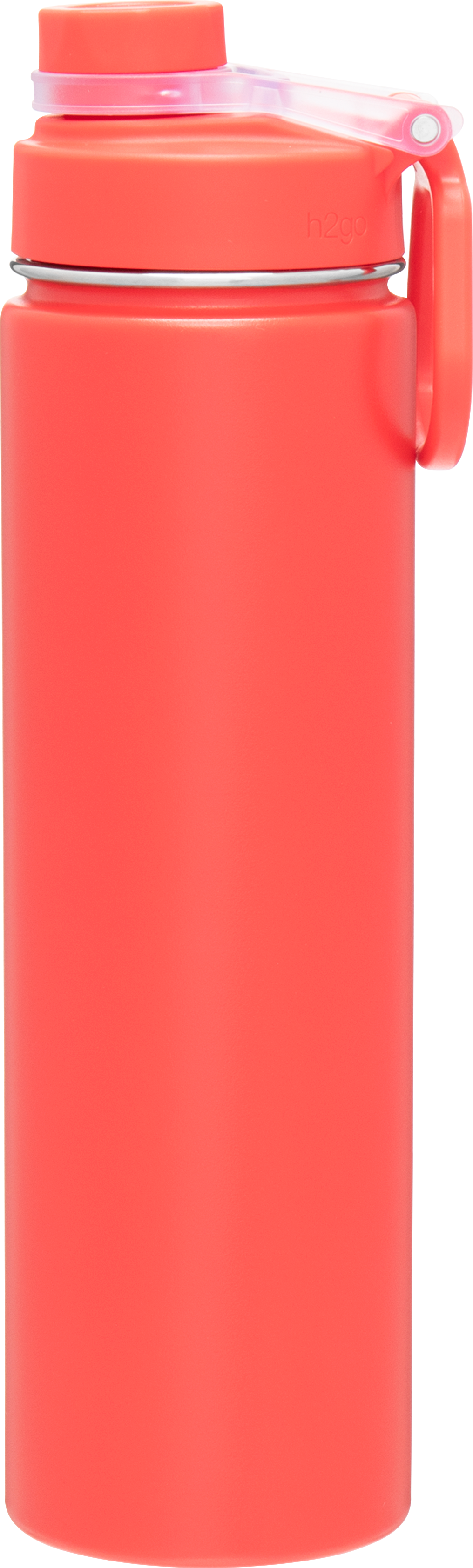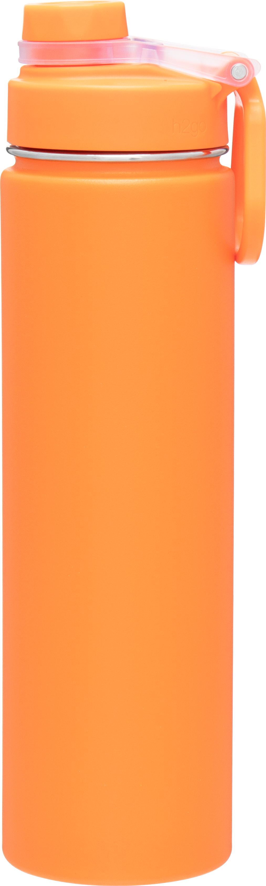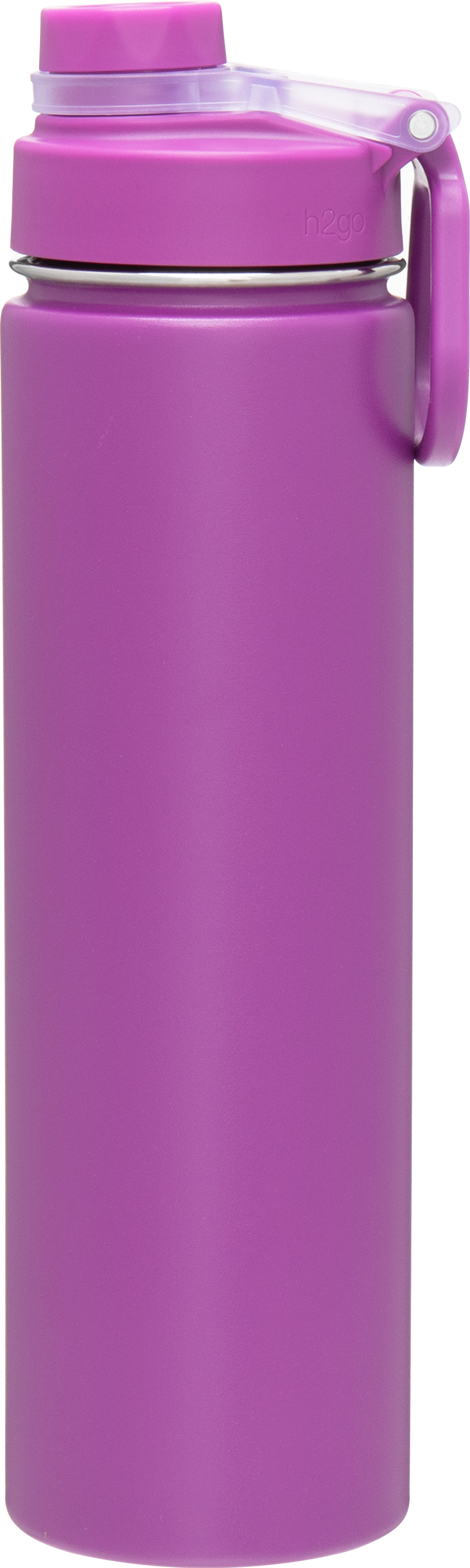 The h2go Conquer 24 oz thermal bottle is made to go the distance. Constructed from double-wall 18/8 stainless steel with copper vacuum insulation, it keeps drinks hot or cold for hours. It features a matching threaded lid with a built-in drinking spout and hinged cap for easy access, plus a sturdy carrying handle for convenience on the move. Finished with a durable powder coated exterior, Conquer is ready for wherever the day leads.