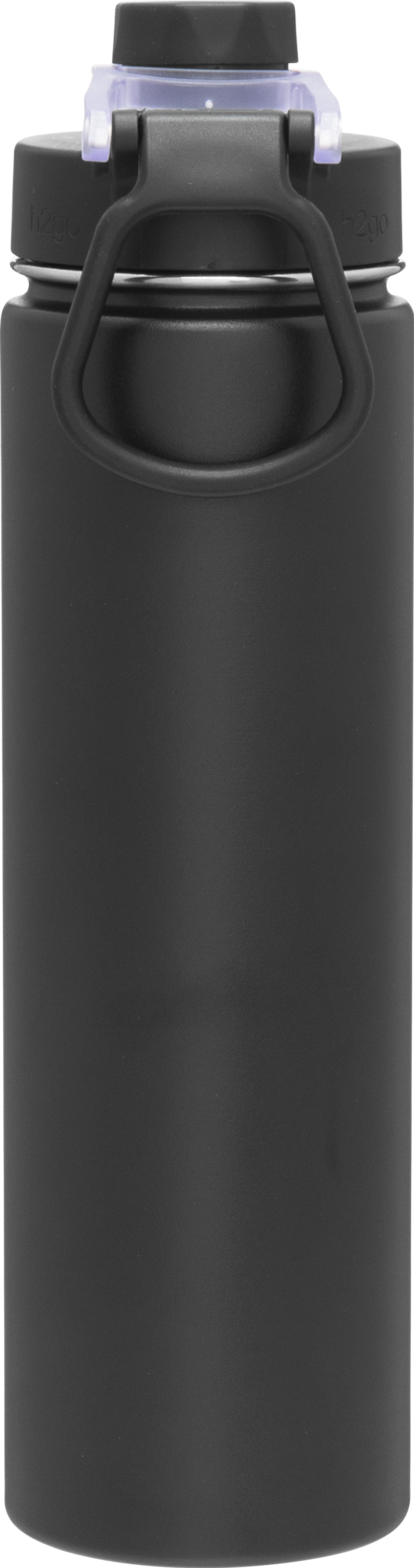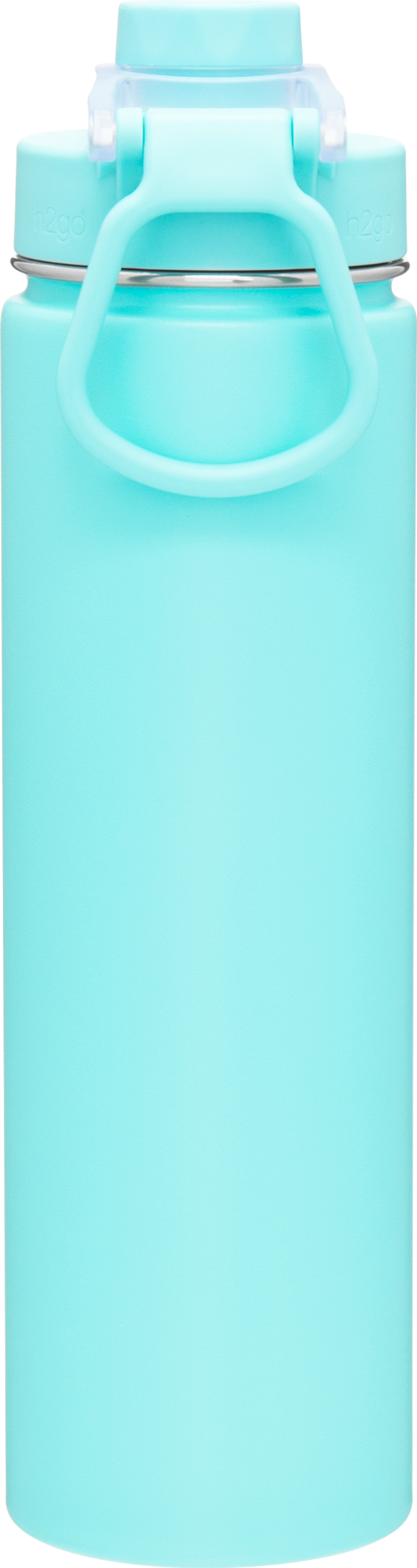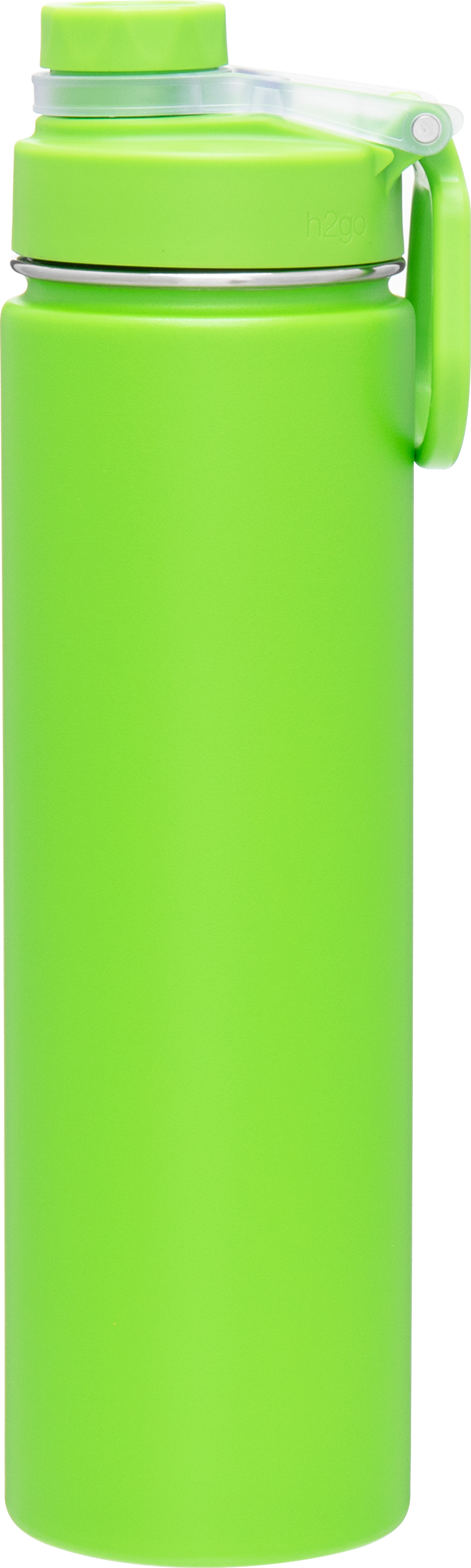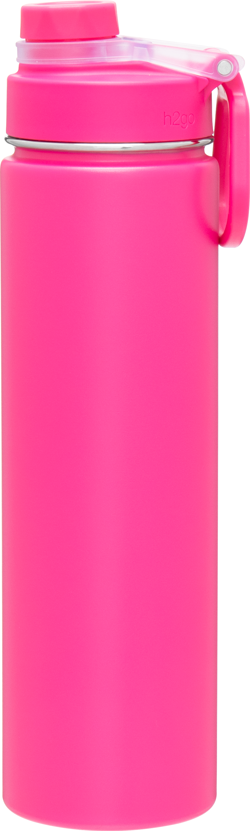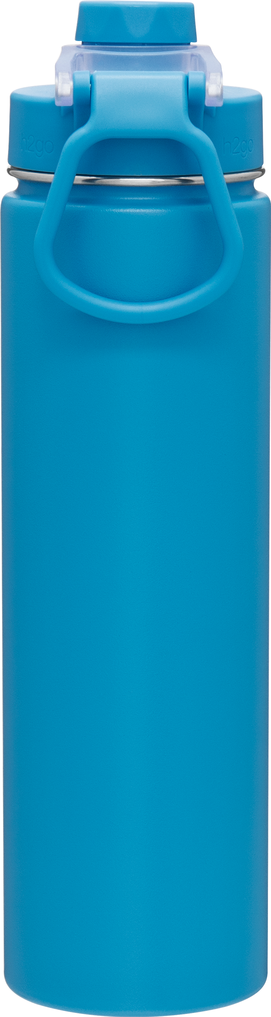 The h2go Conquer 24 oz thermal bottle is made to go the distance. Constructed from double-wall 18/8 stainless steel with copper vacuum insulation, it keeps drinks hot or cold for hours. It features a matching threaded lid with a built-in drinking spout and hinged cap for easy access, plus a sturdy carrying handle for convenience on the move. Finished with a durable powder coated exterior, Conquer is ready for wherever the day leads.
