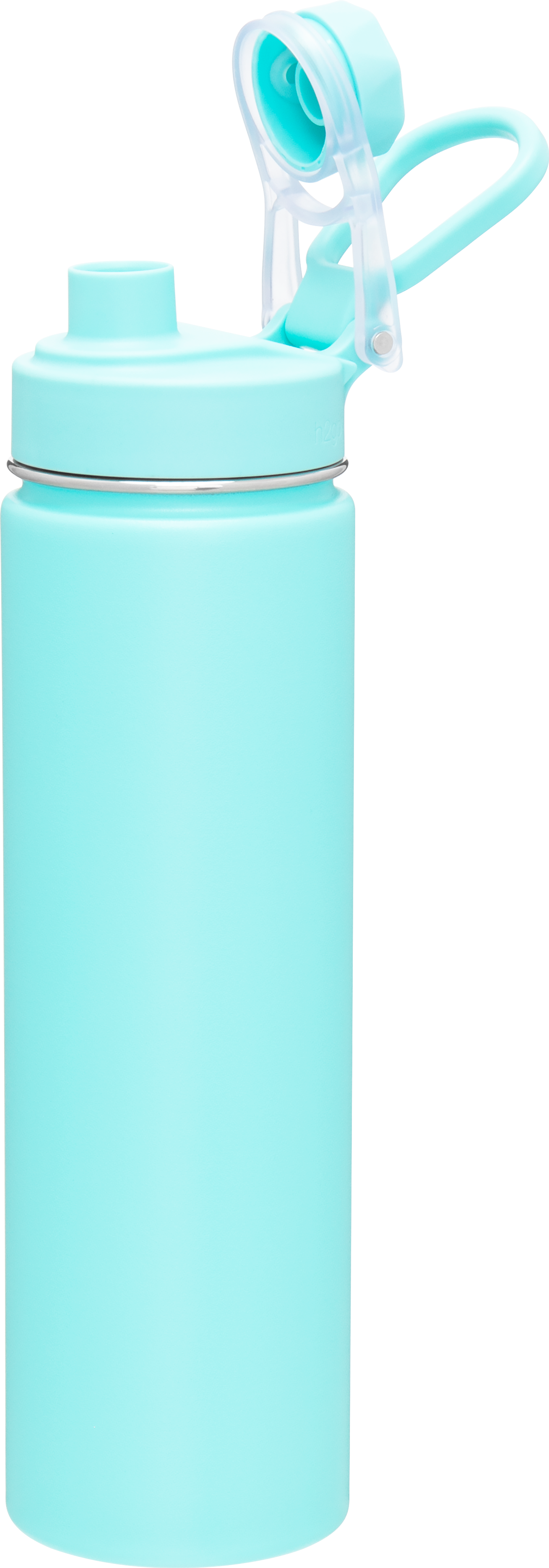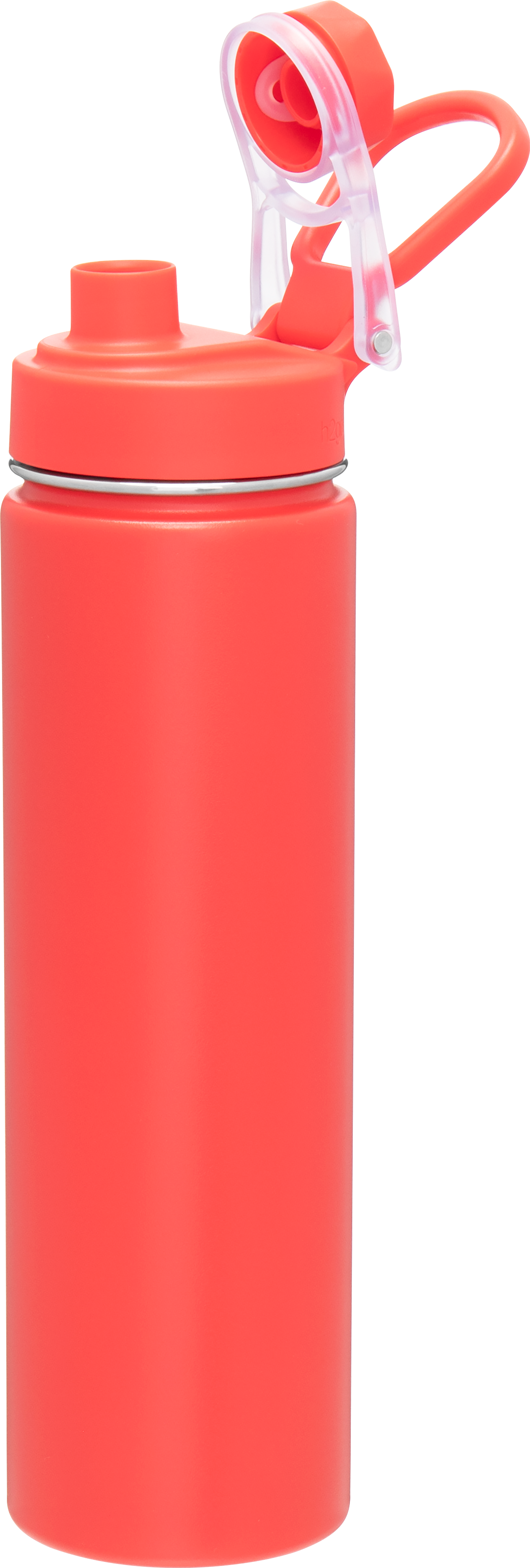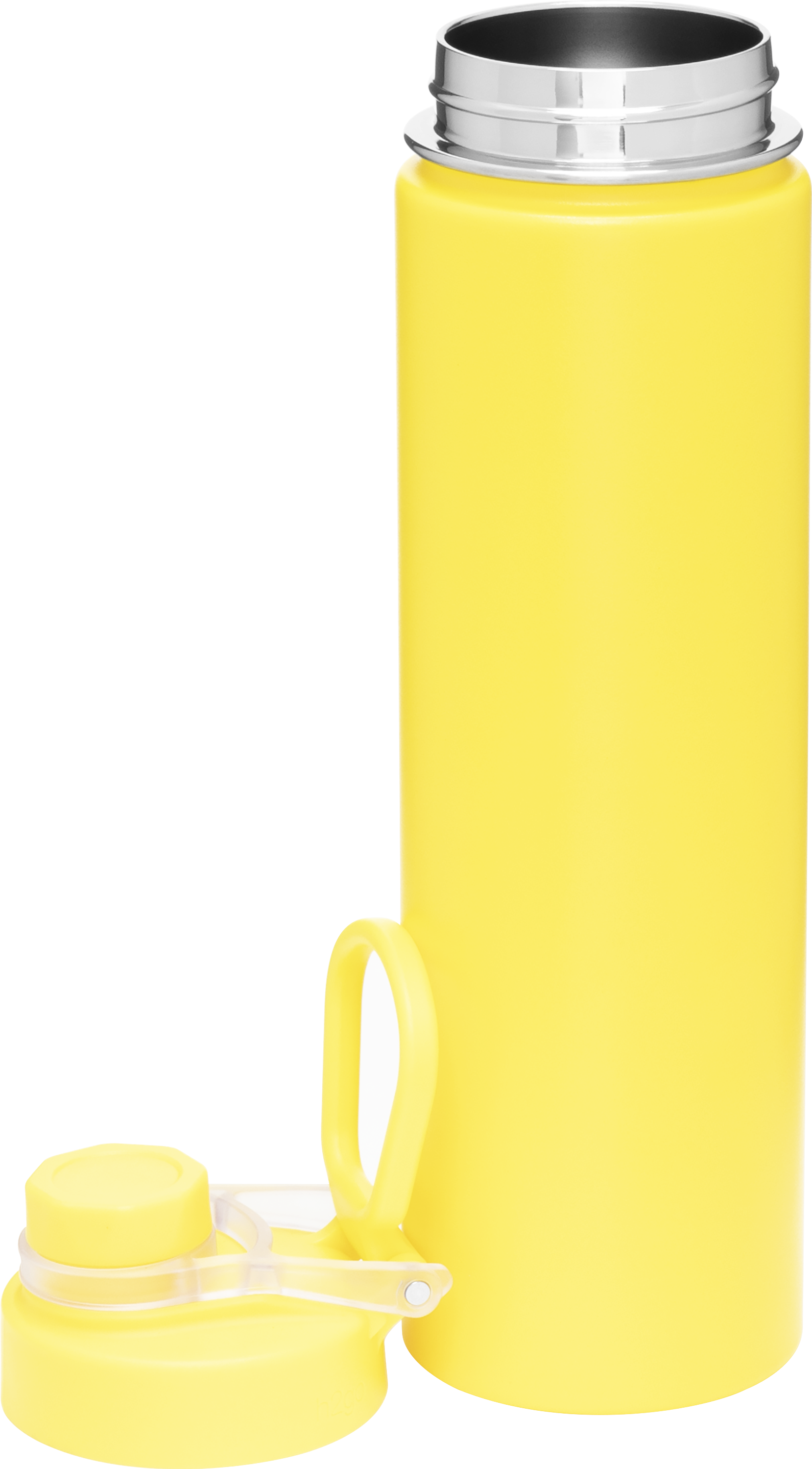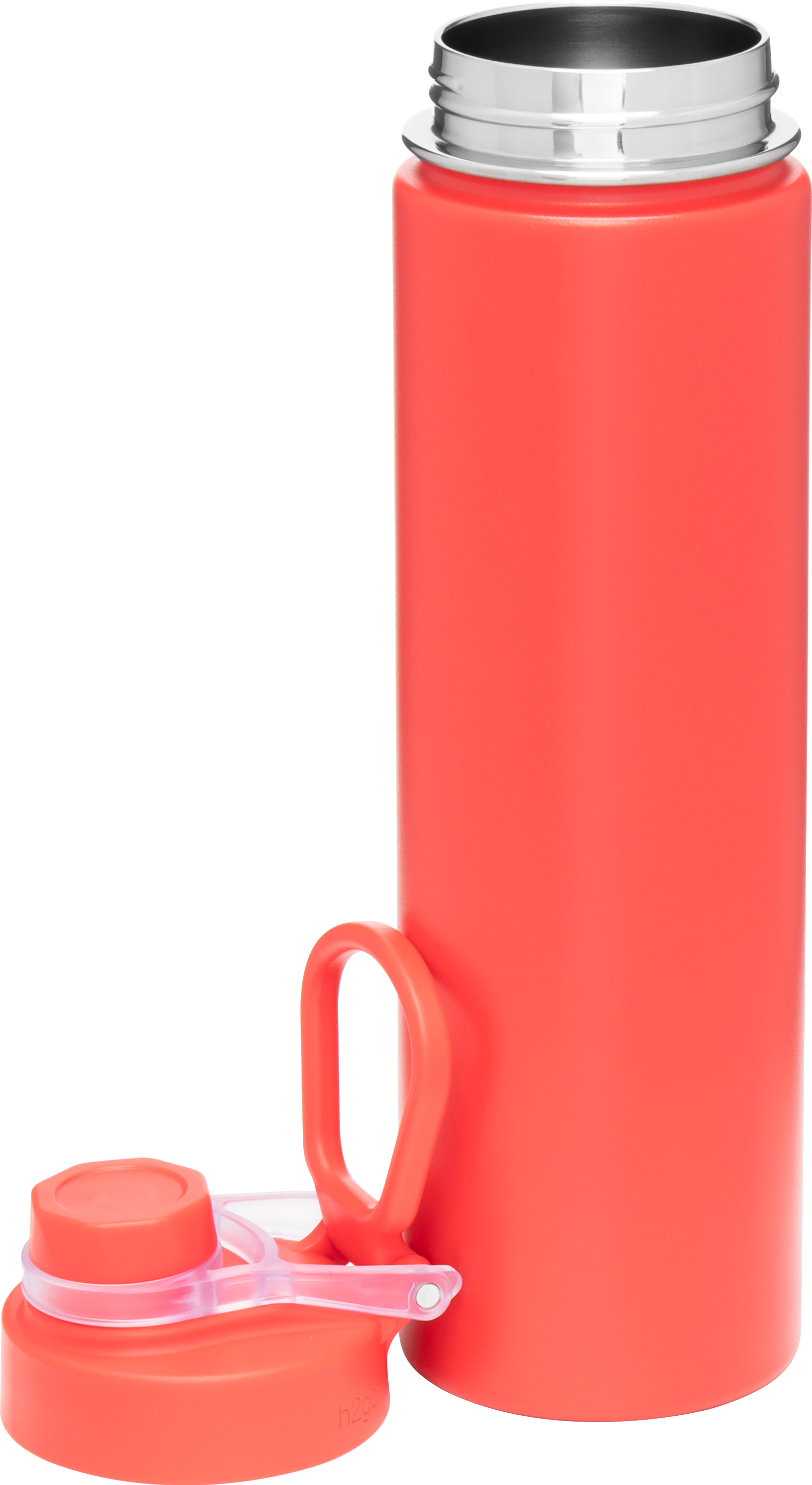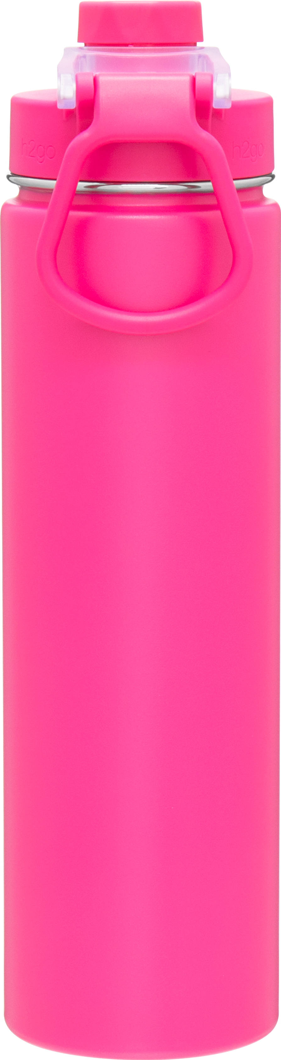 The h2go Conquer 24 oz thermal bottle is made to go the distance. Constructed from double-wall 18/8 stainless steel with copper vacuum insulation, it keeps drinks hot or cold for hours. It features a matching threaded lid with a built-in drinking spout and hinged cap for easy access, plus a sturdy carrying handle for convenience on the move. Finished with a durable powder coated exterior, Conquer is ready for wherever the day leads.