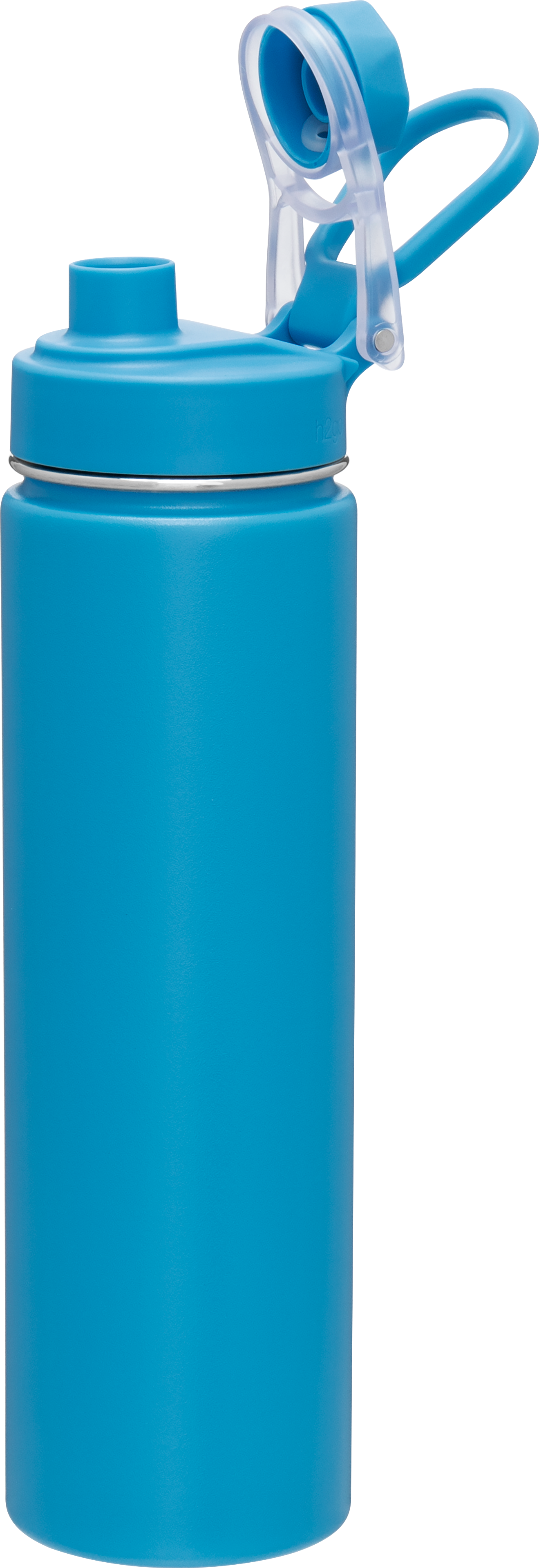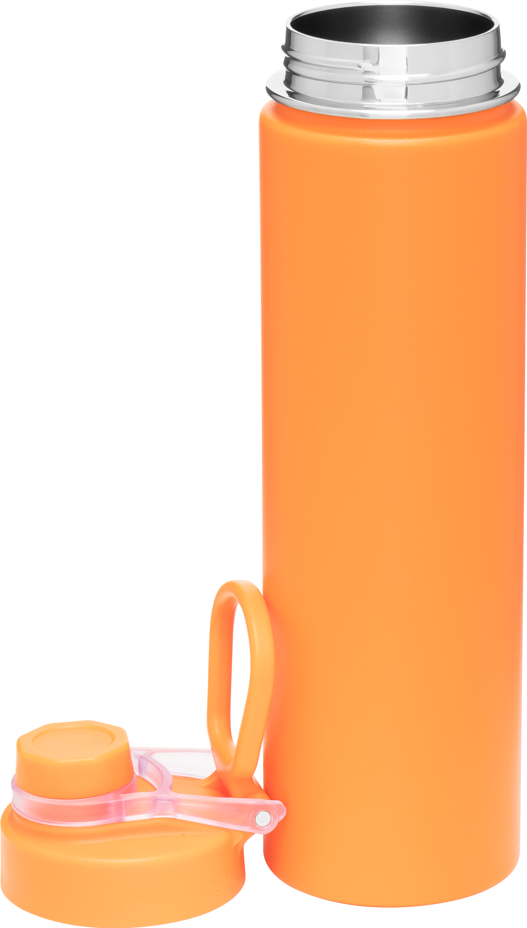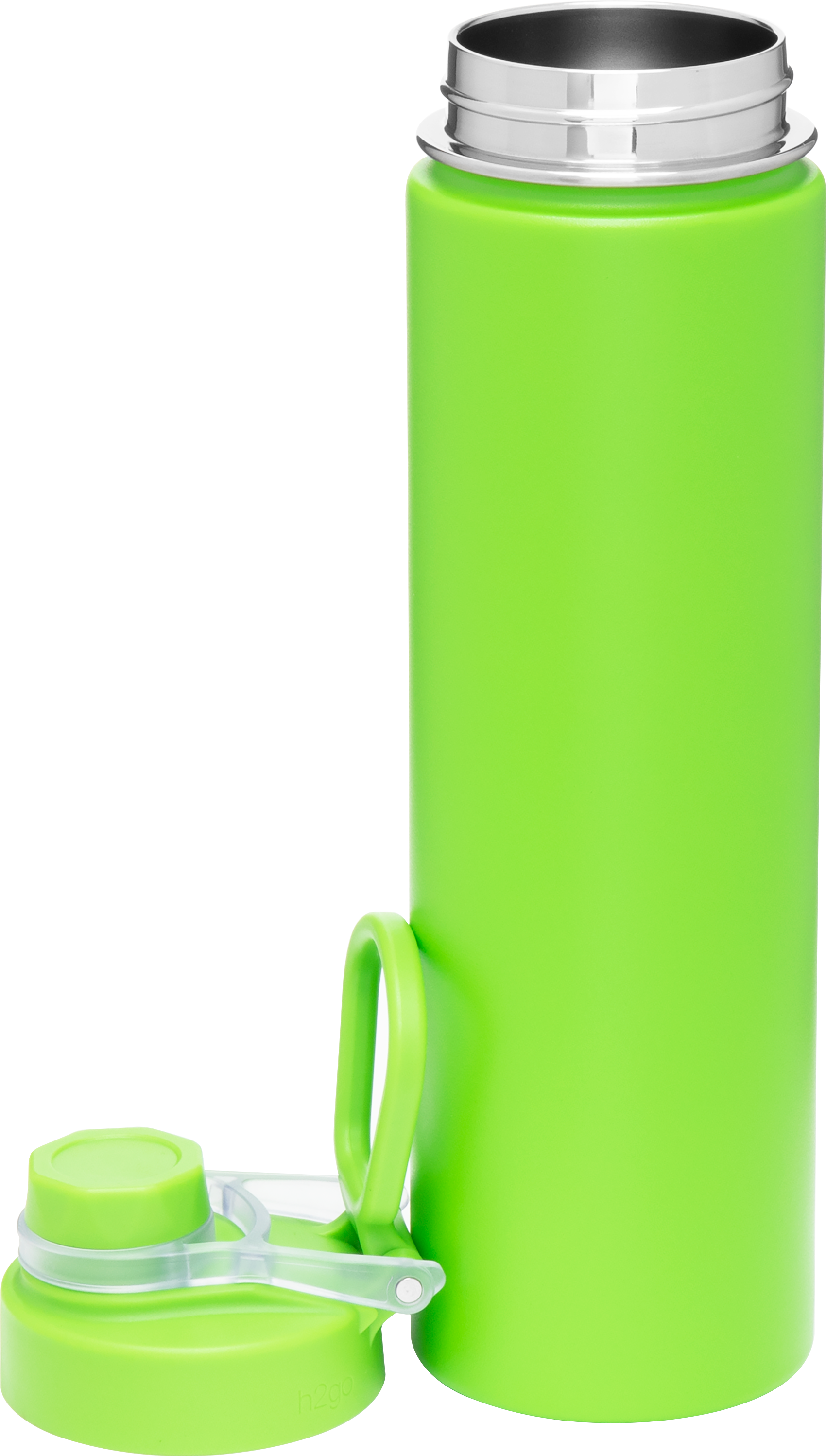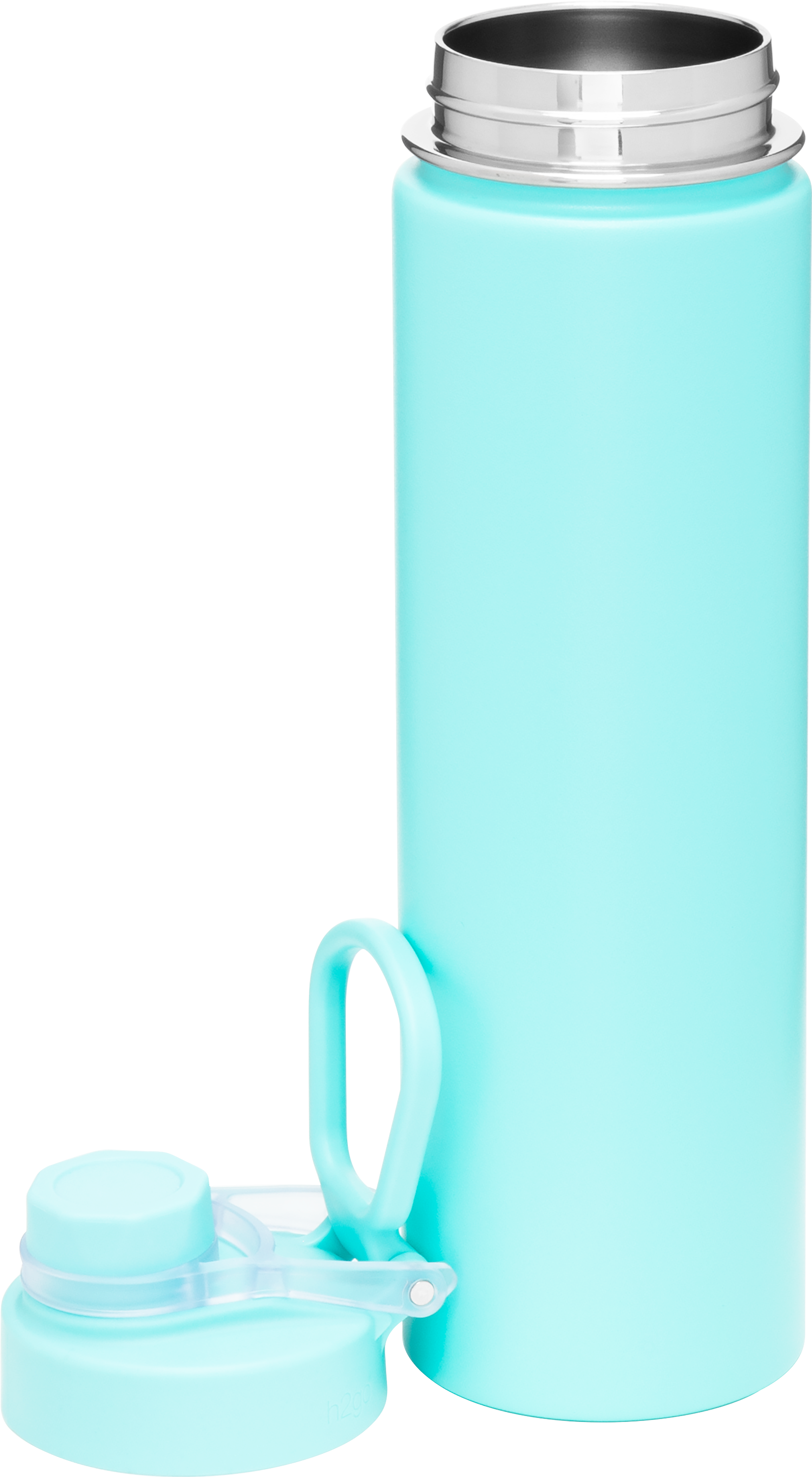 The h2go Conquer 24 oz thermal bottle is made to go the distance. Constructed from double-wall 18/8 stainless steel with copper vacuum insulation, it keeps drinks hot or cold for hours. It features a matching threaded lid with a built-in drinking spout and hinged cap for easy access, plus a sturdy carrying handle for convenience on the move. Finished with a durable powder coated exterior, Conquer is ready for wherever the day leads.