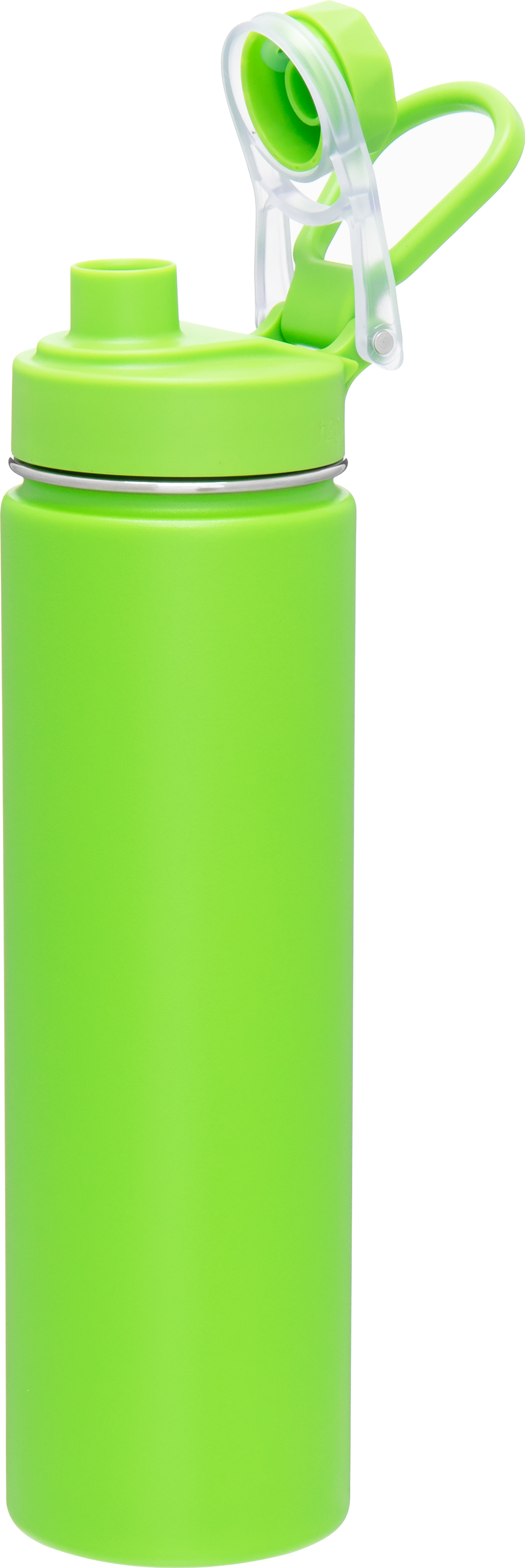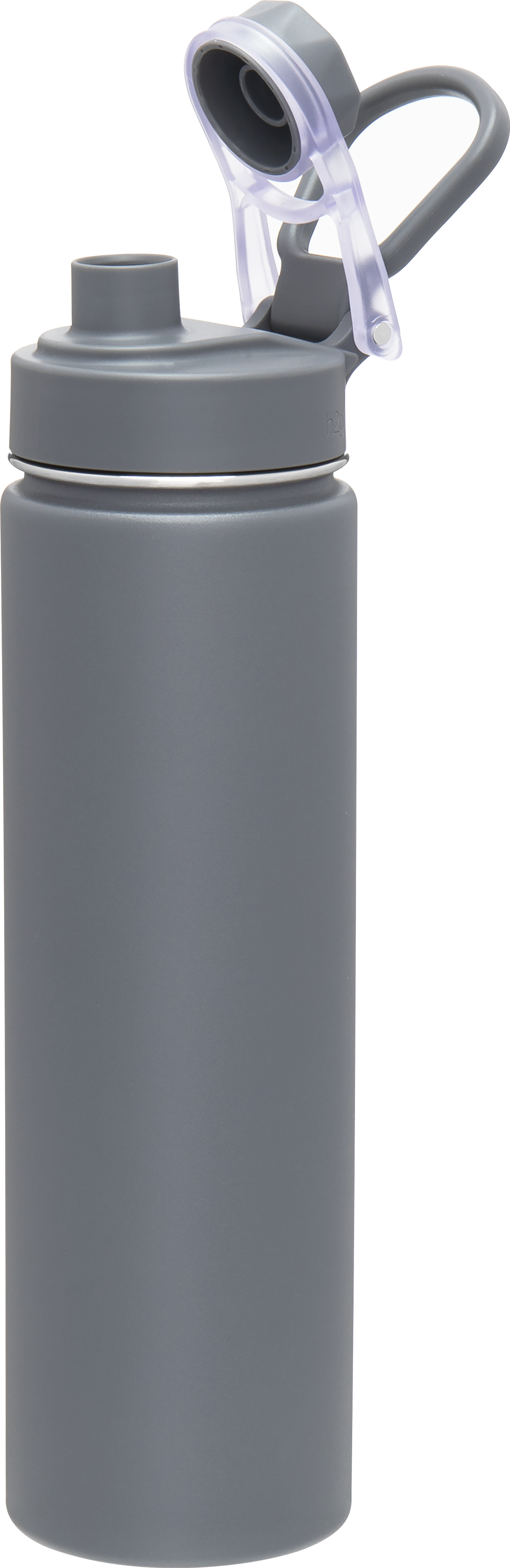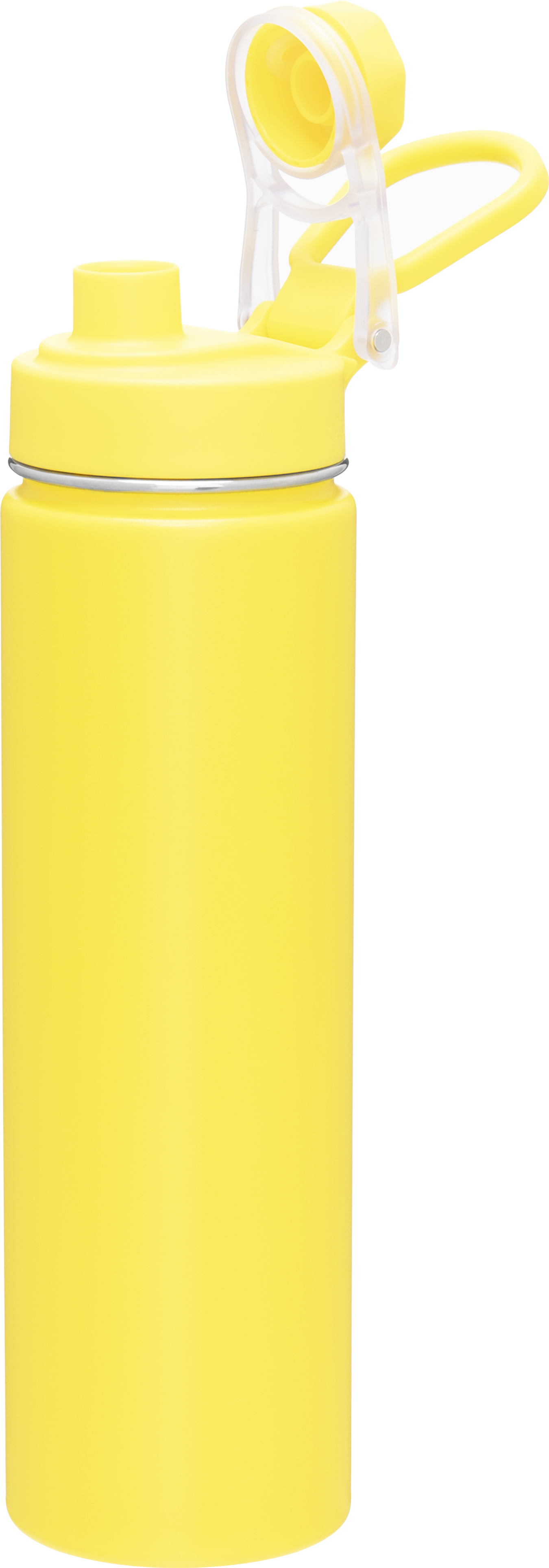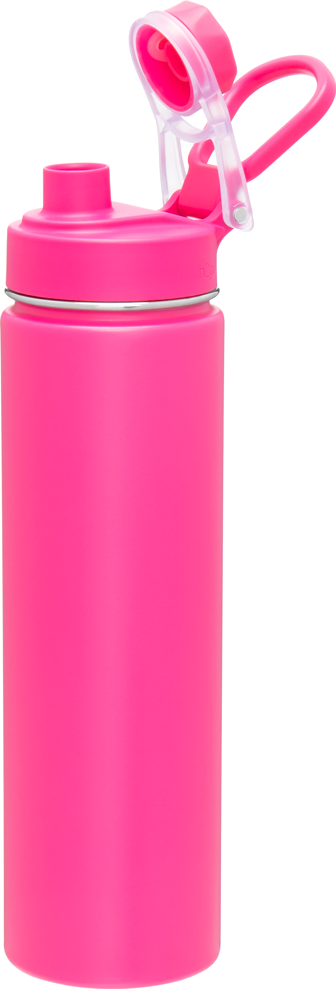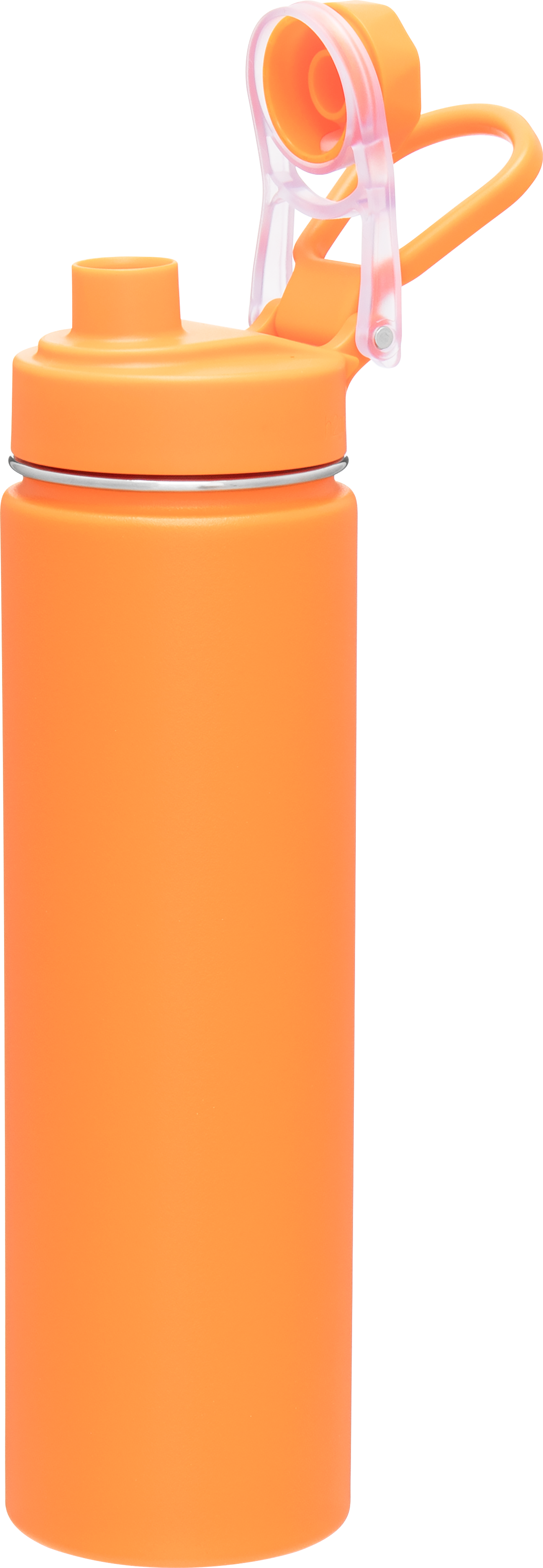 The h2go Conquer 24 oz thermal bottle is made to go the distance. Constructed from double-wall 18/8 stainless steel with copper vacuum insulation, it keeps drinks hot or cold for hours. It features a matching threaded lid with a built-in drinking spout and hinged cap for easy access, plus a sturdy carrying handle for convenience on the move. Finished with a durable powder coated exterior, Conquer is ready for wherever the day leads.