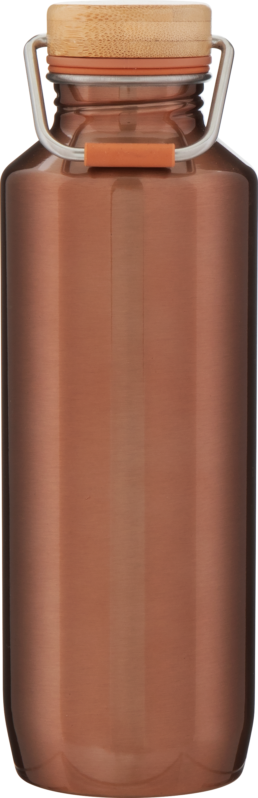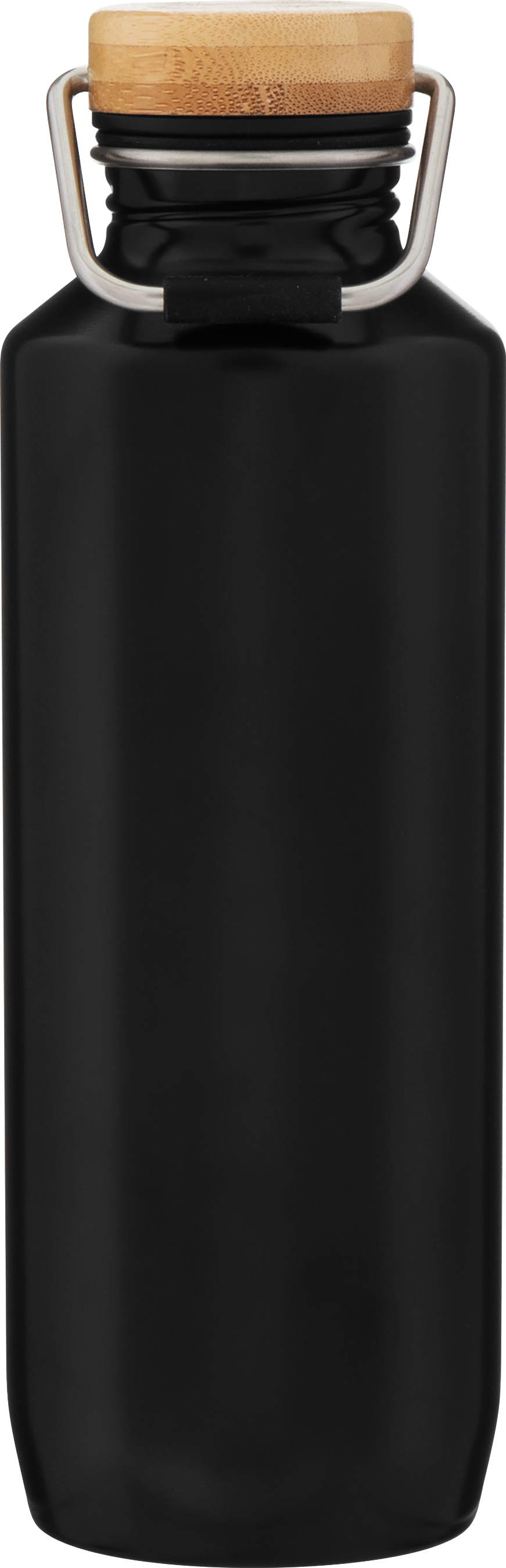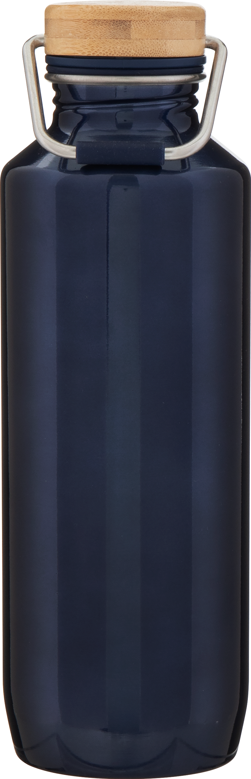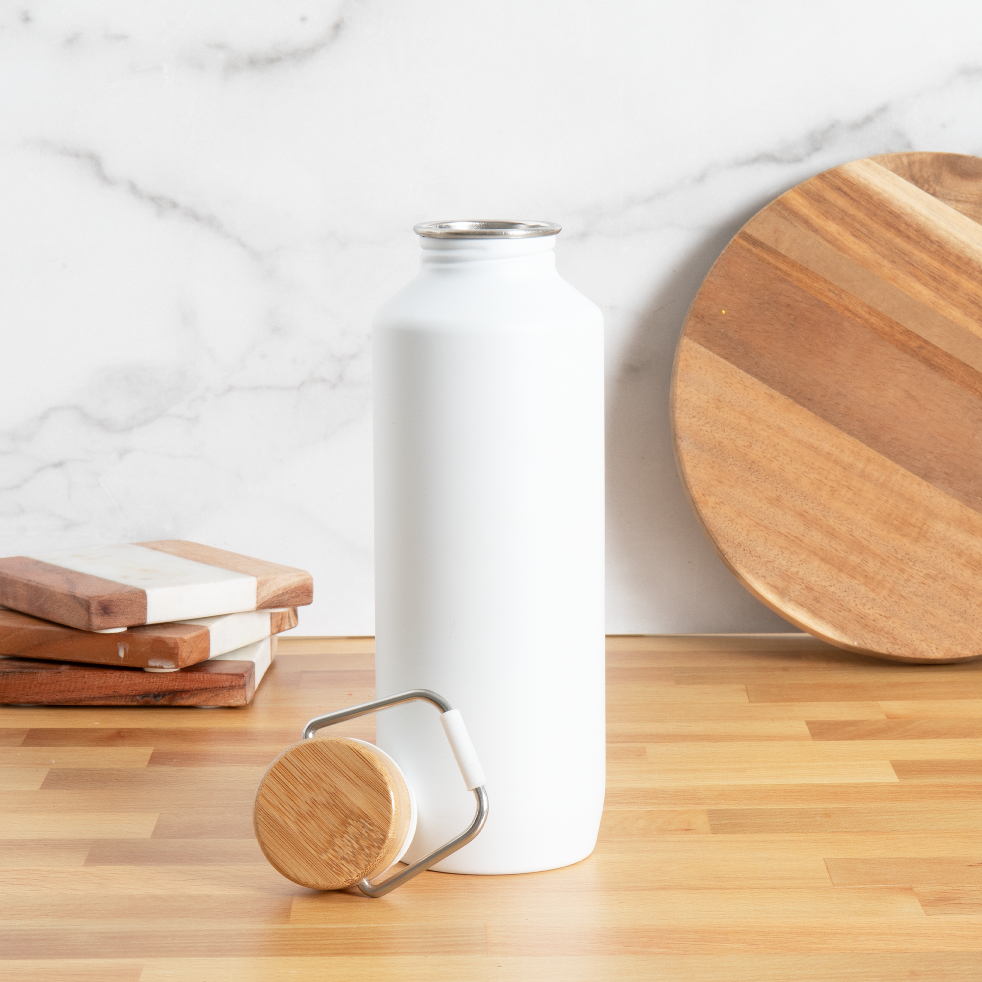 The h2go Grove 25 oz bottle blends sustainability with sleek design. Made from 90% post-consumer recycled stainless steel, it features a lightweight single-wall build, a threaded bamboo lid, and a swing handle with a color accent. Finished with a modern matte look, it's a smart choice for eco-conscious, on-the-go hydration with cold beverages.